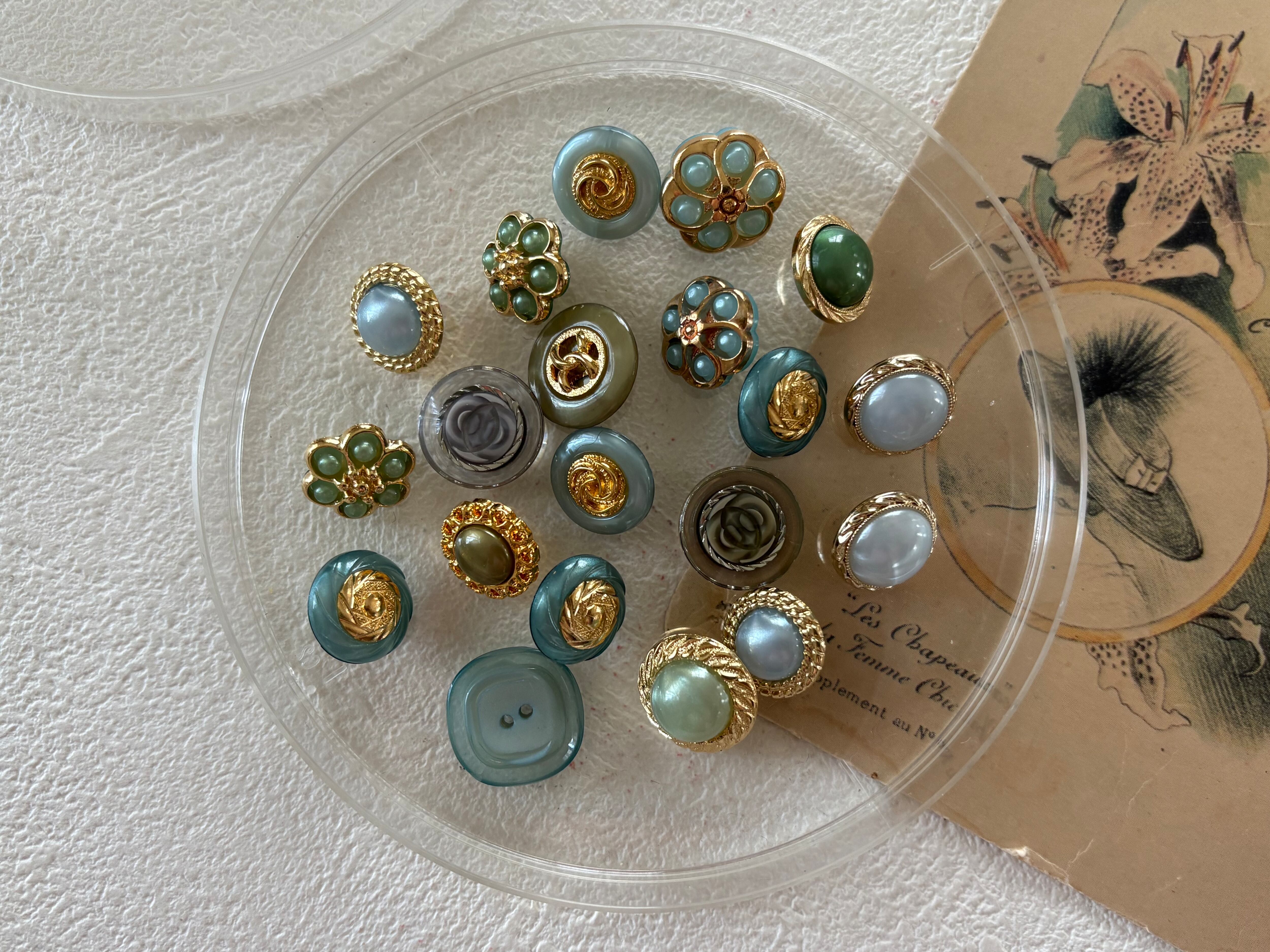 SALE 小さなVintageボタンセット ② 20個入り アクセサリーパーツ 染めボタン レトロボタン デコレーション材