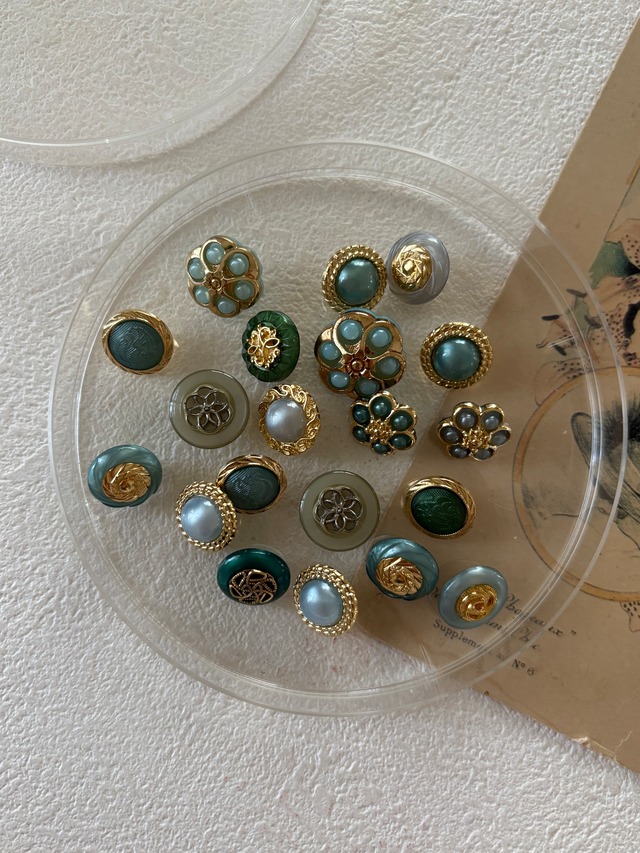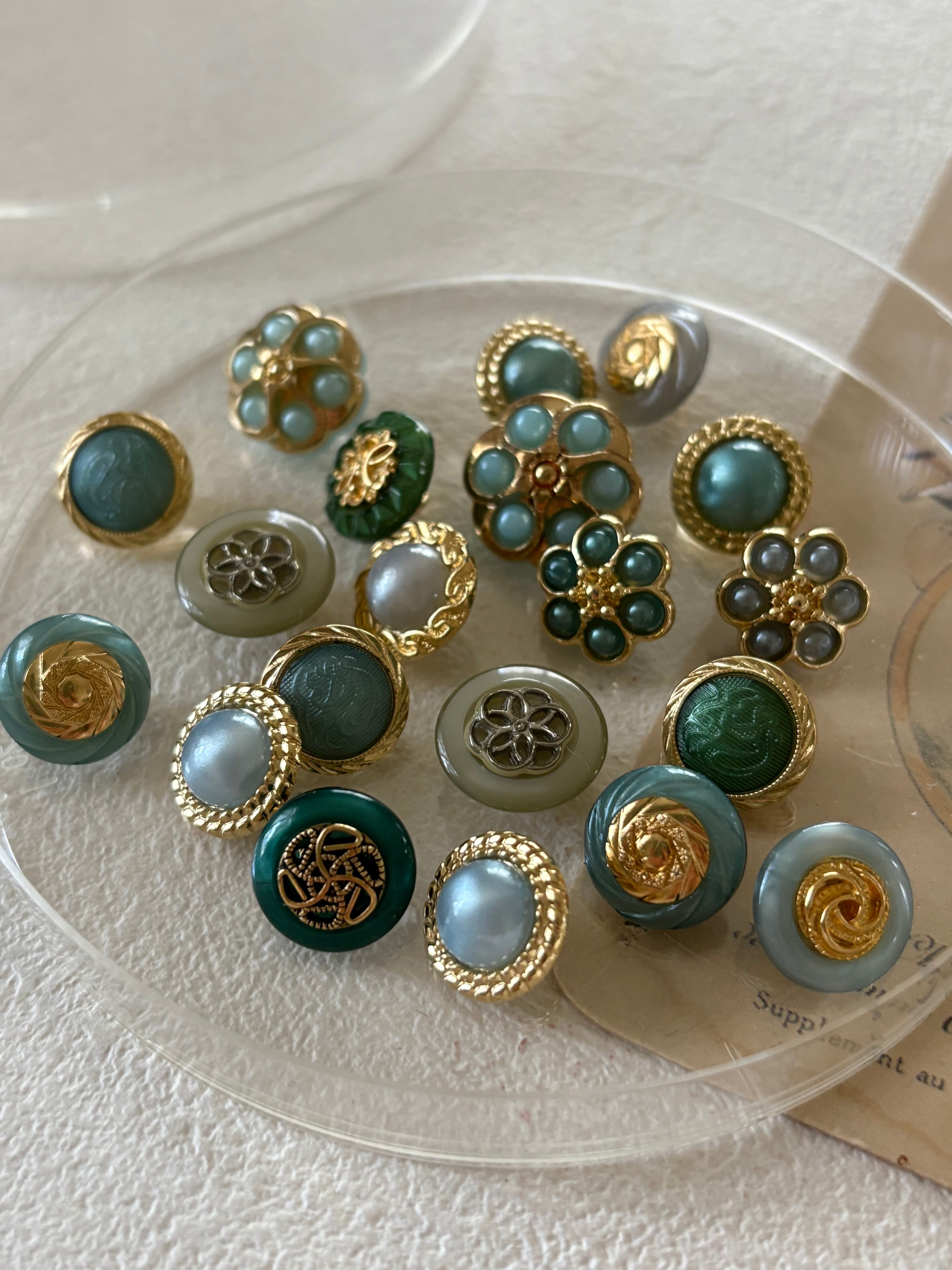 SALE 小さなVintageボタンセット ⑤ 20個入り アクセサリーパーツ 染めボタン レトロボタン デコレーション材