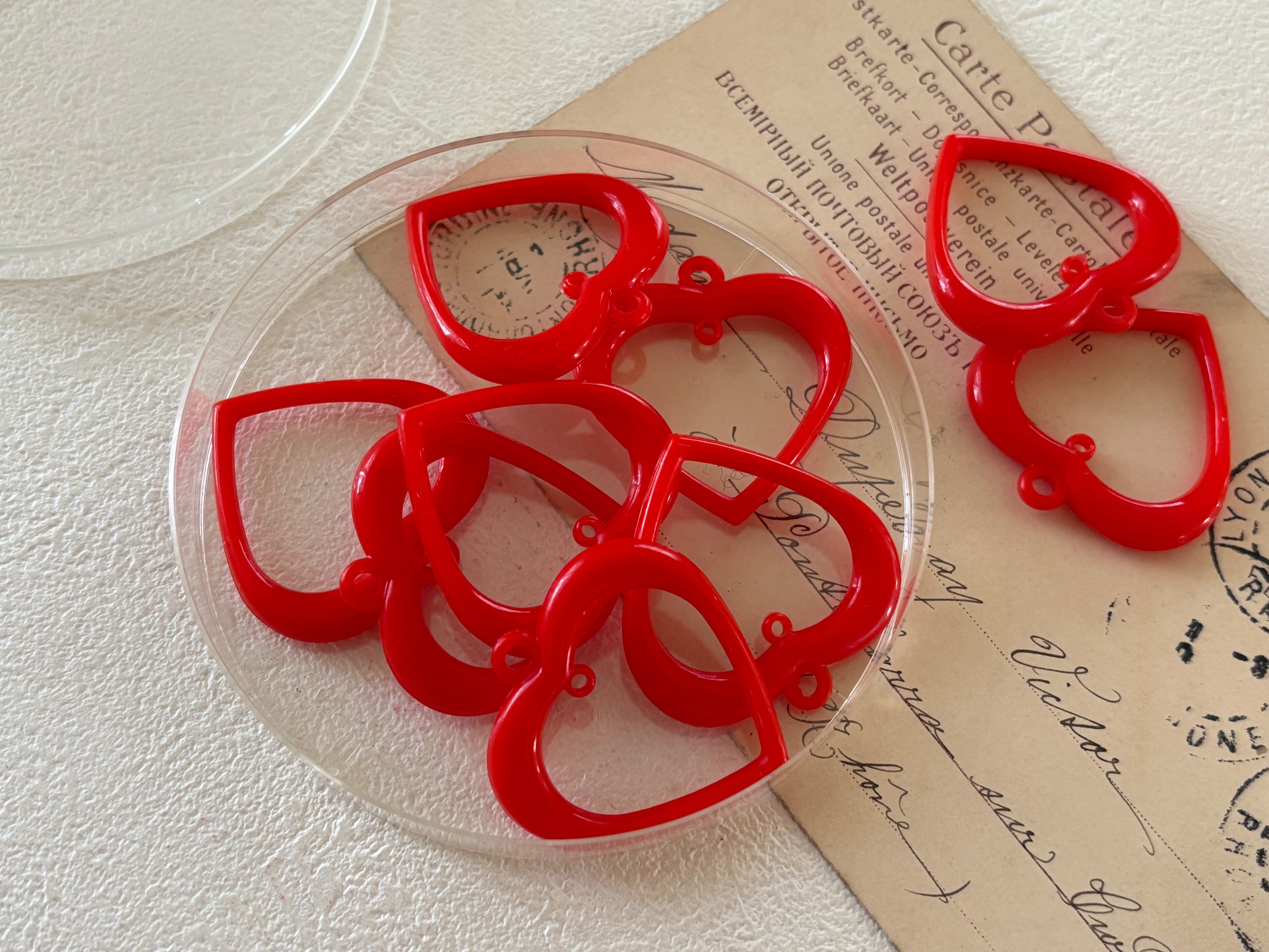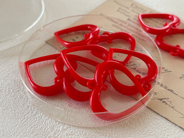 Japanese Vintage ヴィンテージパーツ ハートのチャーム フープ レッド 35mm×34mm アクセサリーパーツ デコレーション材