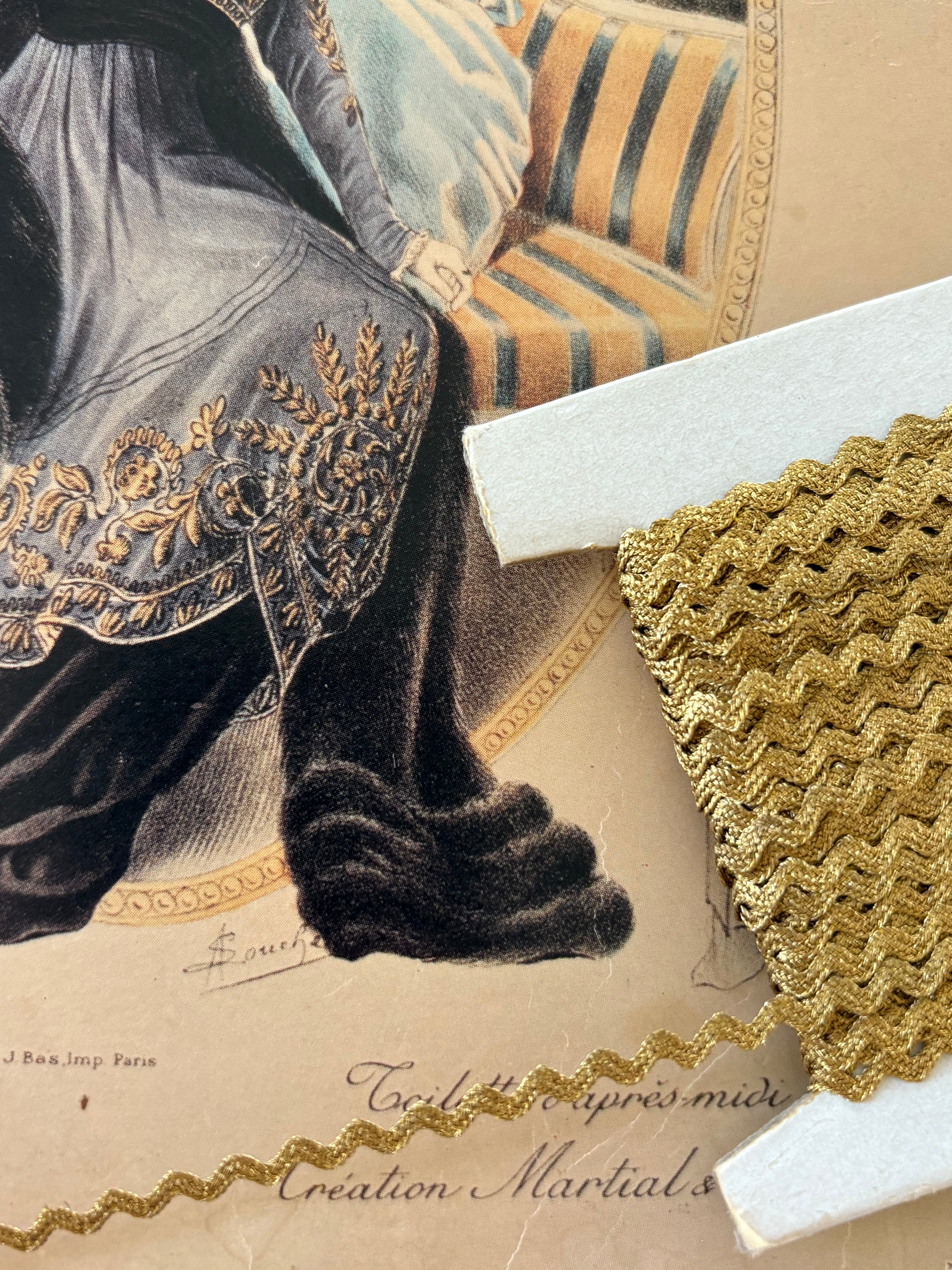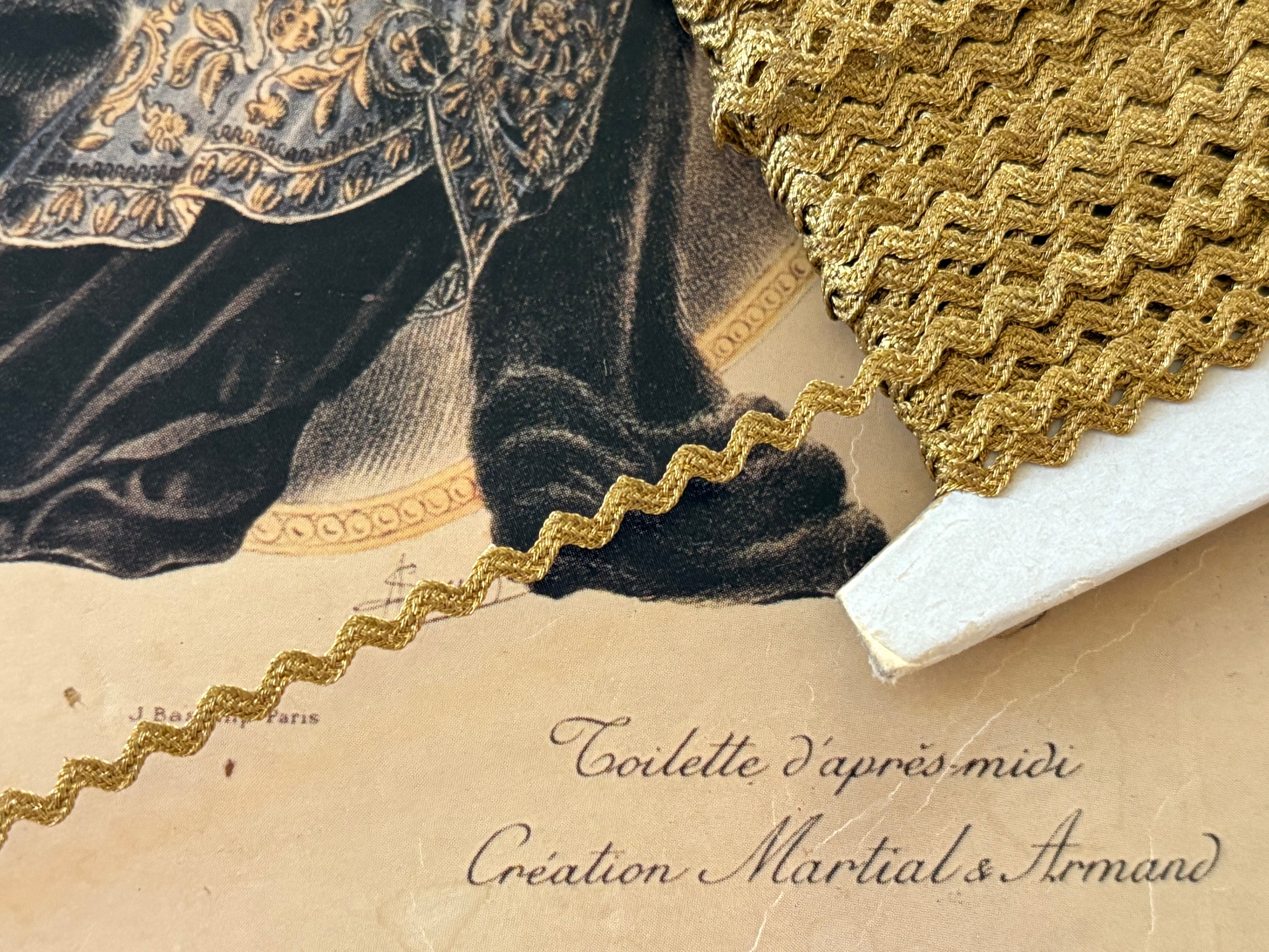 フランス アンティーク ブレード 極細 メタリクブレード ゴールド 2mm 波ブレード 100cm/カット カルトナージュ デコレーション材