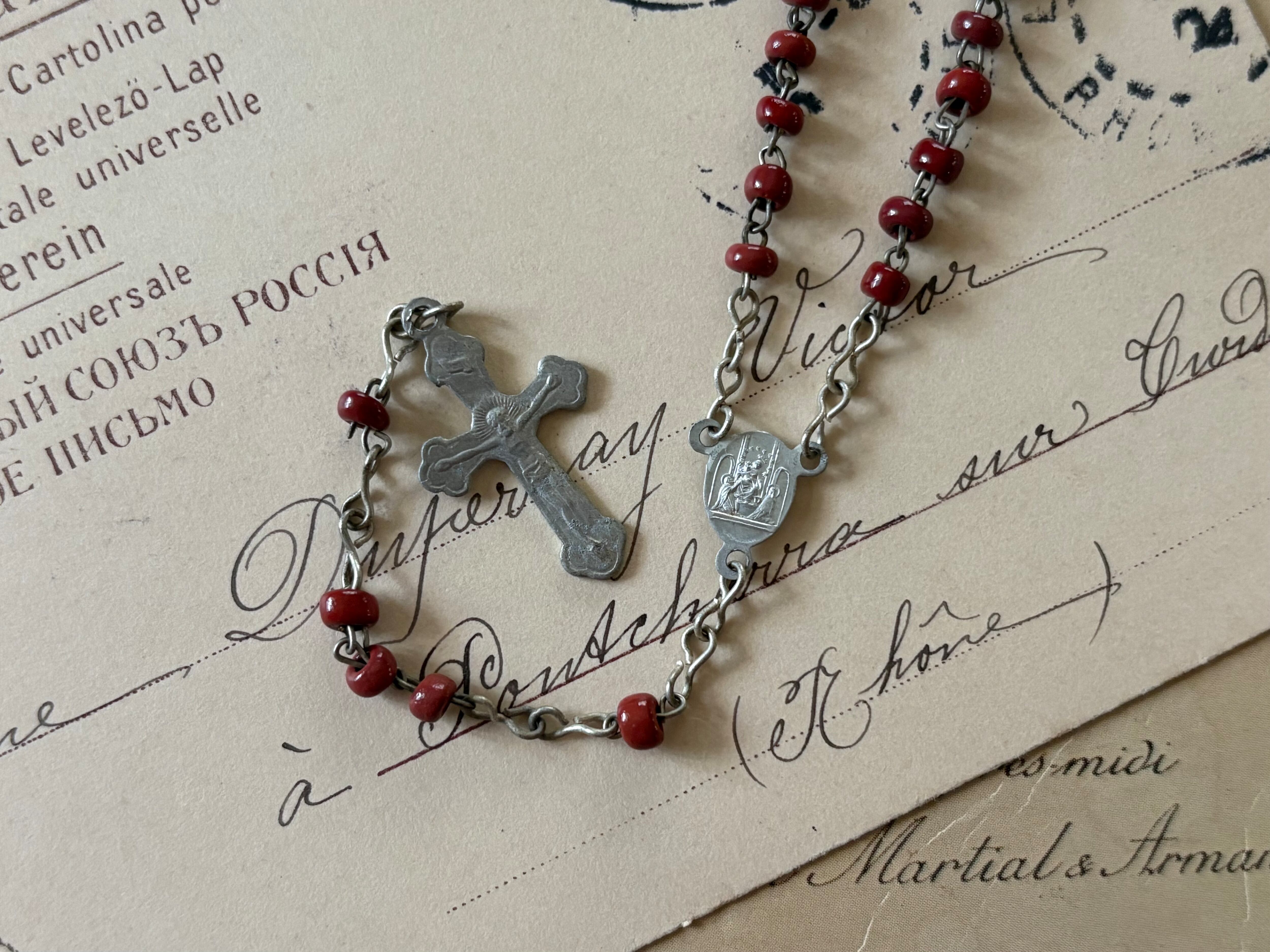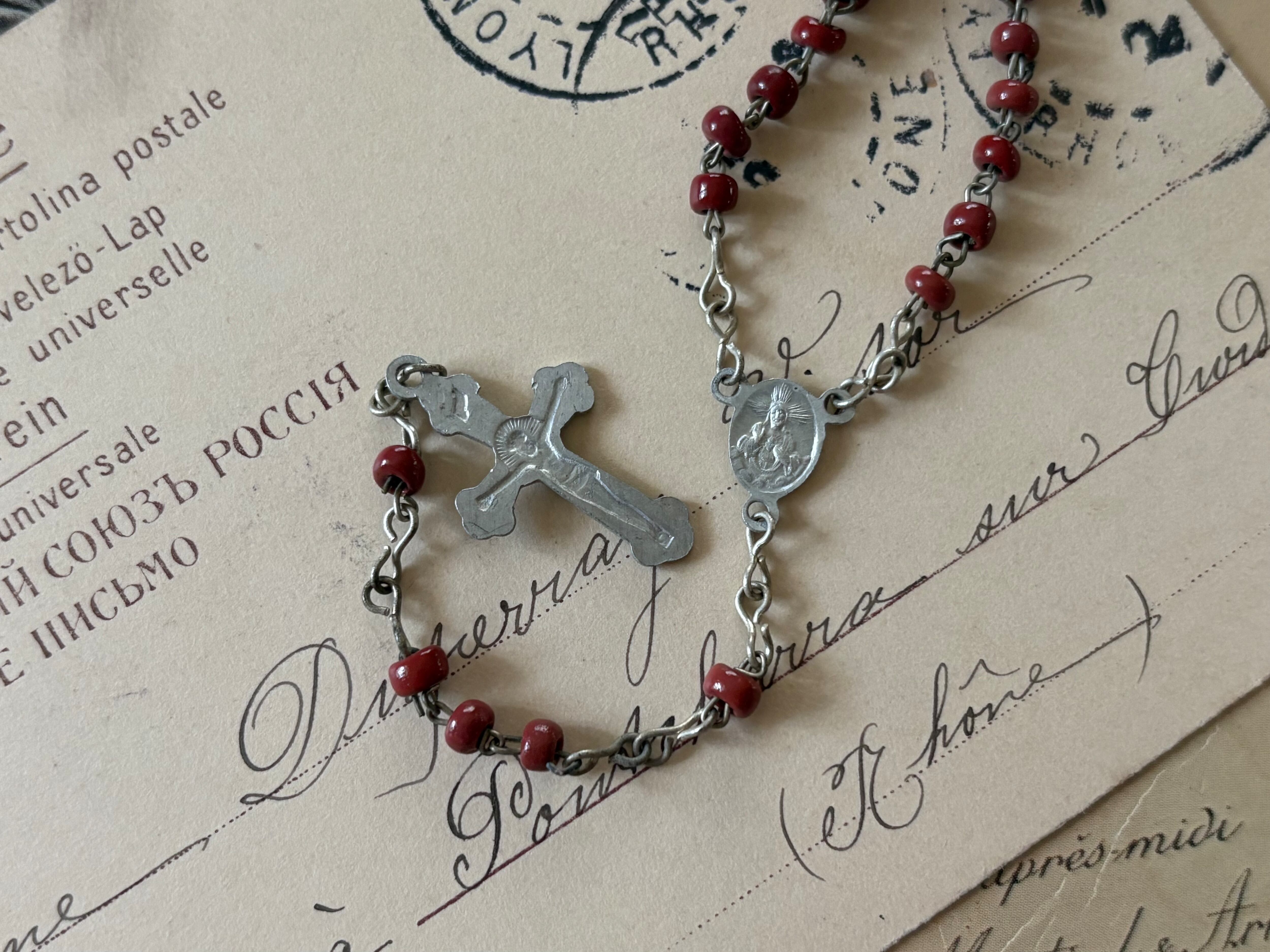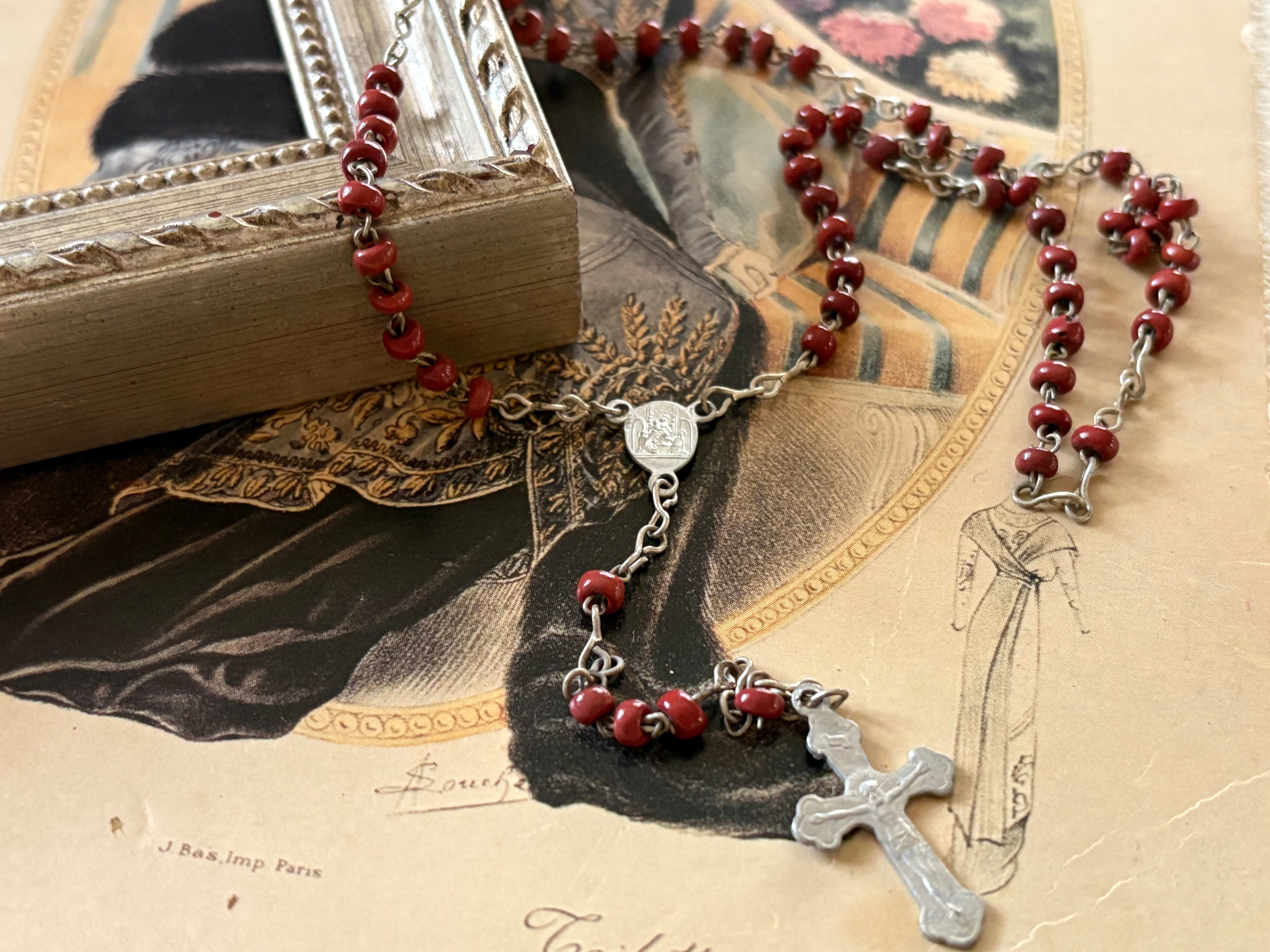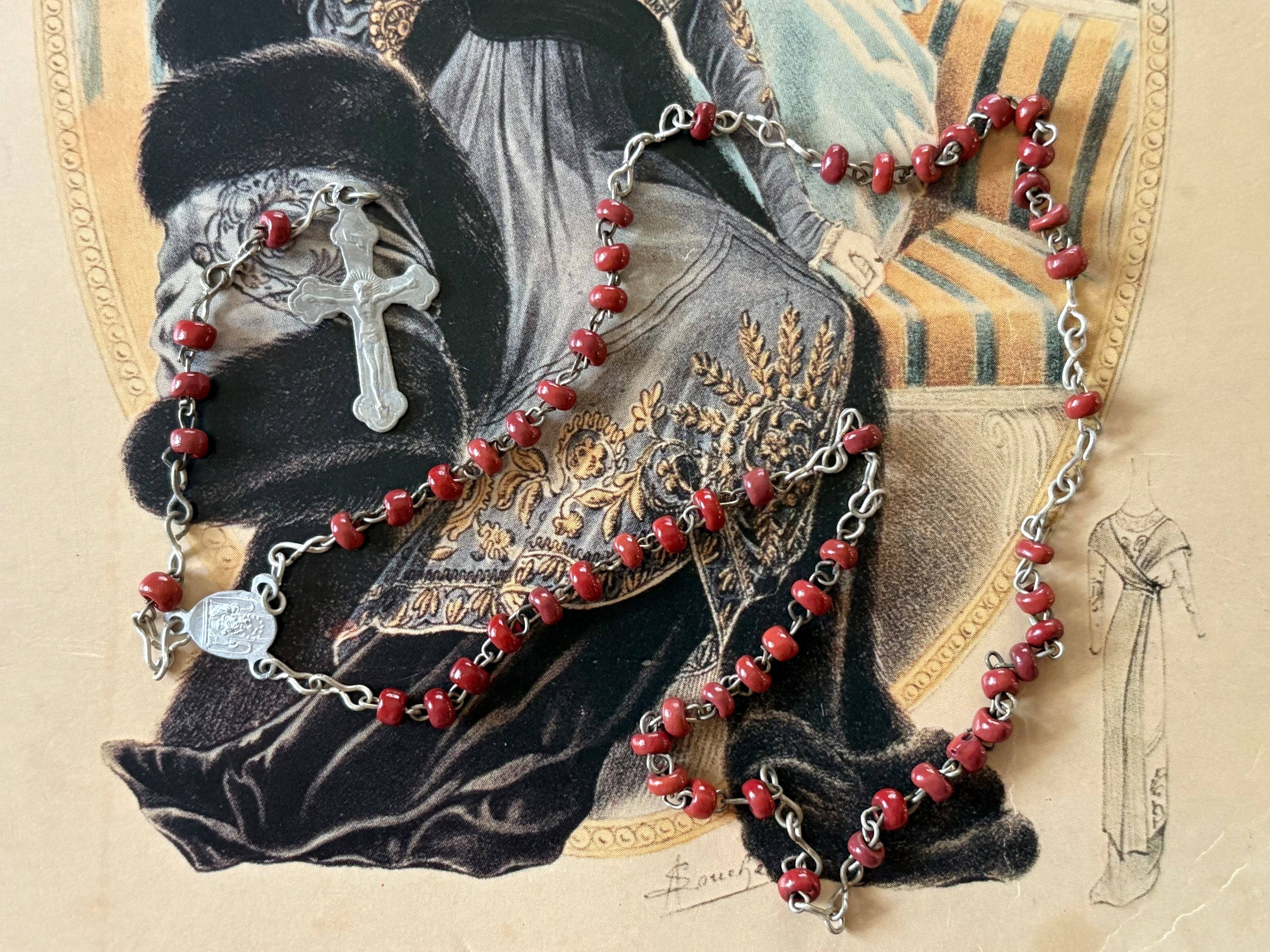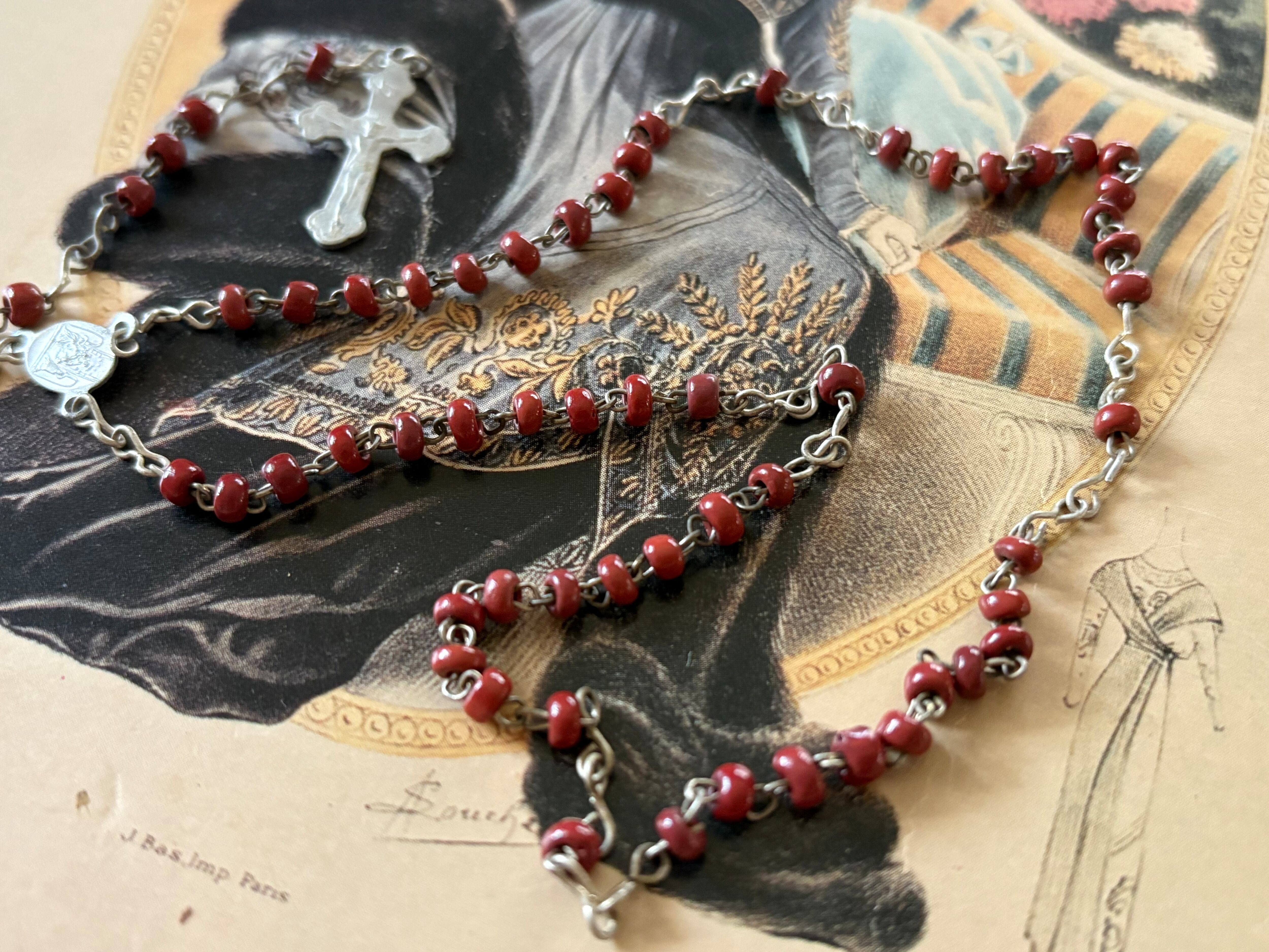 イタリア Vintage レッドシードビーズのロザリオ 聖品 アクセサリーパーツ インテリア小物