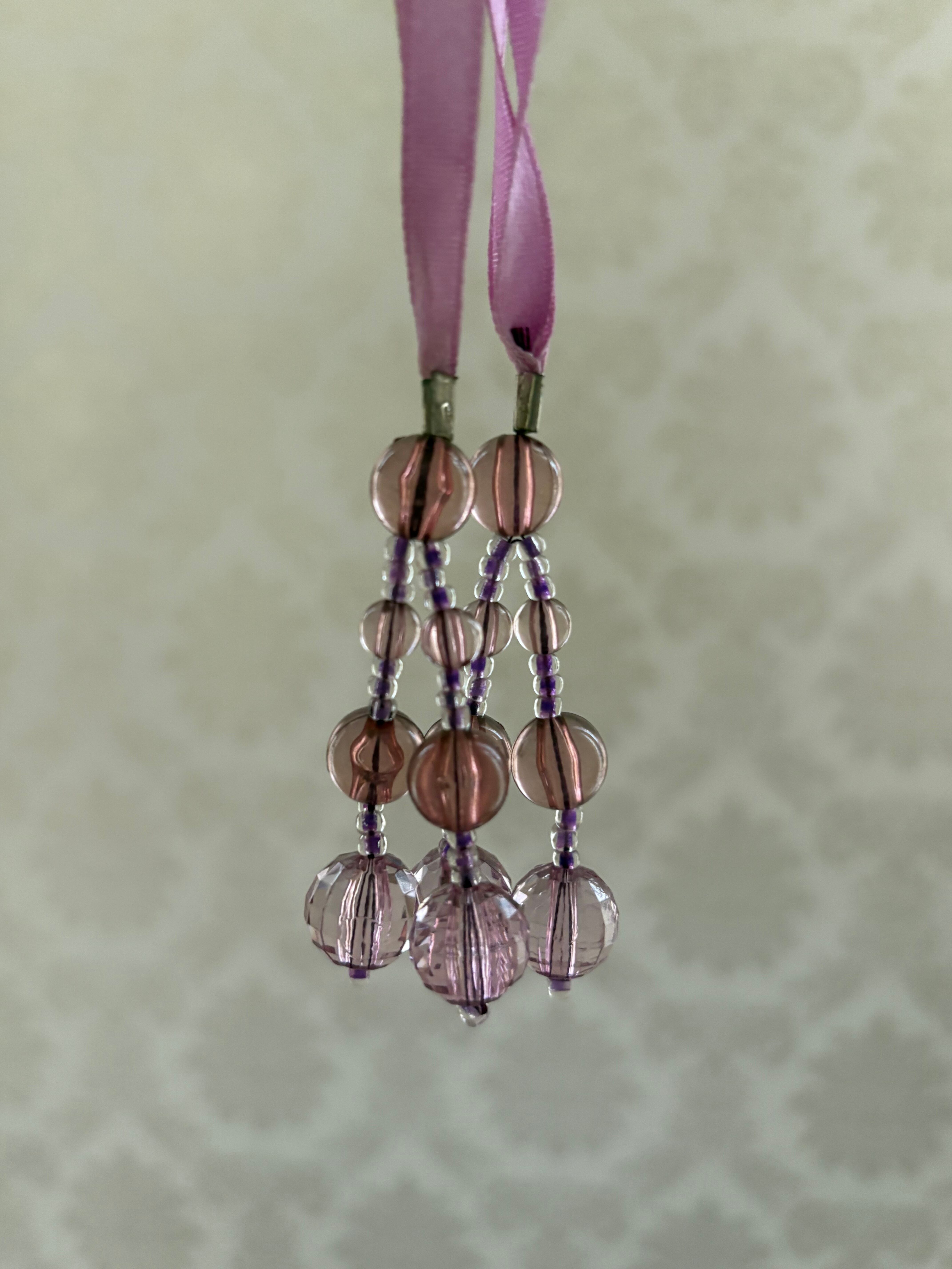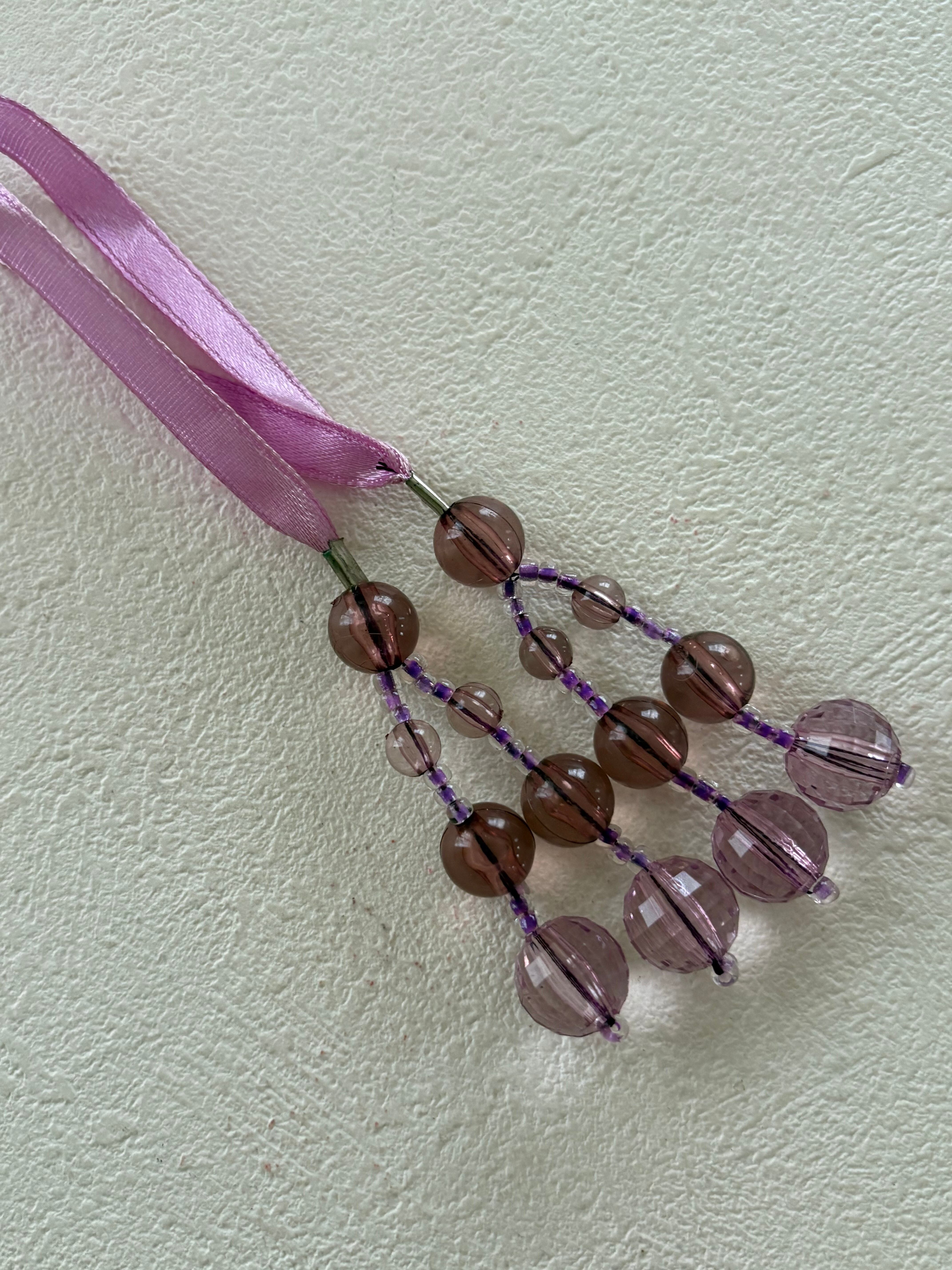 フランス 輸入デザインタッセル ビーズタッセル プラスチック×サテンリボン パープル カルトナージュ デコレーション材 インテリアタッセル