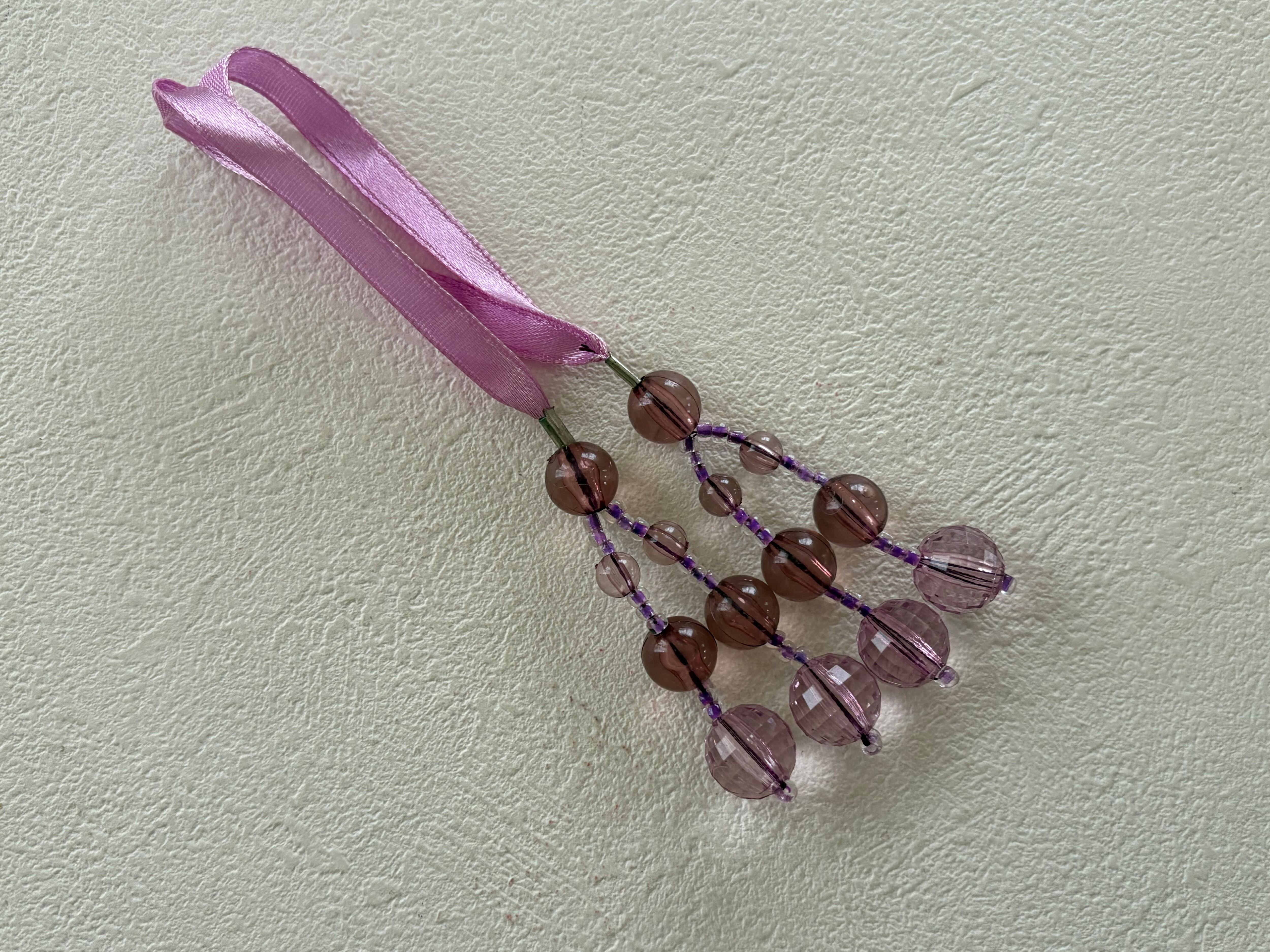 カットの美しい、大小様々なプラスチックビーズと艶やかでエレガントなサテンのRuban