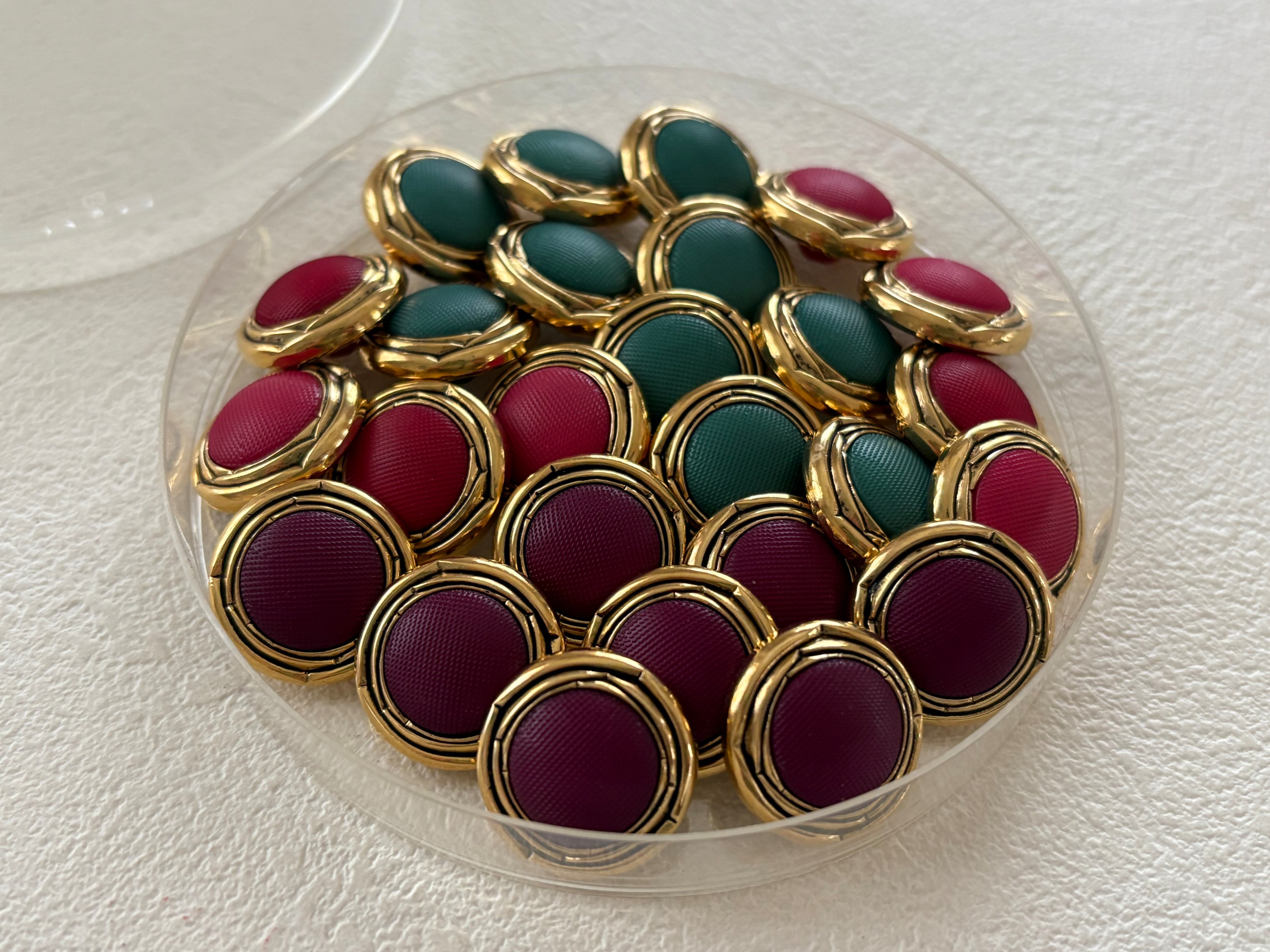 Japanese Vintageボタン プラスチック 染めボタン 17mm レッド/ボルドー/グリーン アクセサリーパーツ デコレーション材