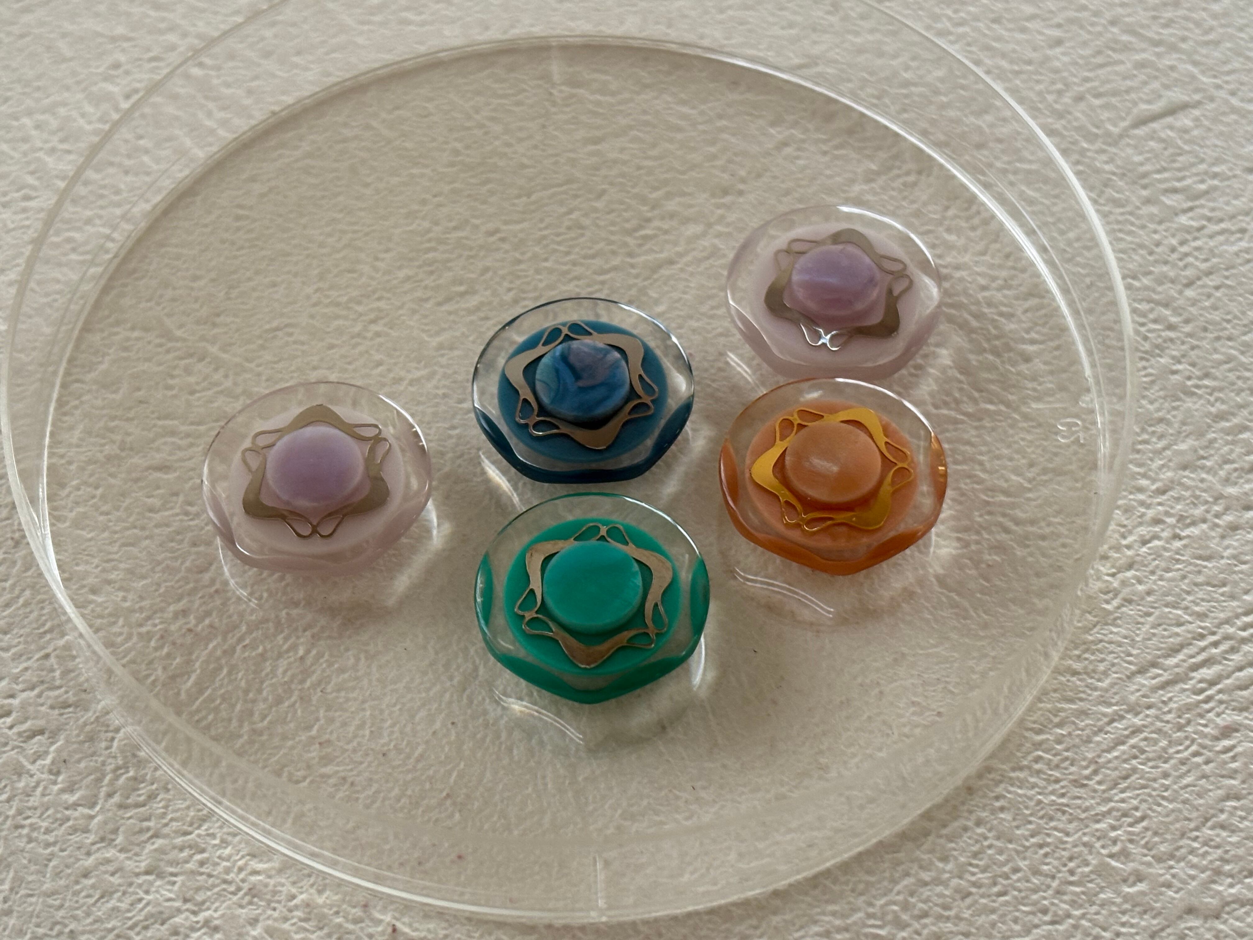 Japanese Vintage ボタン 17mm プラスチックボタン カボション オーロラ クリア 昭和レトロ アクセサリーパーツ 装飾材 カルトナージュ