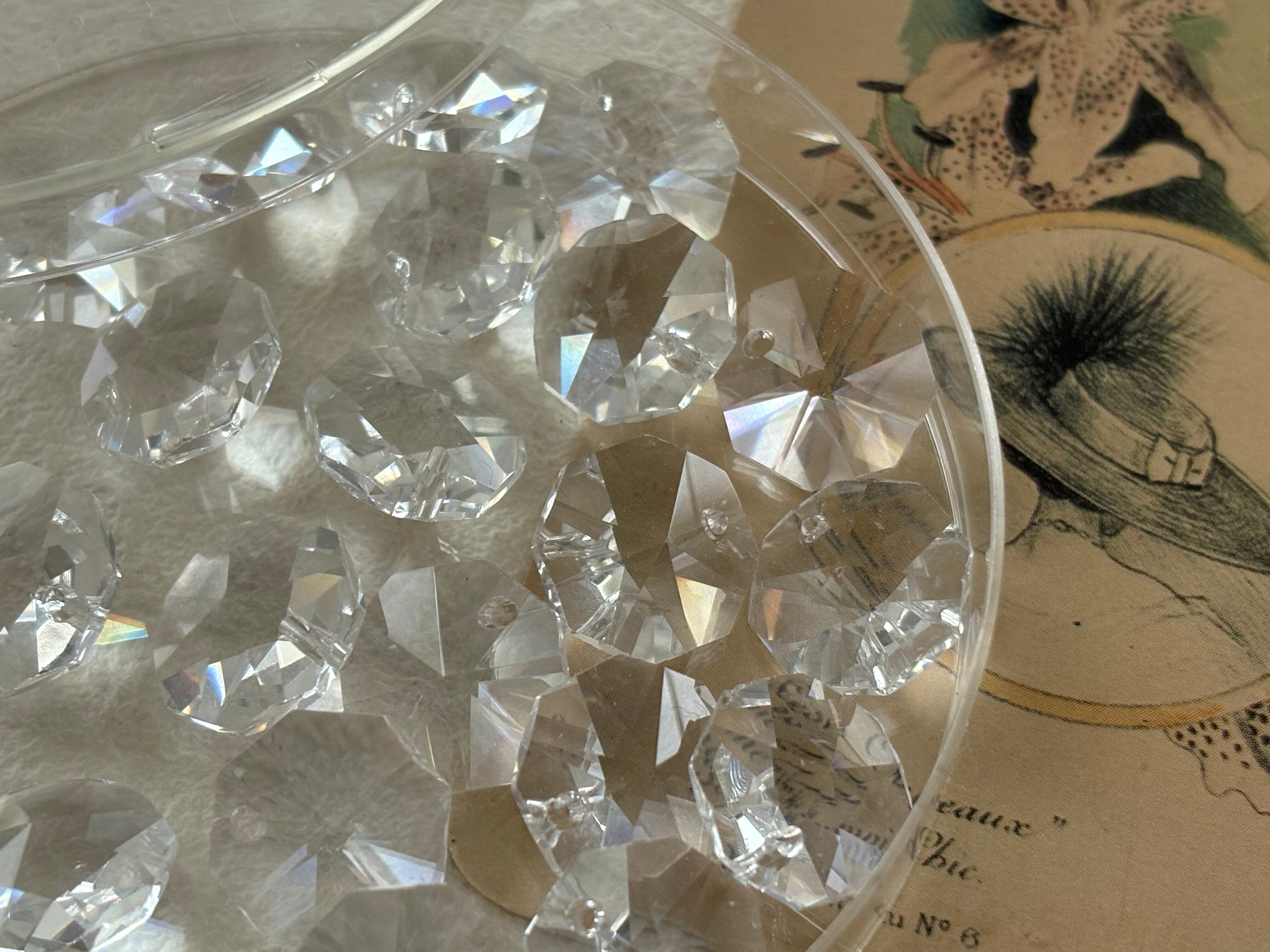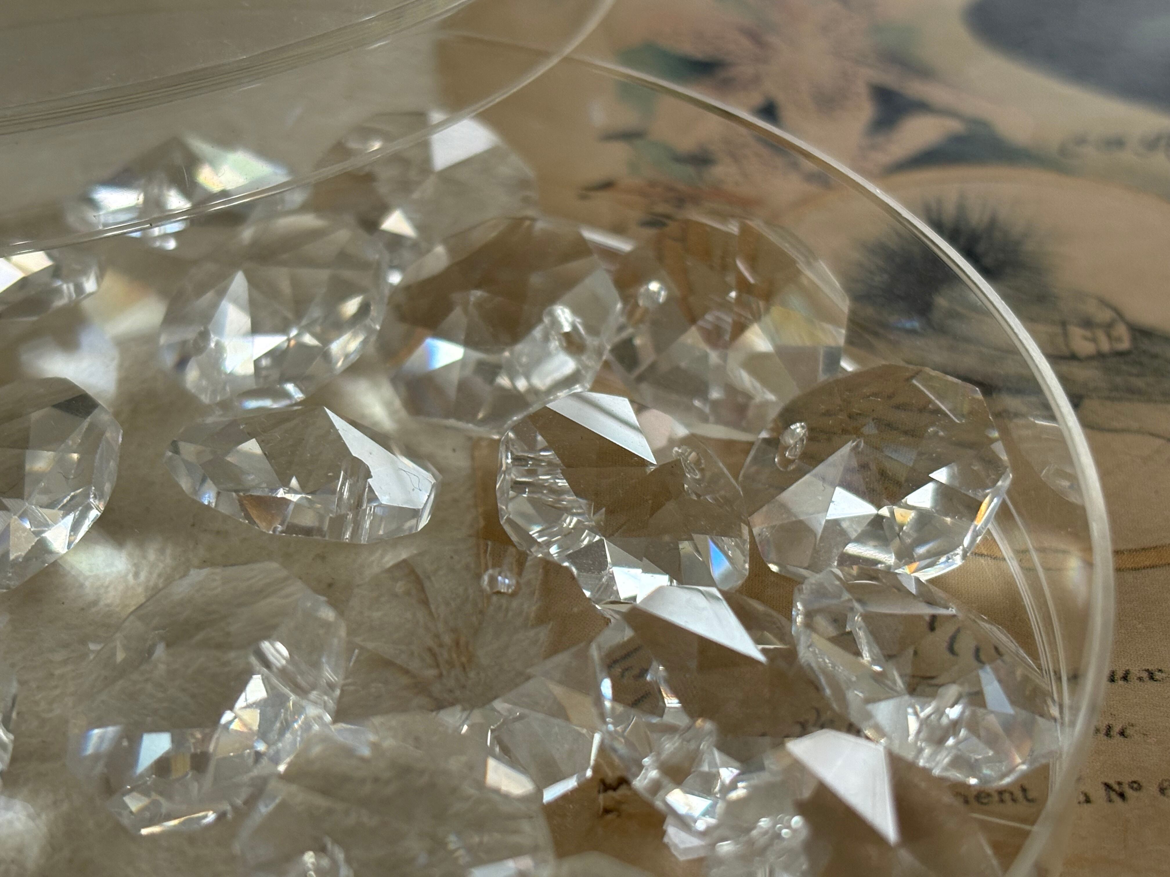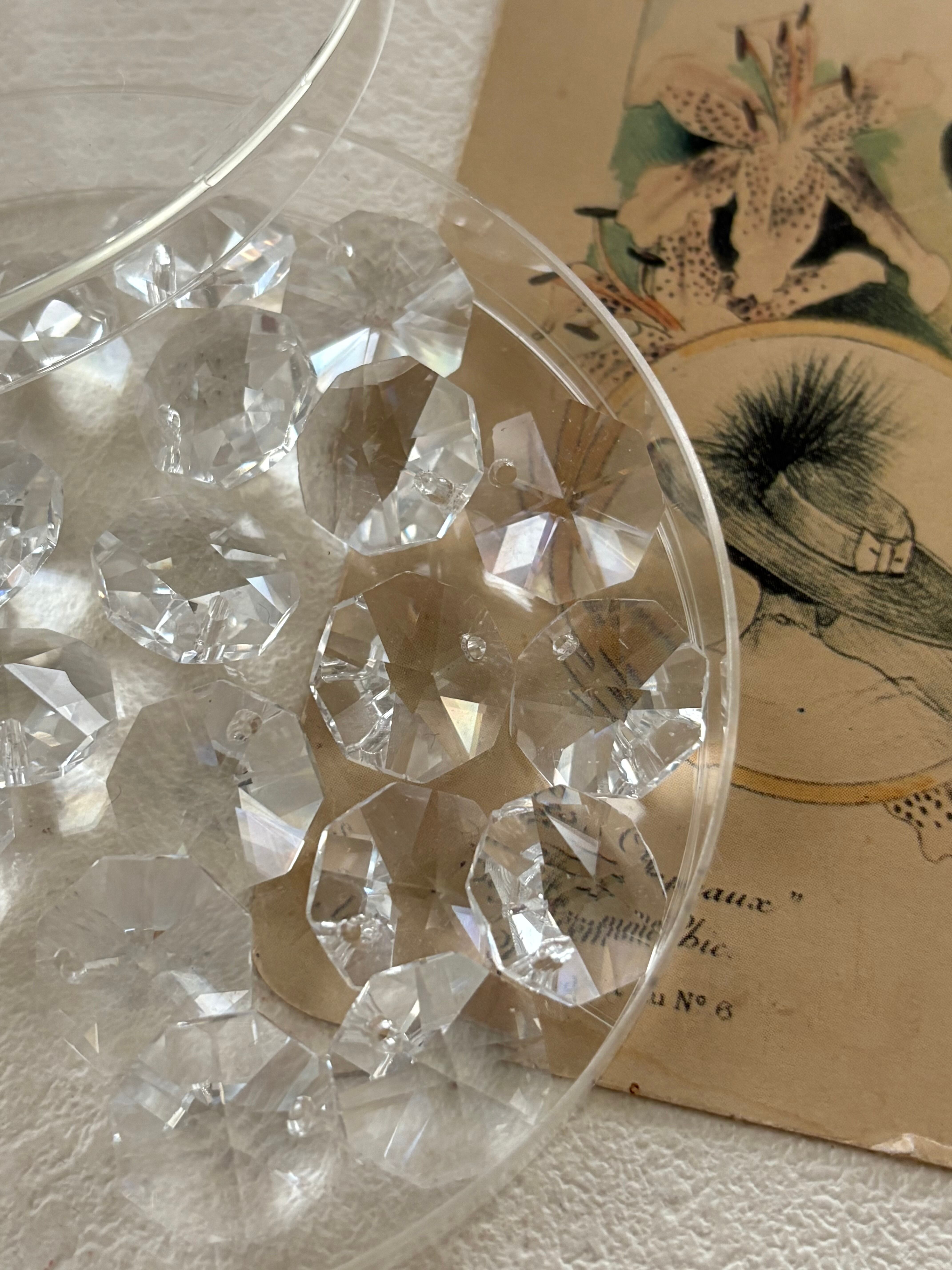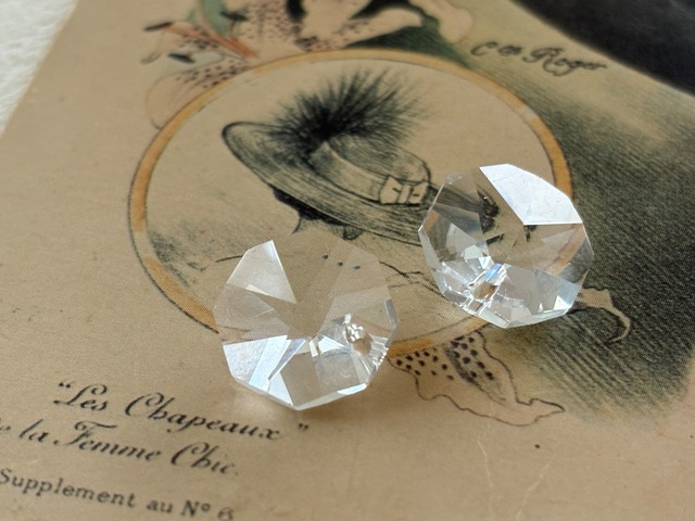 Vintage シャンデリアパーツ 2個セット デッドストック チェコ製 ワンホール クリア サンキャッチャー インテリア ハンドメイドパーツ