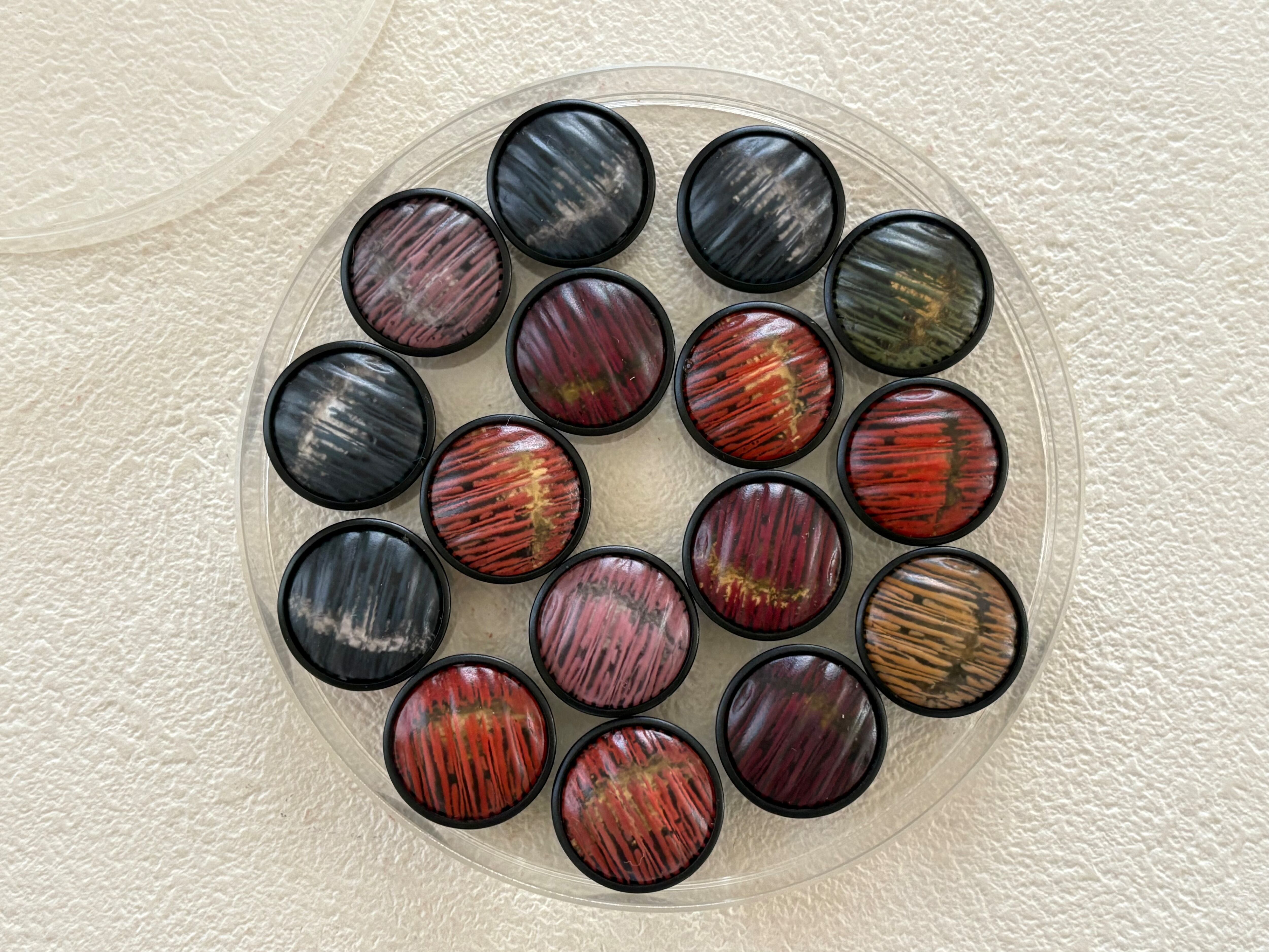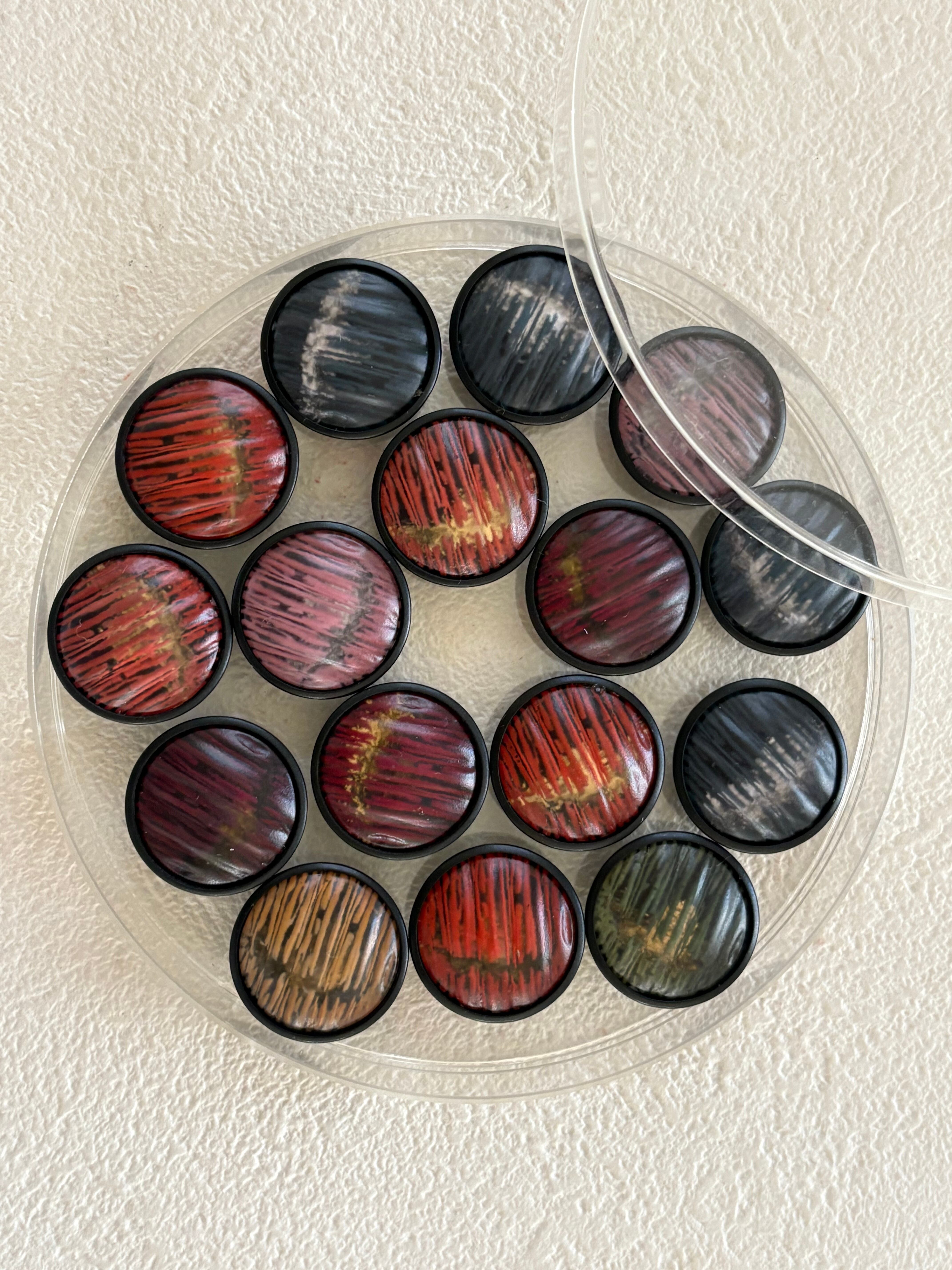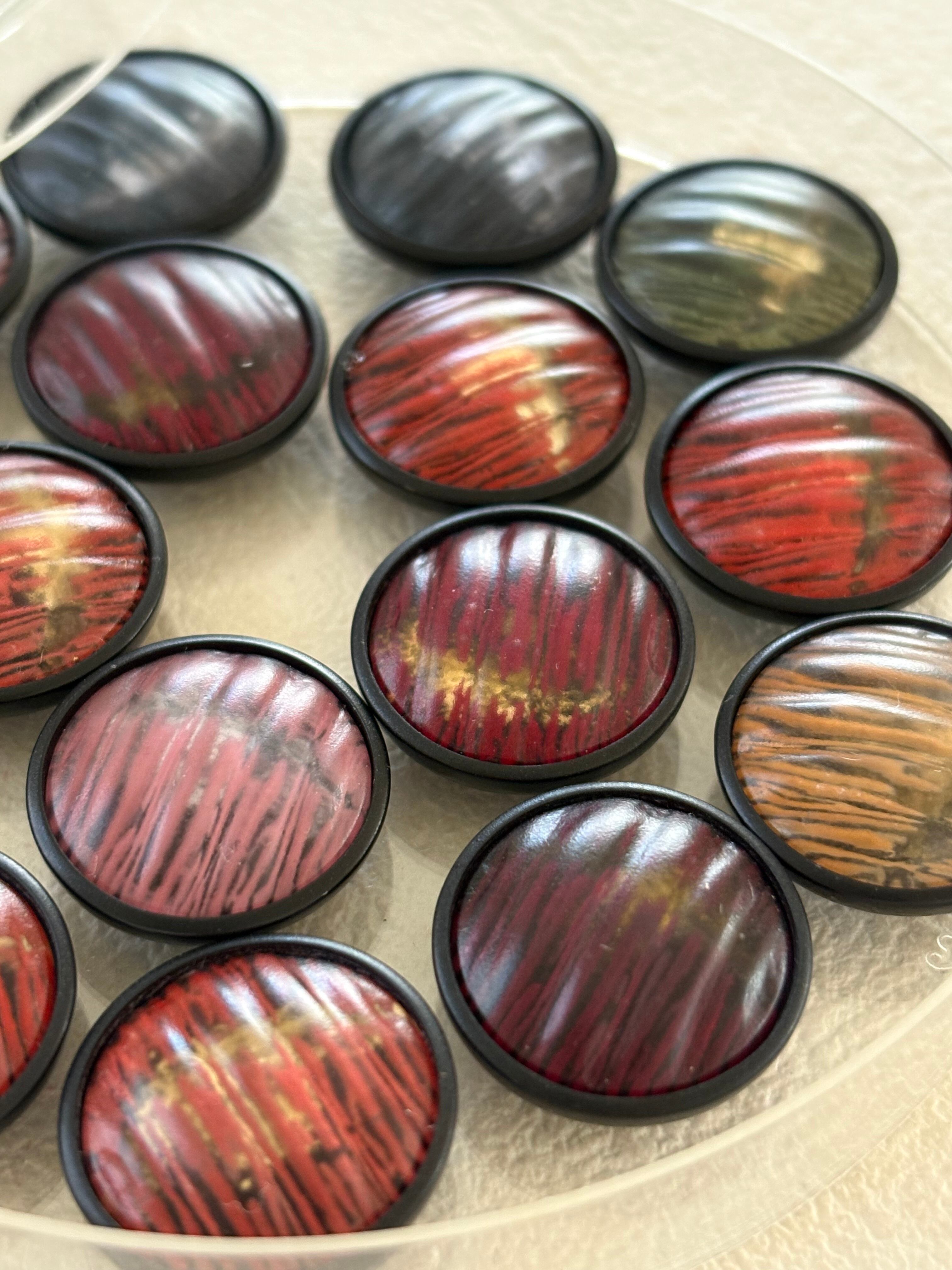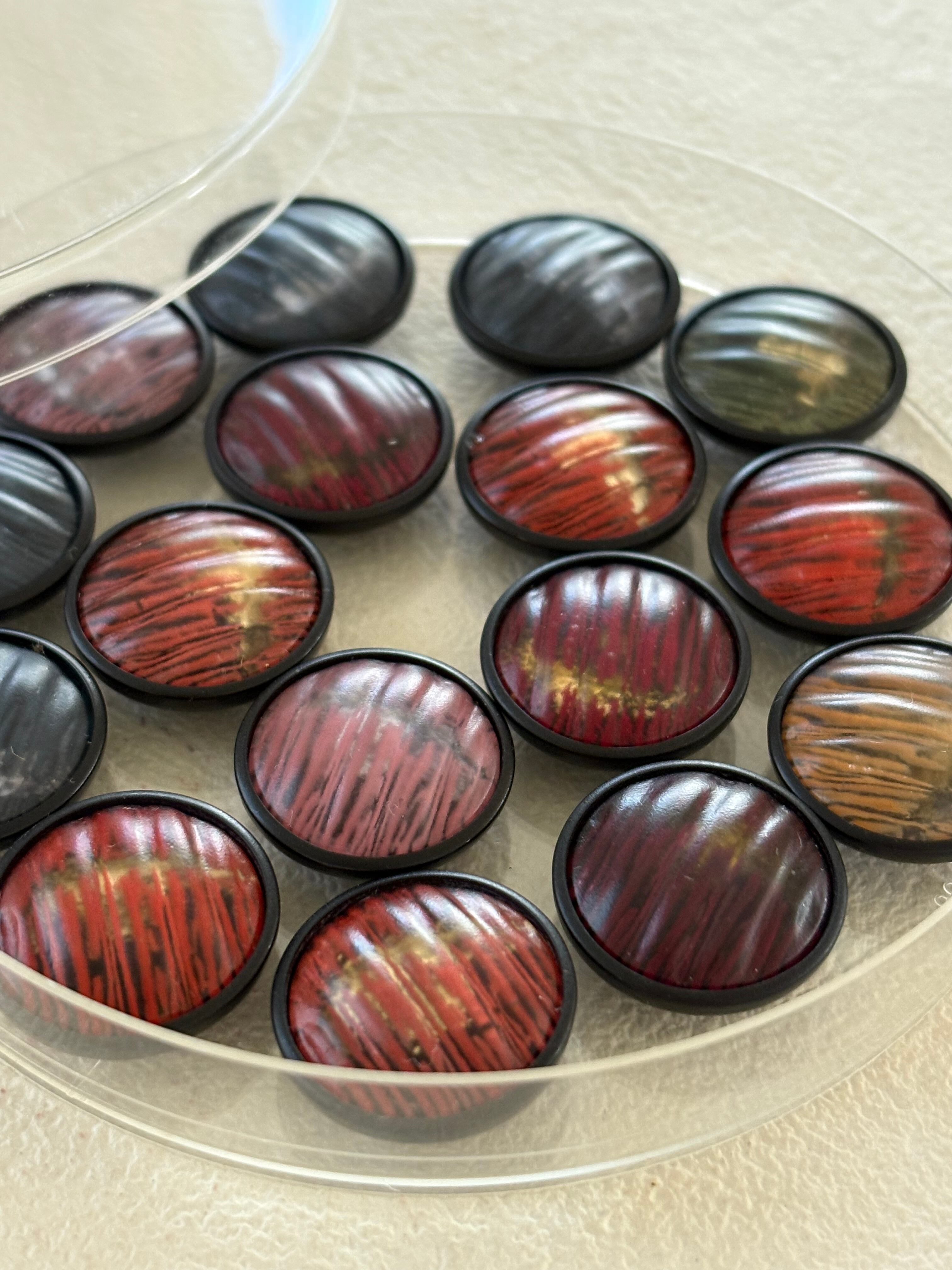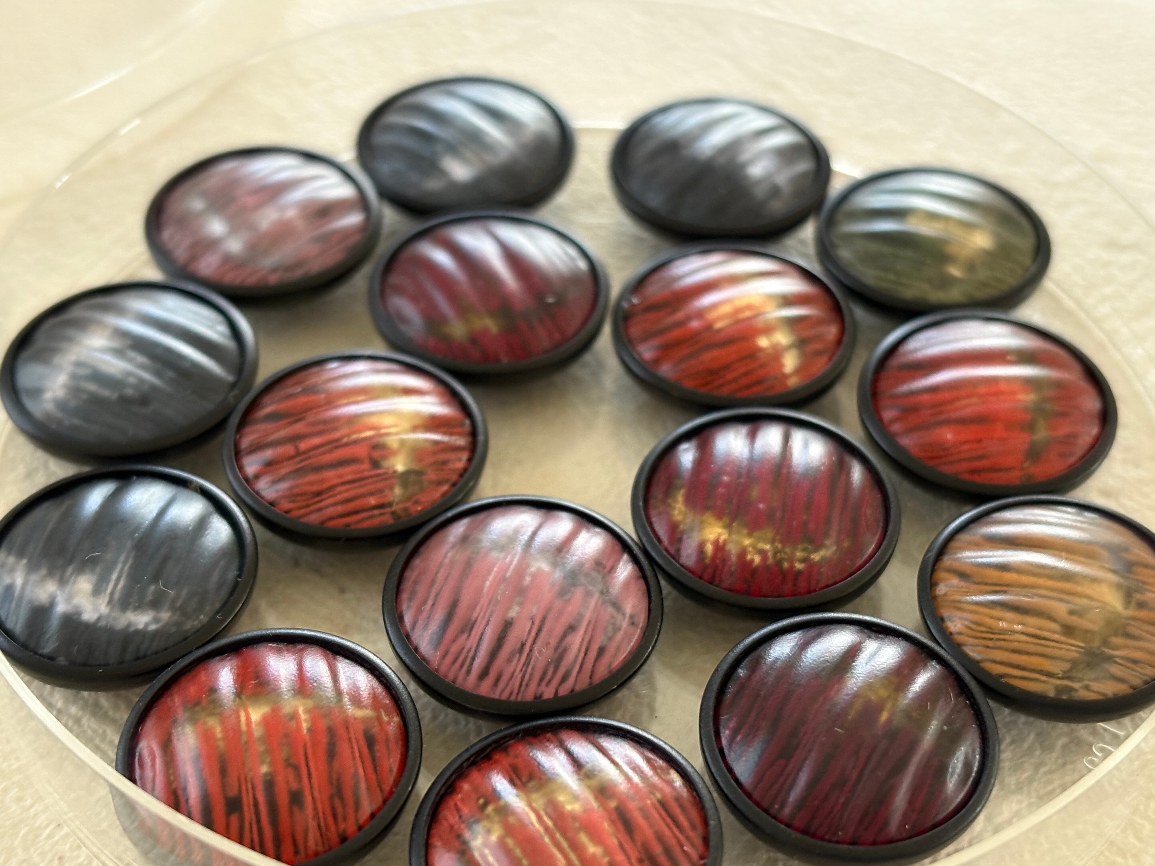どのお色も深みのある落ち着いたカラーでレトロシックなボタン。