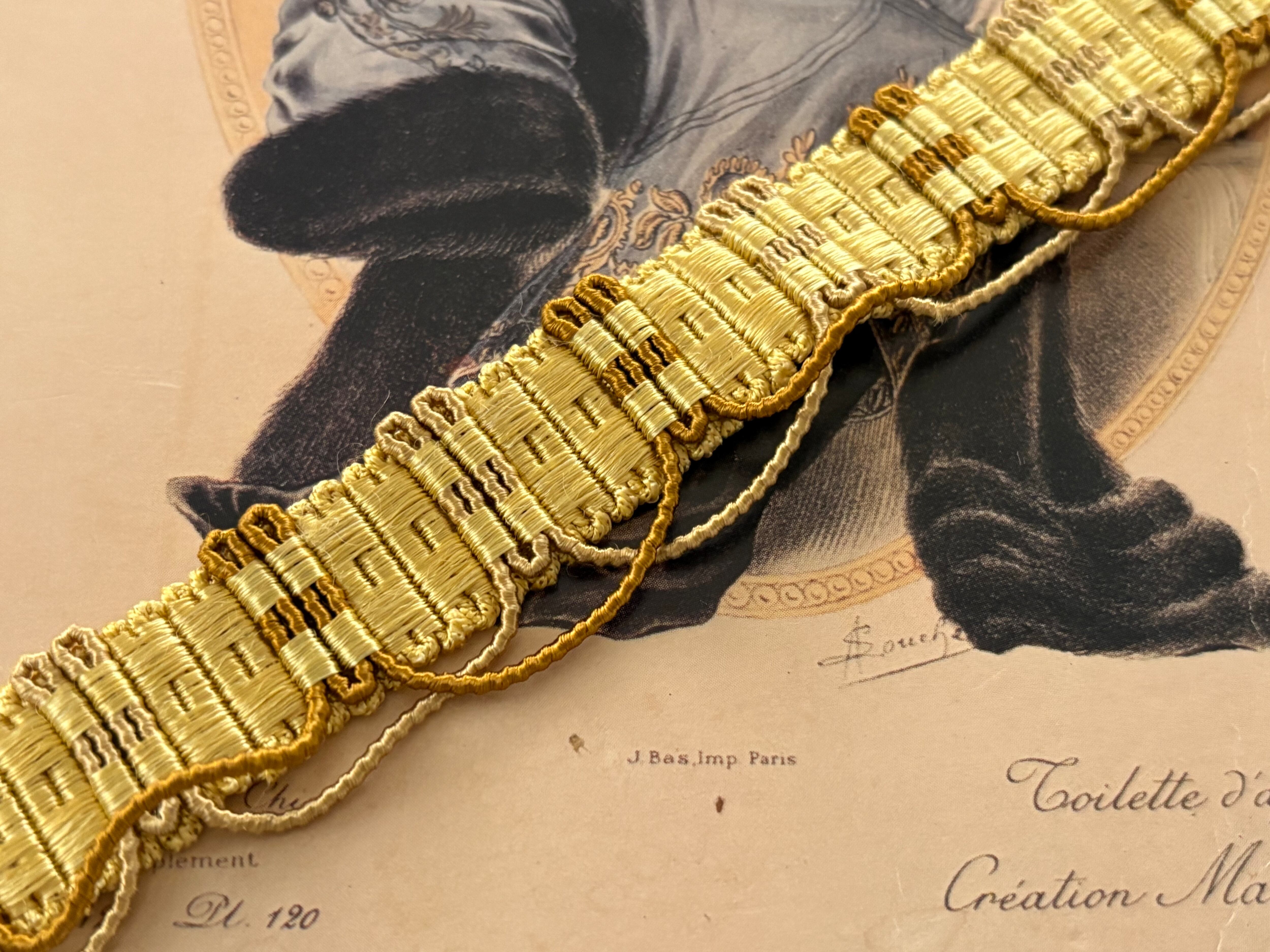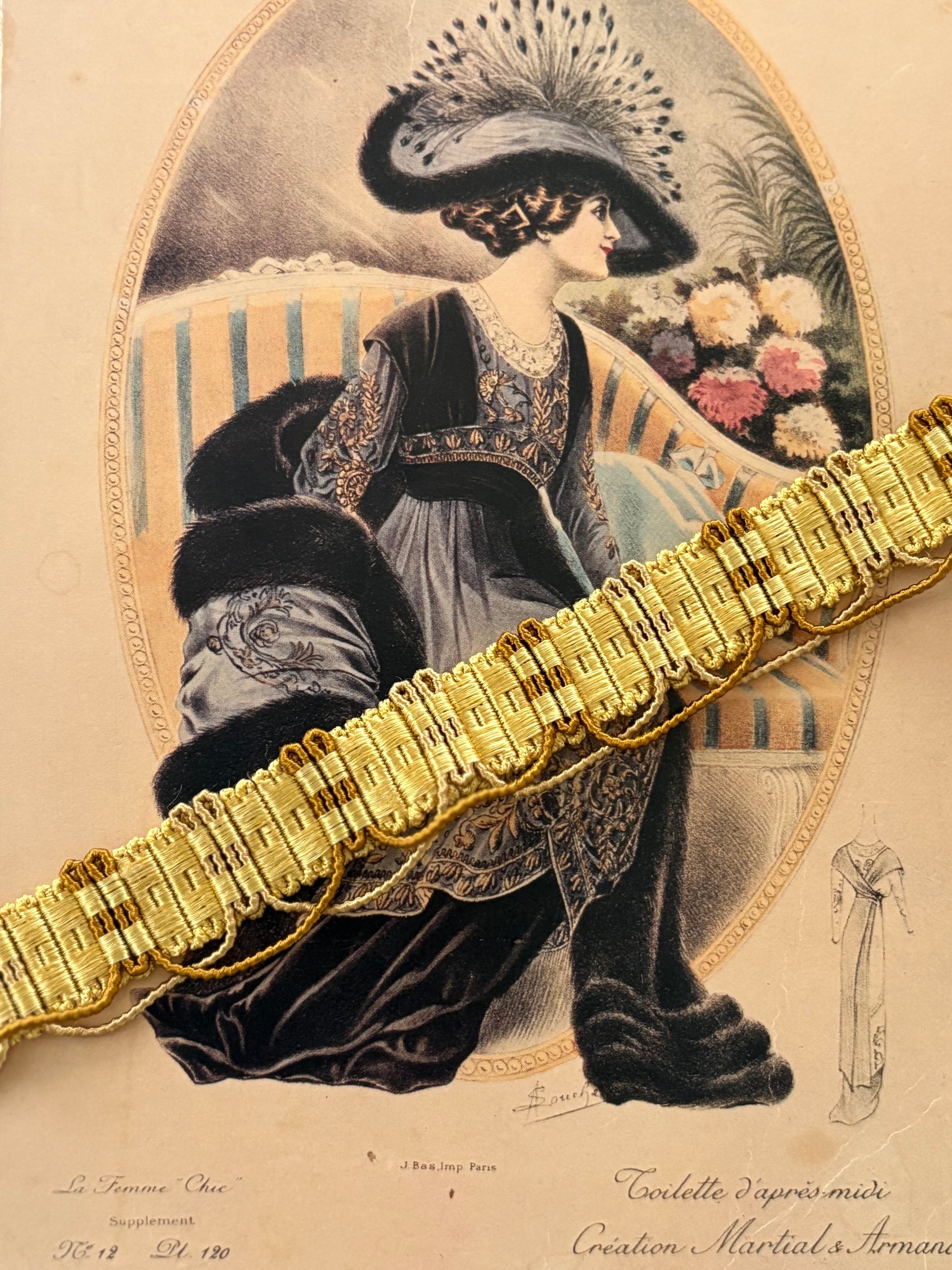 フランスアンティークブレード イエローゴールド 23mm幅 60cm/カット カルトナージュ デコレーション材 コレクション