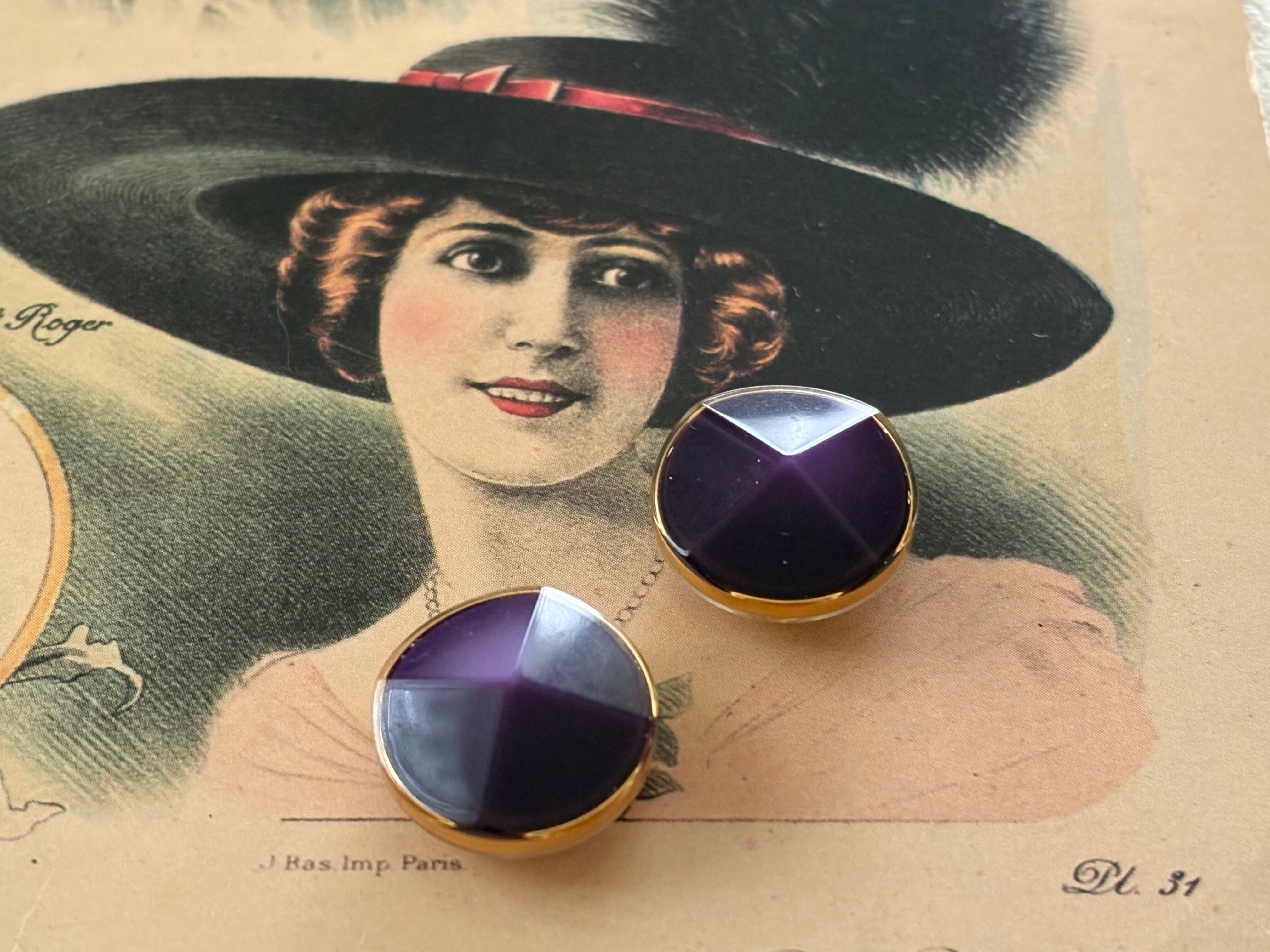 Japanese Vintage ヴィンテージボタン カボション 錐 プラミッド パープル 18mm アクセサリーパーツ 装飾材