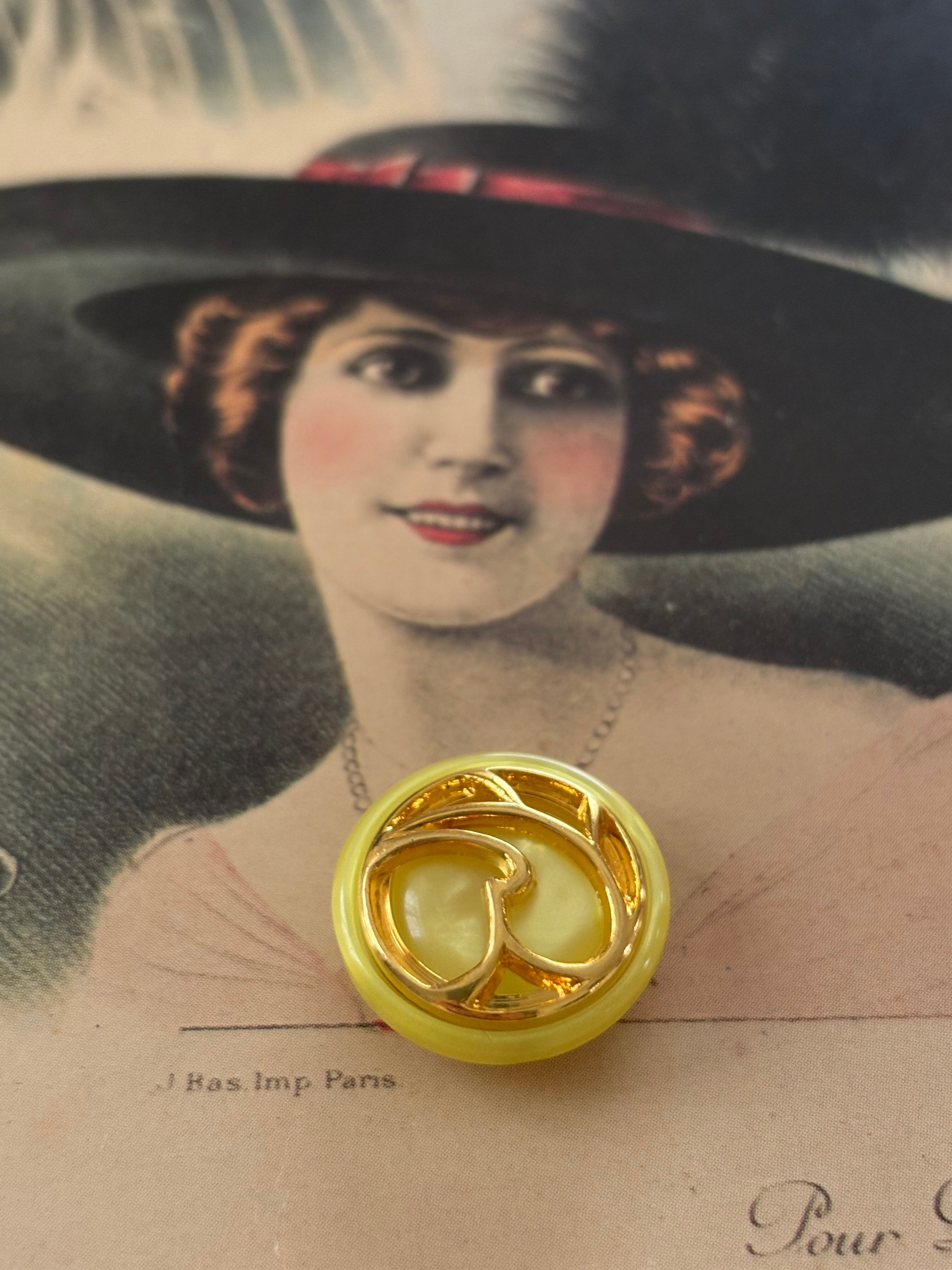 Japanese Vintageボタン レトロボタン イエロー×ゴールド 18mm アクセサリーパーツ デコレーシ