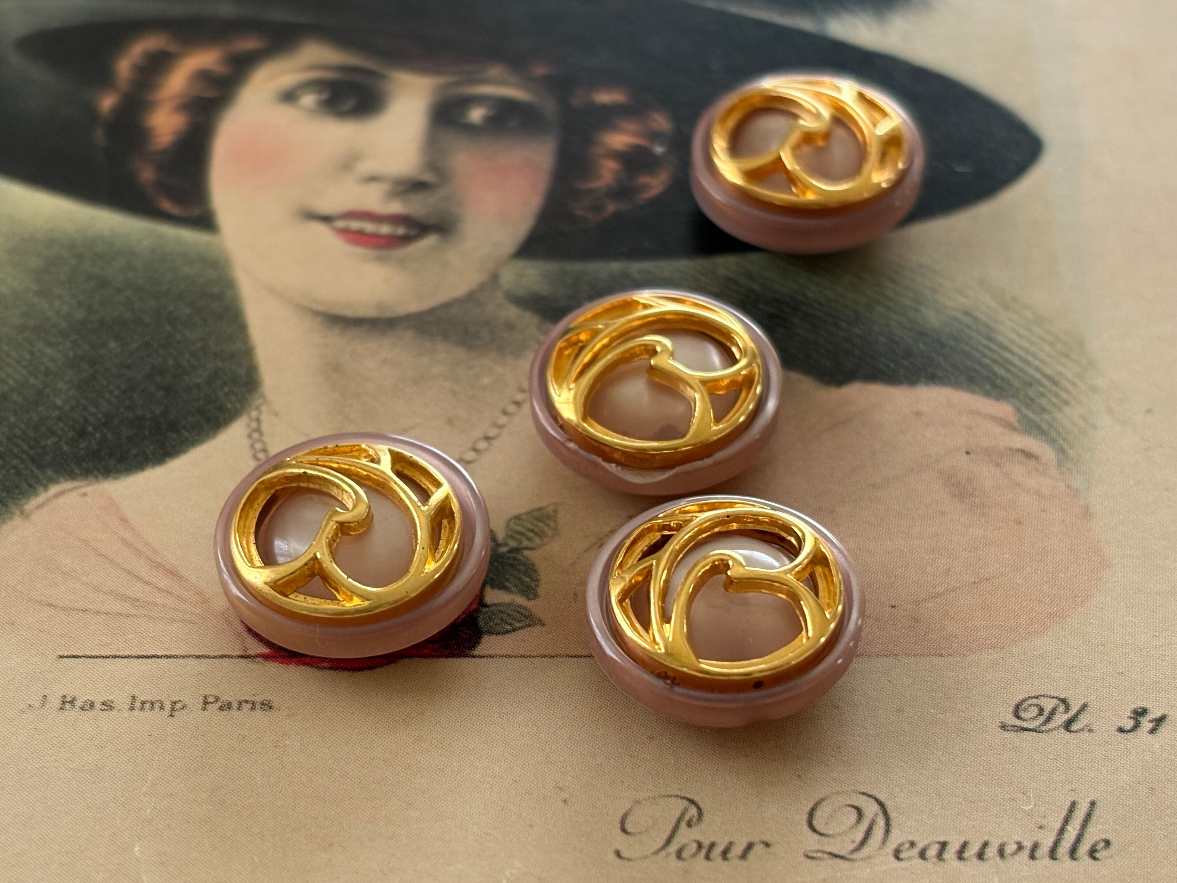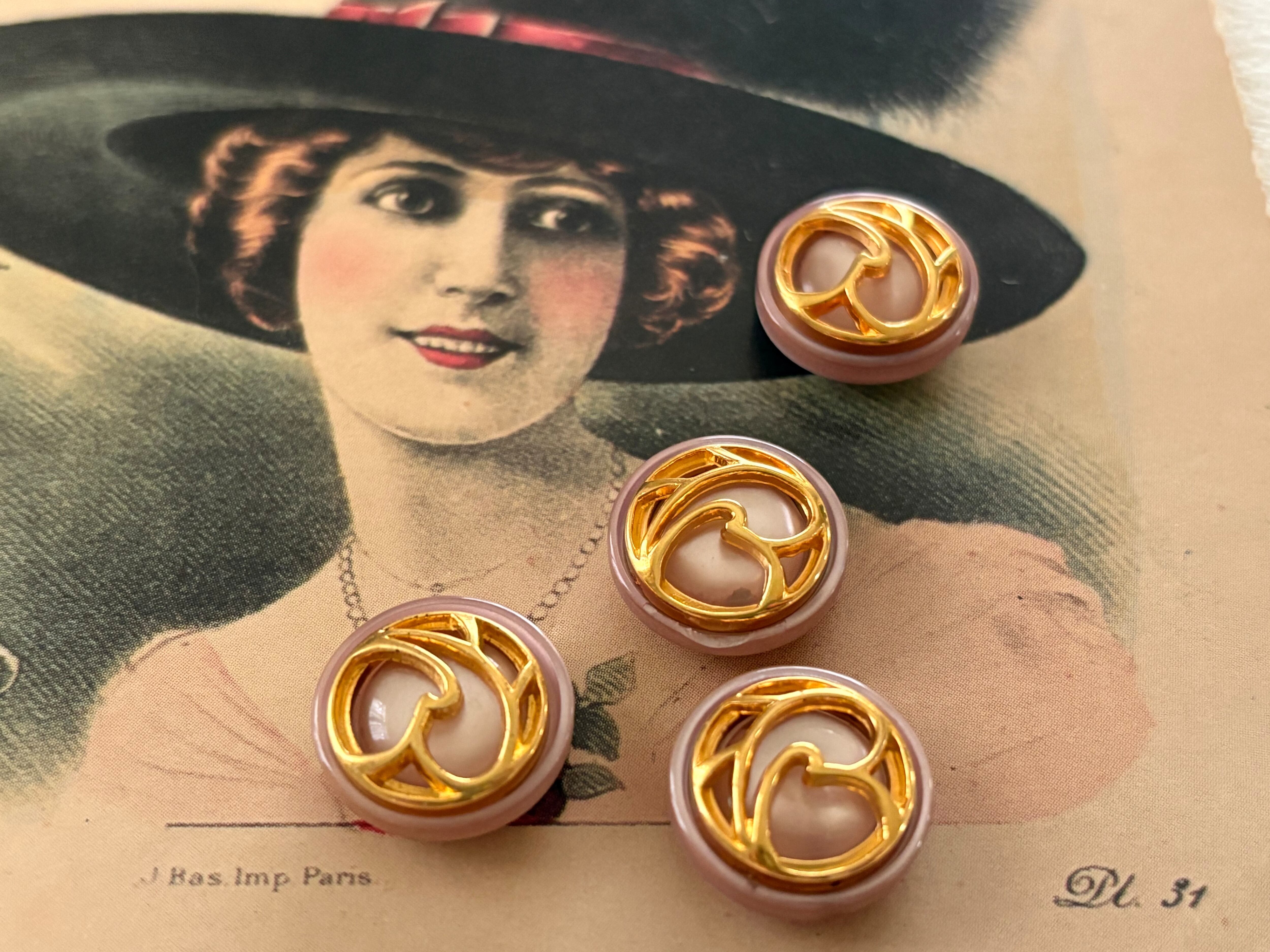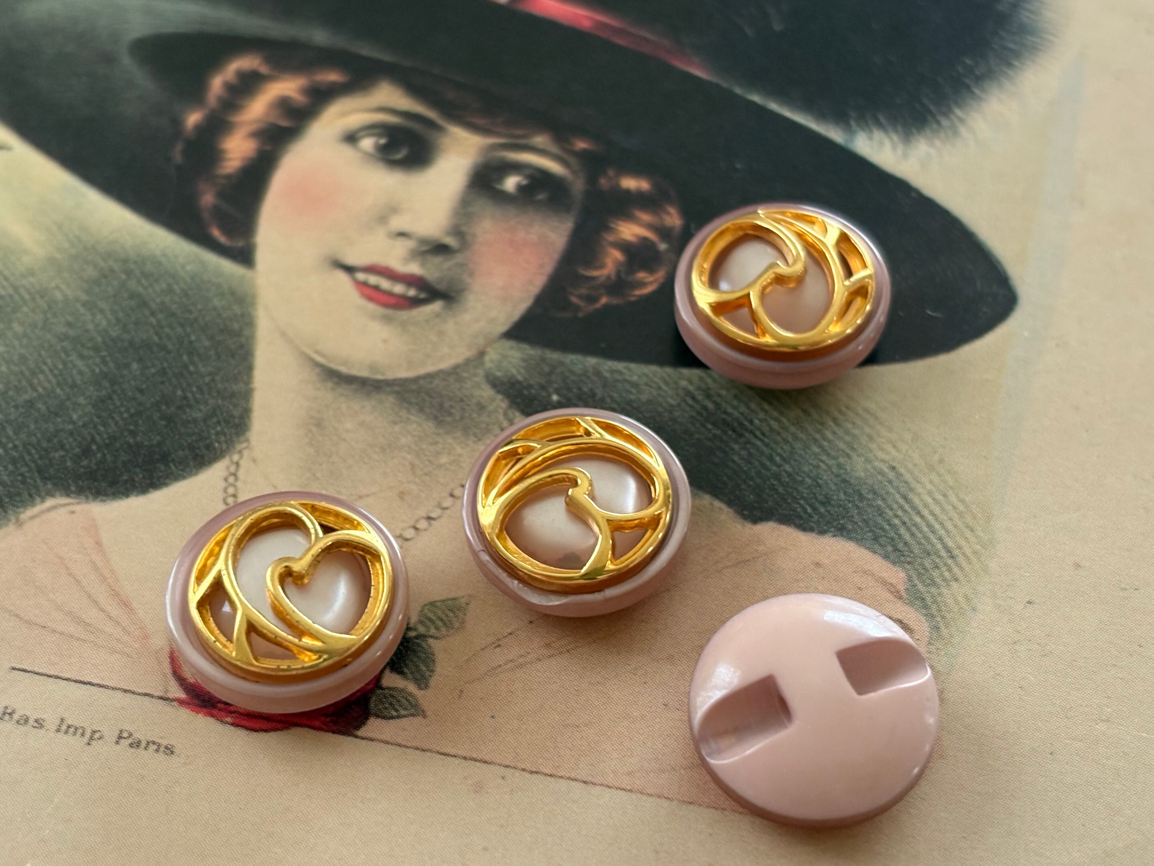 Japanese Vintageボタン レトロボタン ピンク ×ゴールド 15mm アクセサリーパーツ デコレーシ