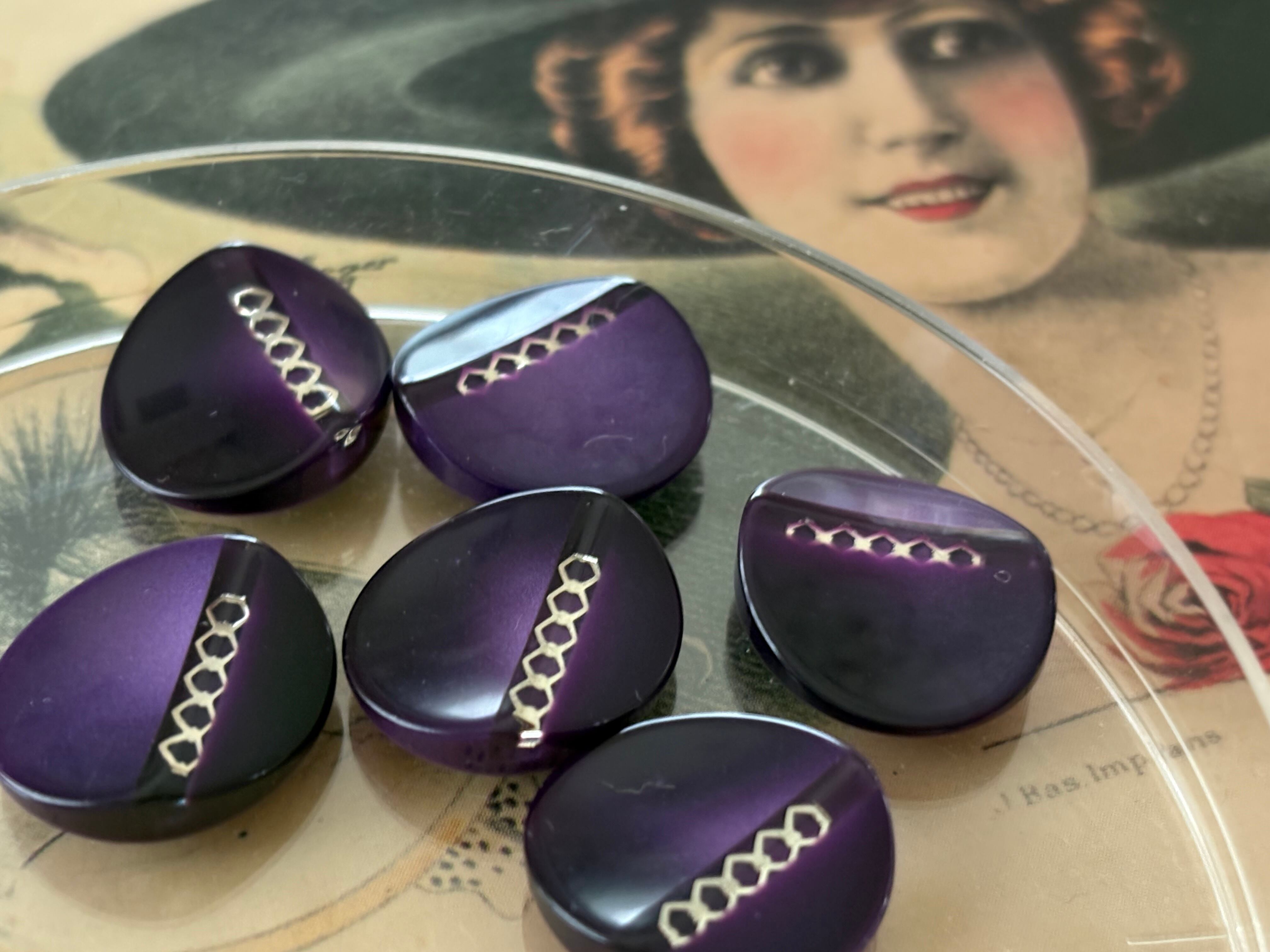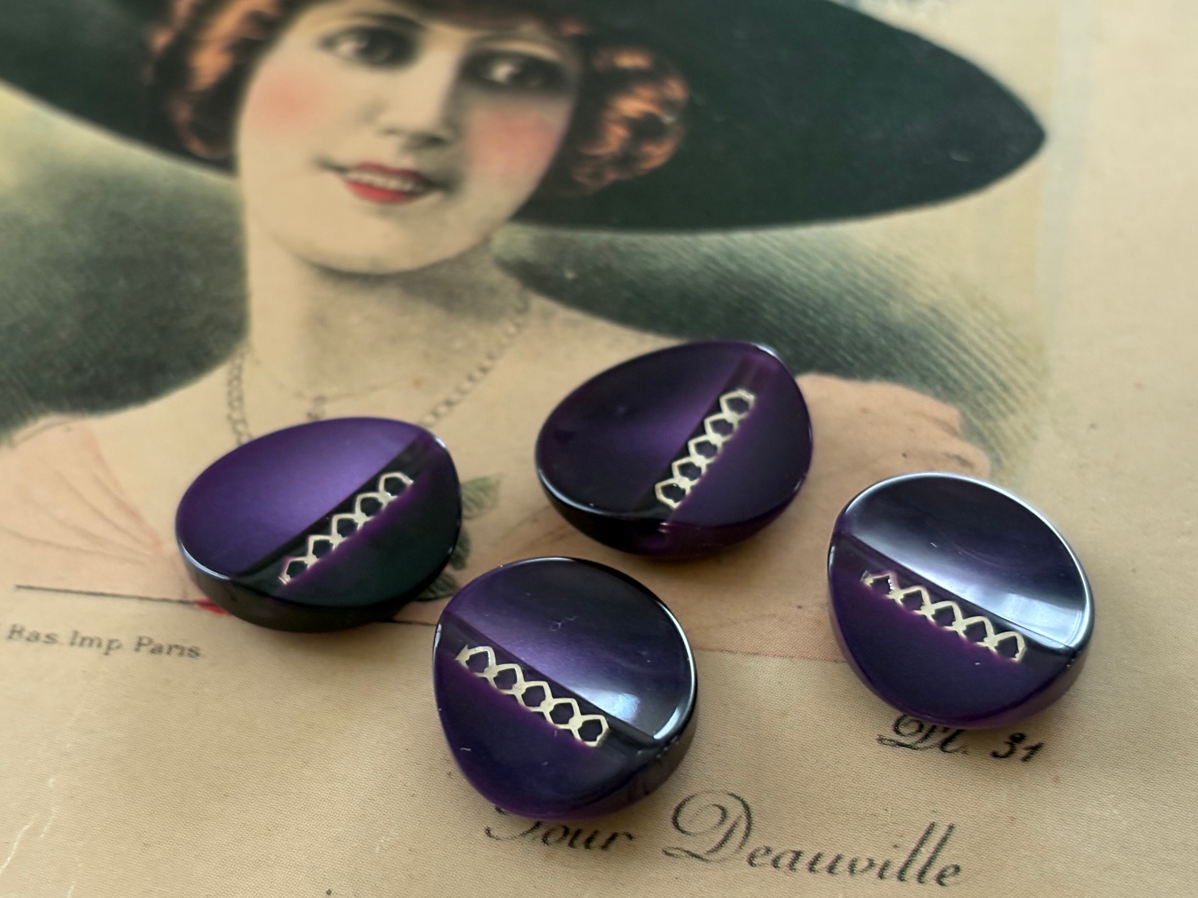 Japanese Vintageボタン レトロボタン 14mm×17mm パープル×シルバー オーバル型 アクセサリーパーツ デコレーション材