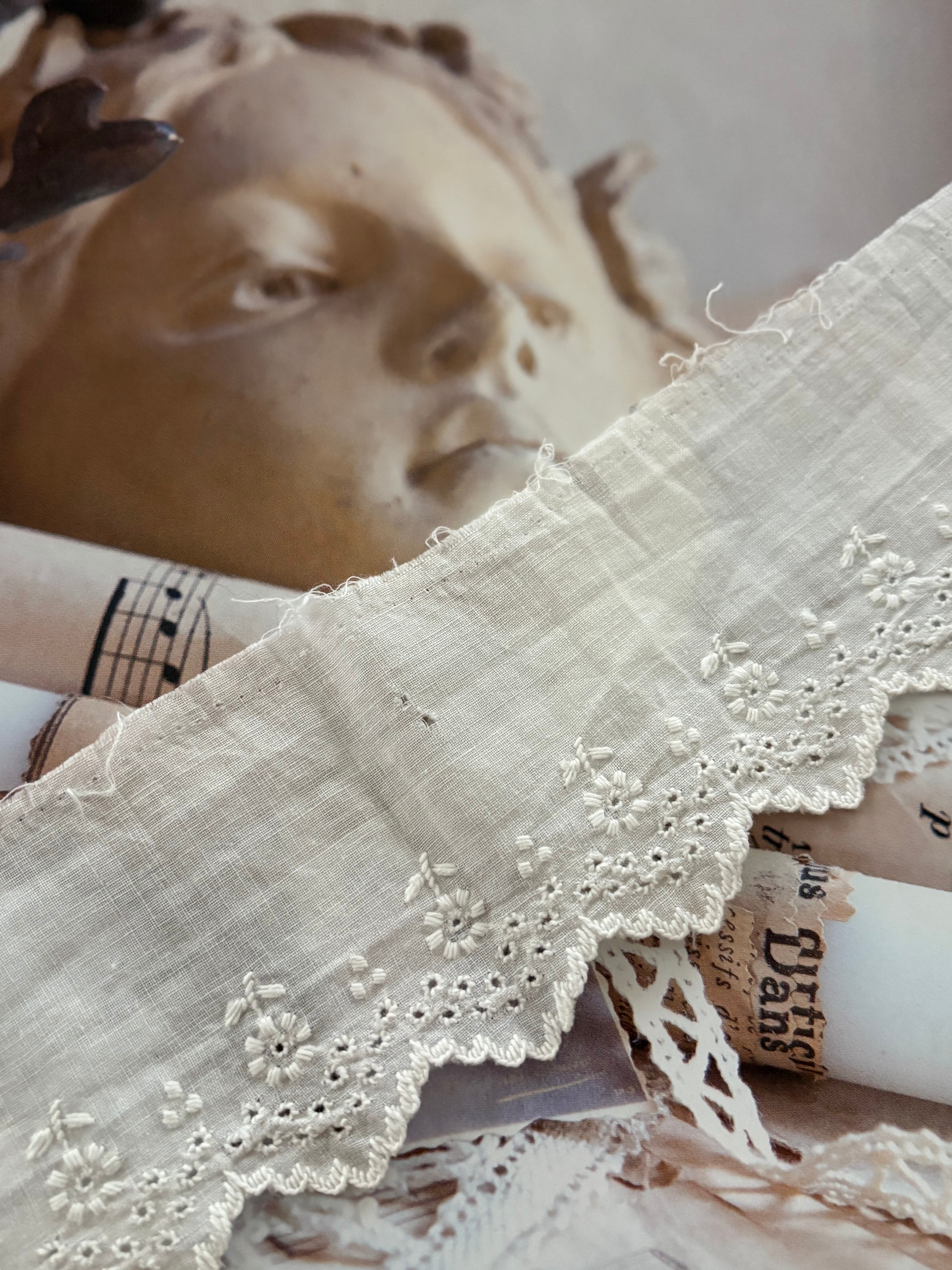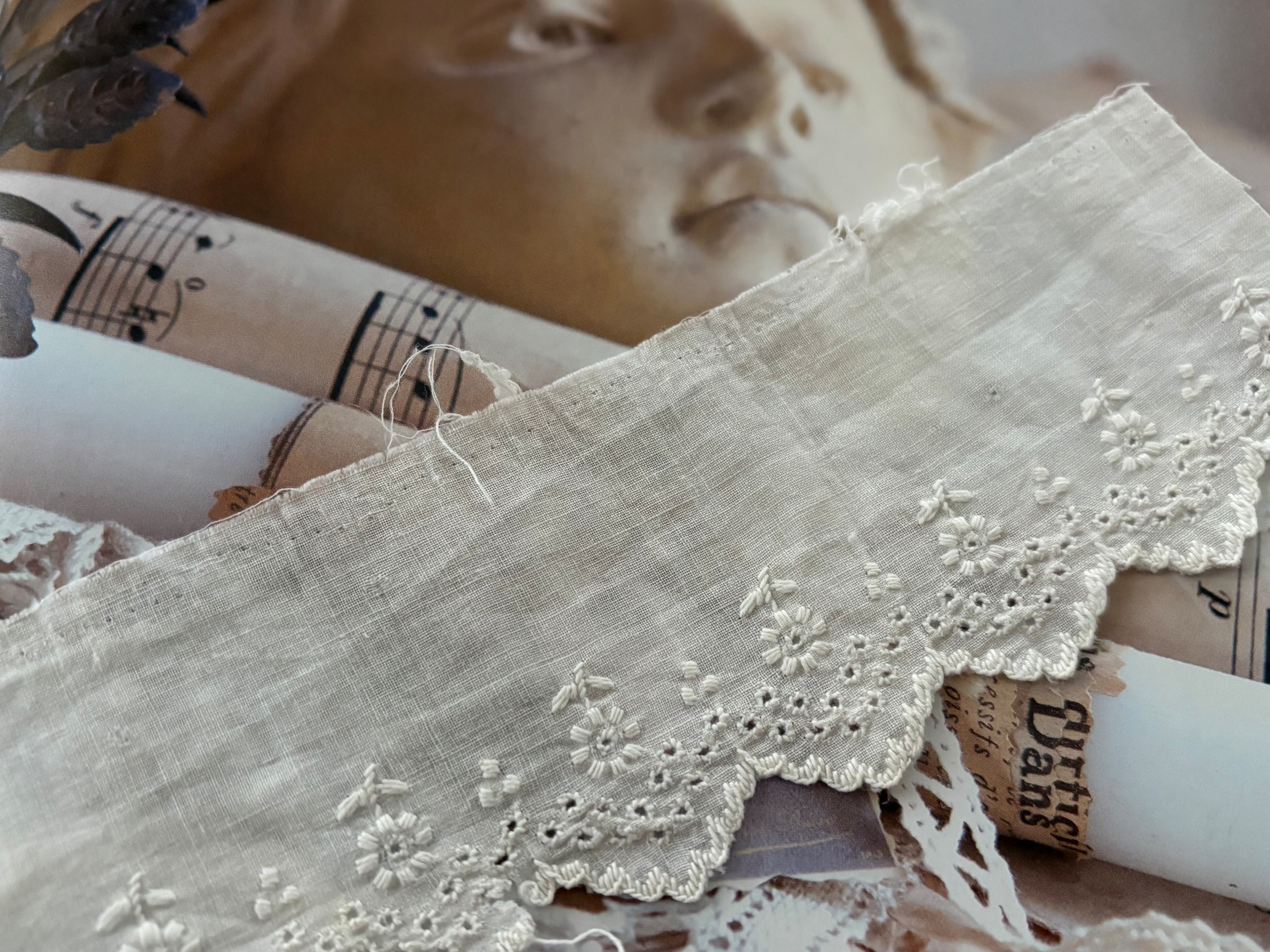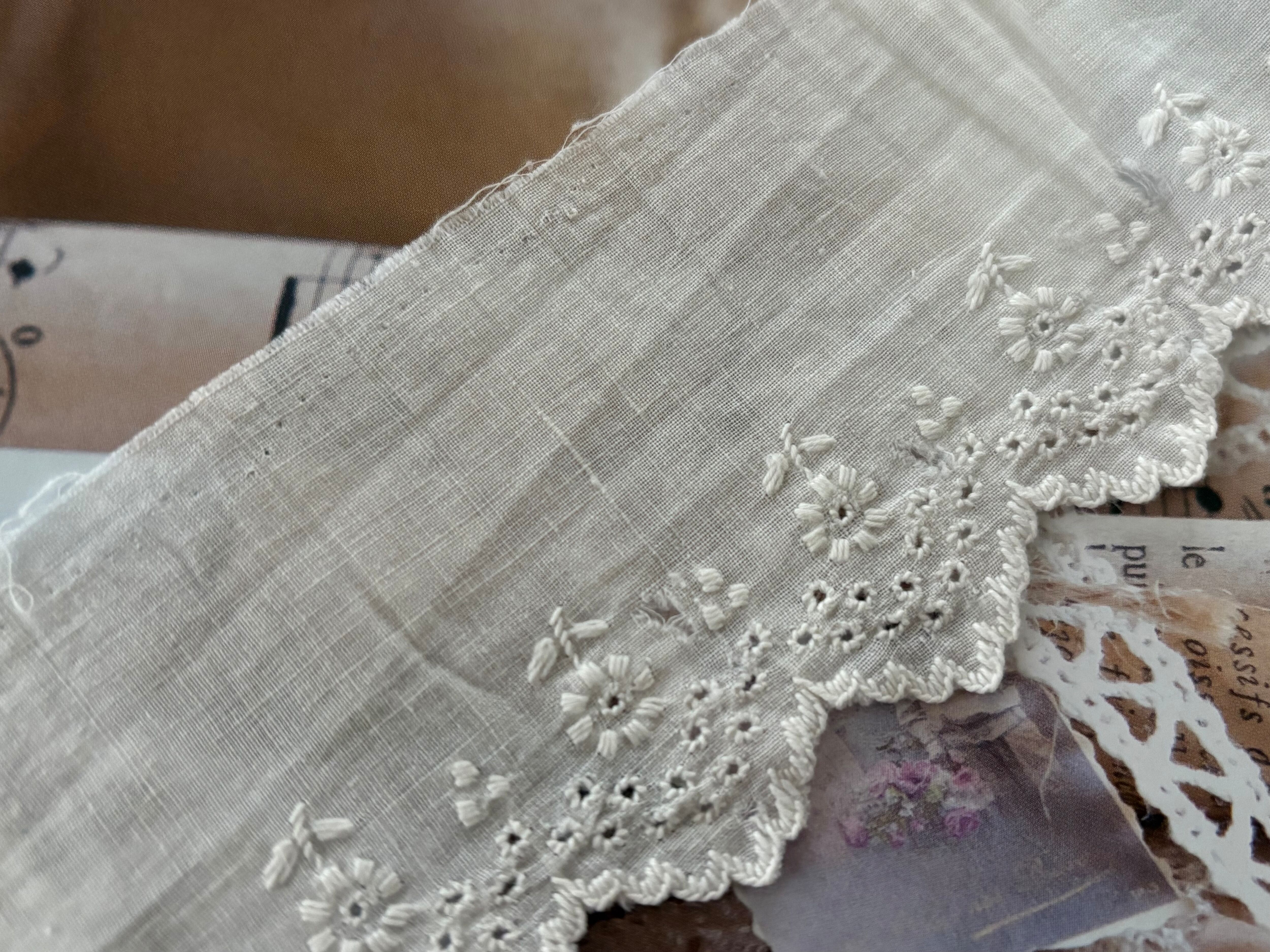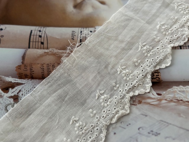 フランスアンティーク 手刺繍 カットレース 約 83cm 手刺繍 花模様 デコレーション カルトナージュ コラージュ