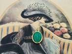 真鍮のゴールドにグリーンのエナメル加工が施されています。