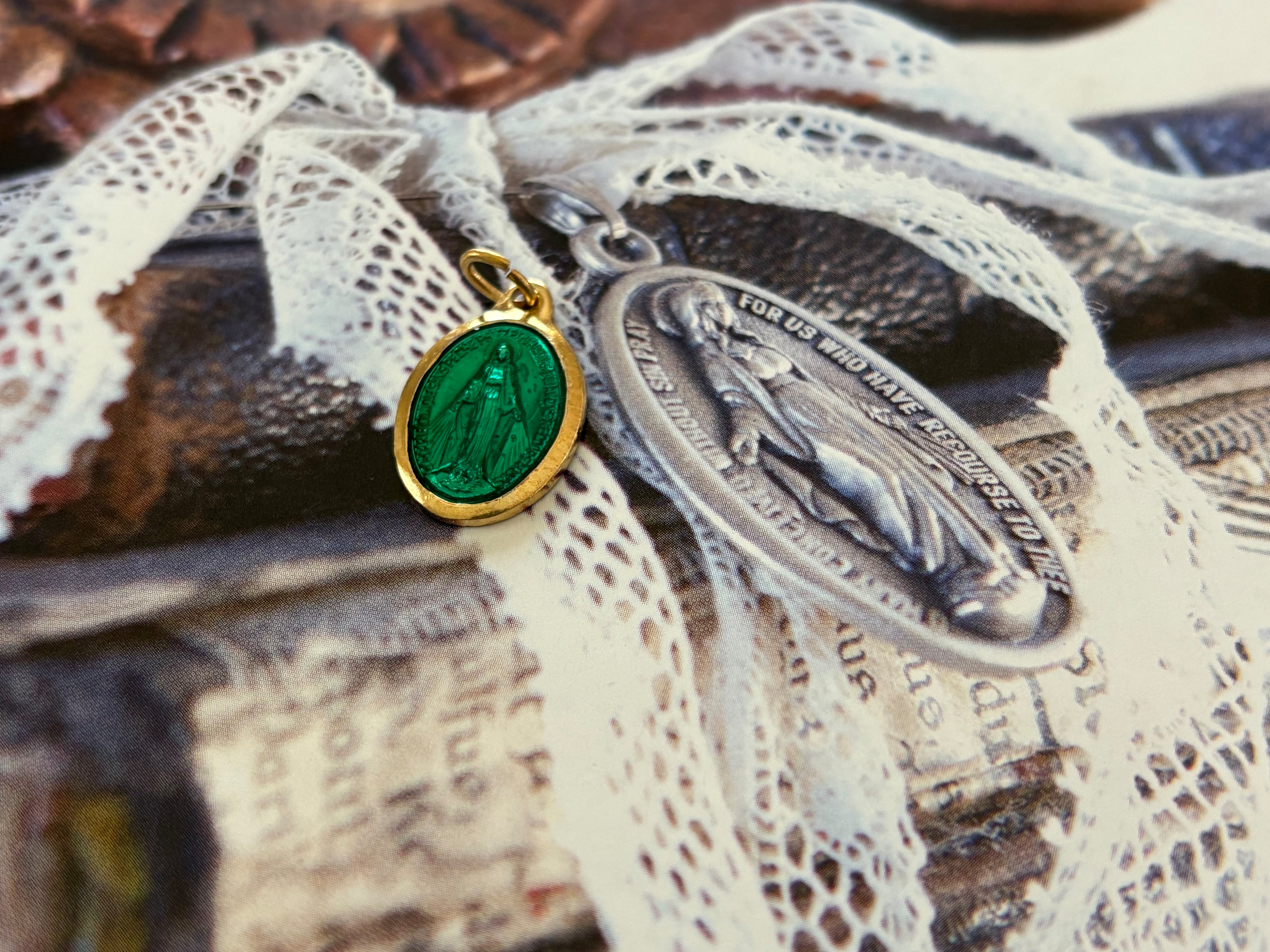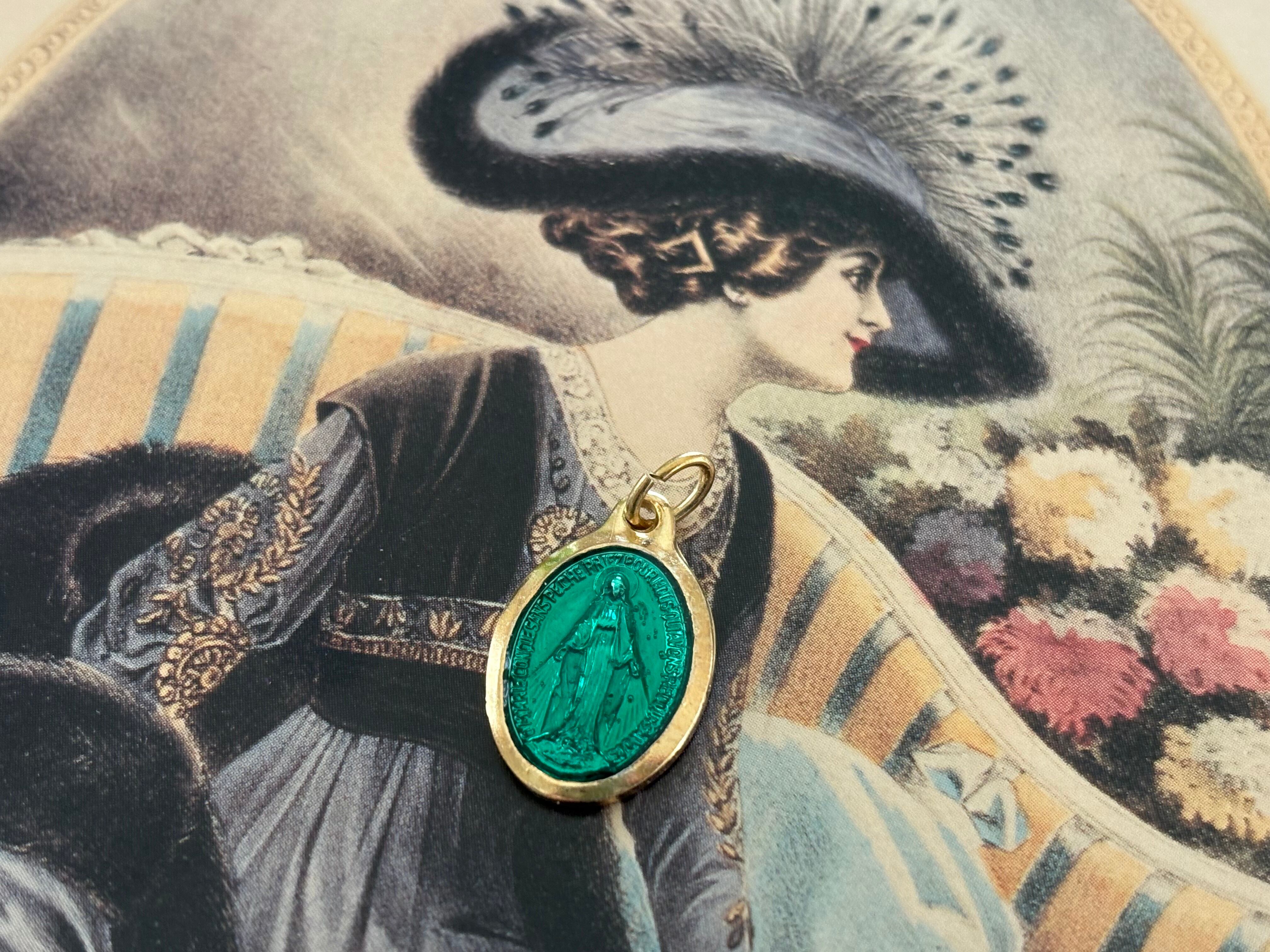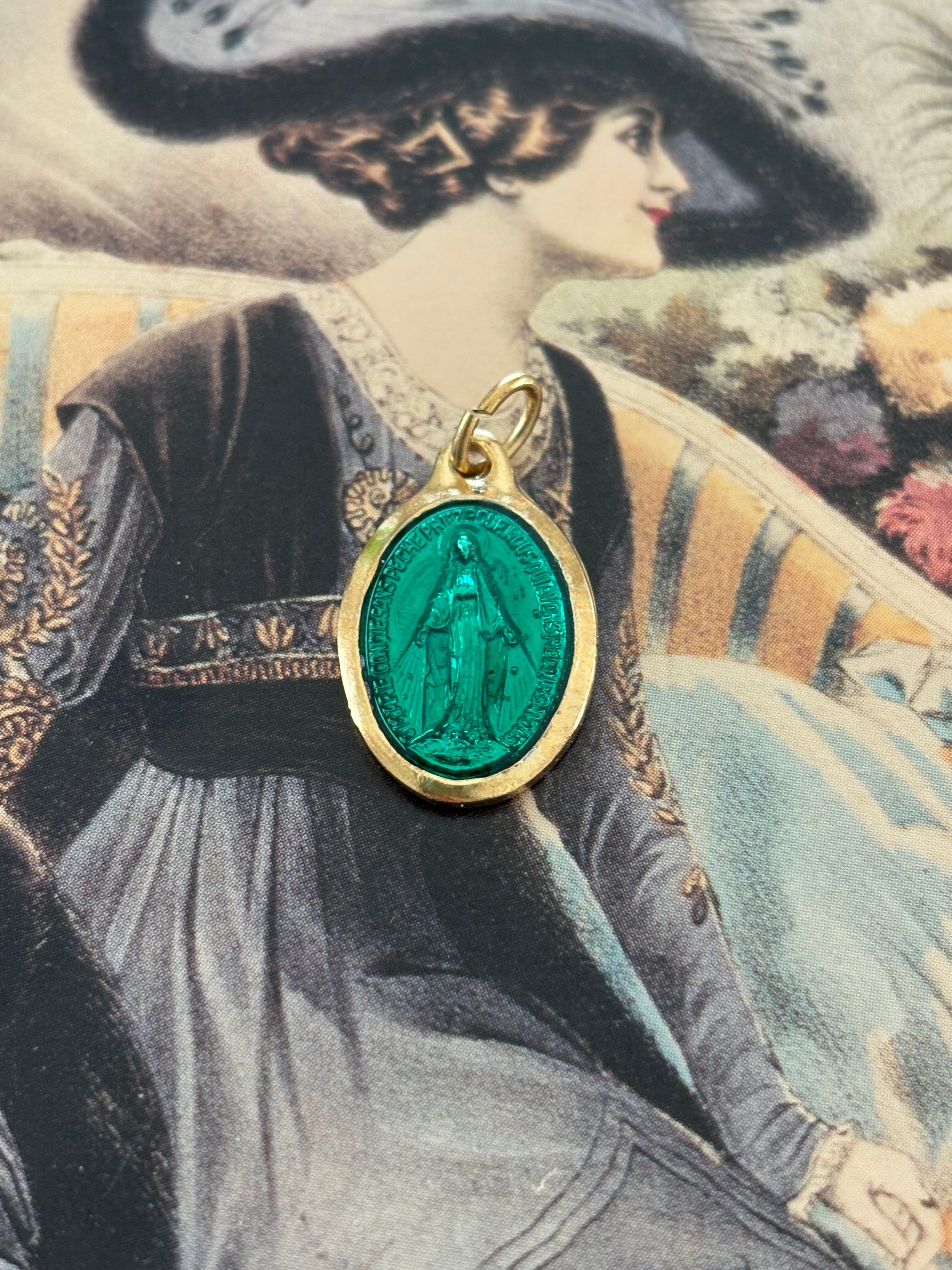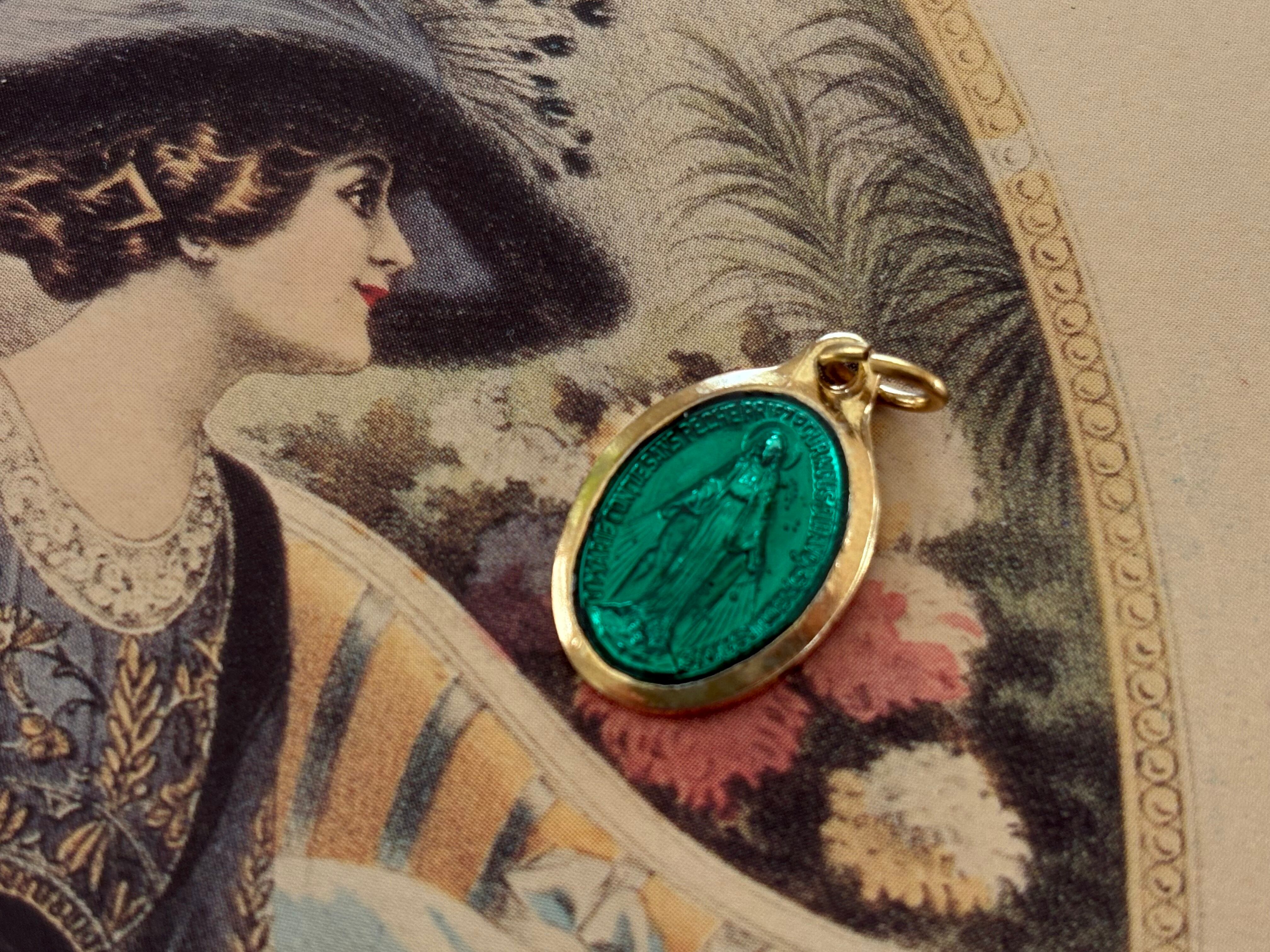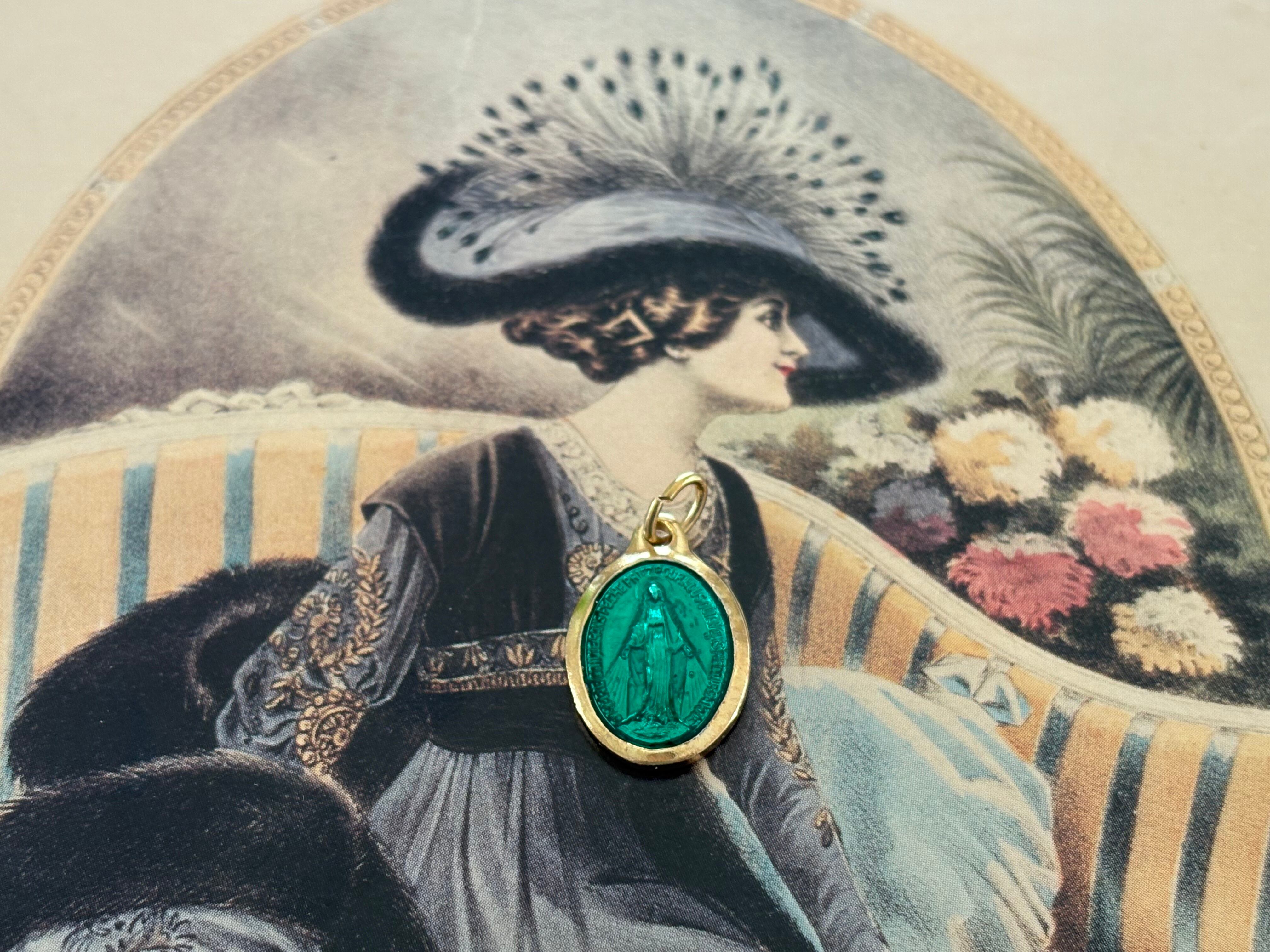フランス 奇跡のメダイ教会 奇跡のメダイユ グリーン 22mm 真鍮 不思議のメダイ 聖品 カトリック教会 クリスマス Noel