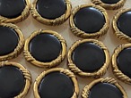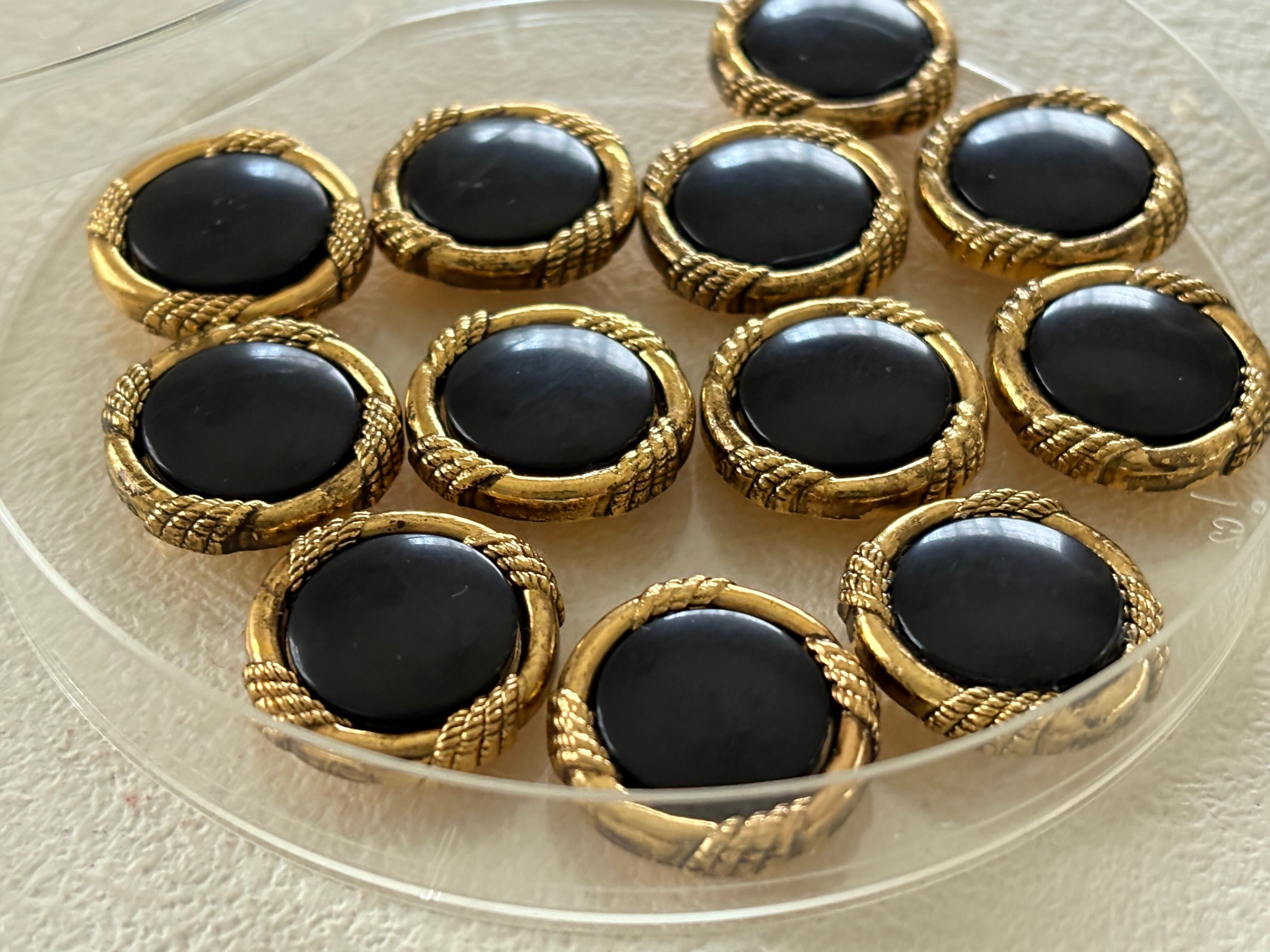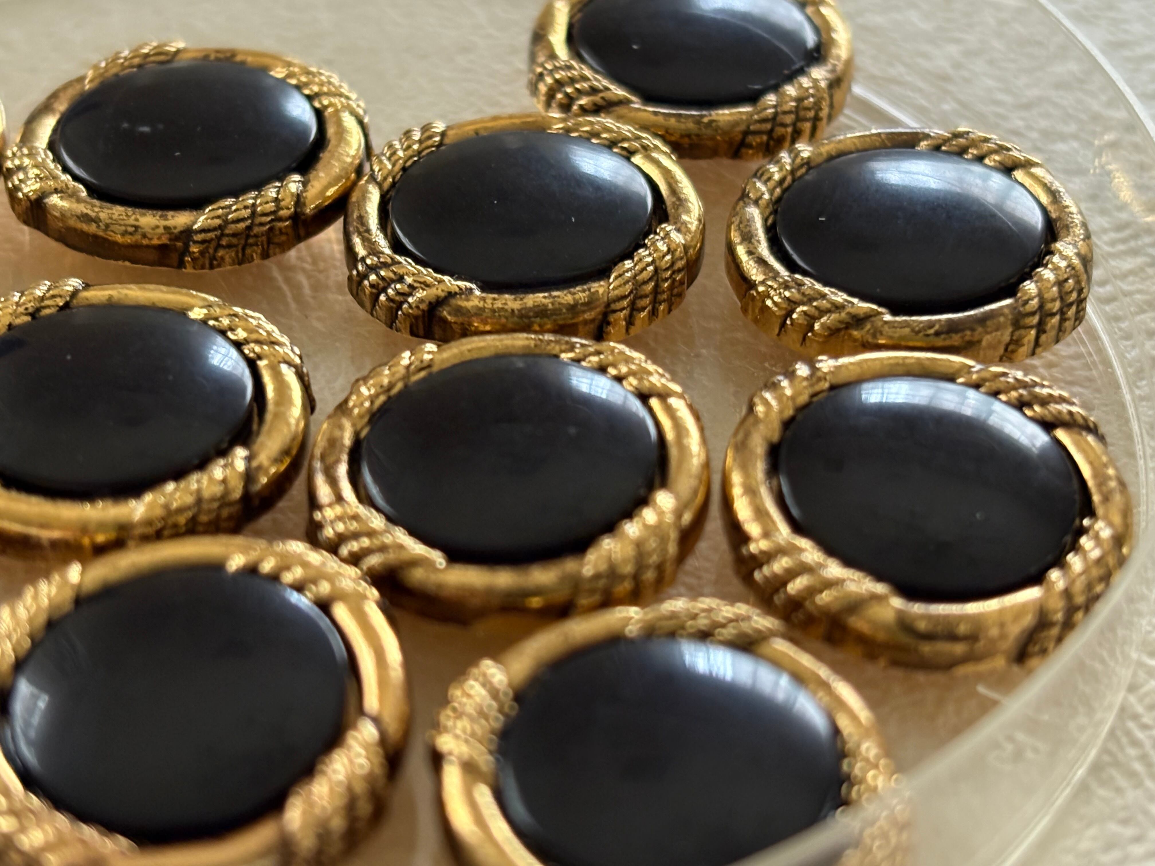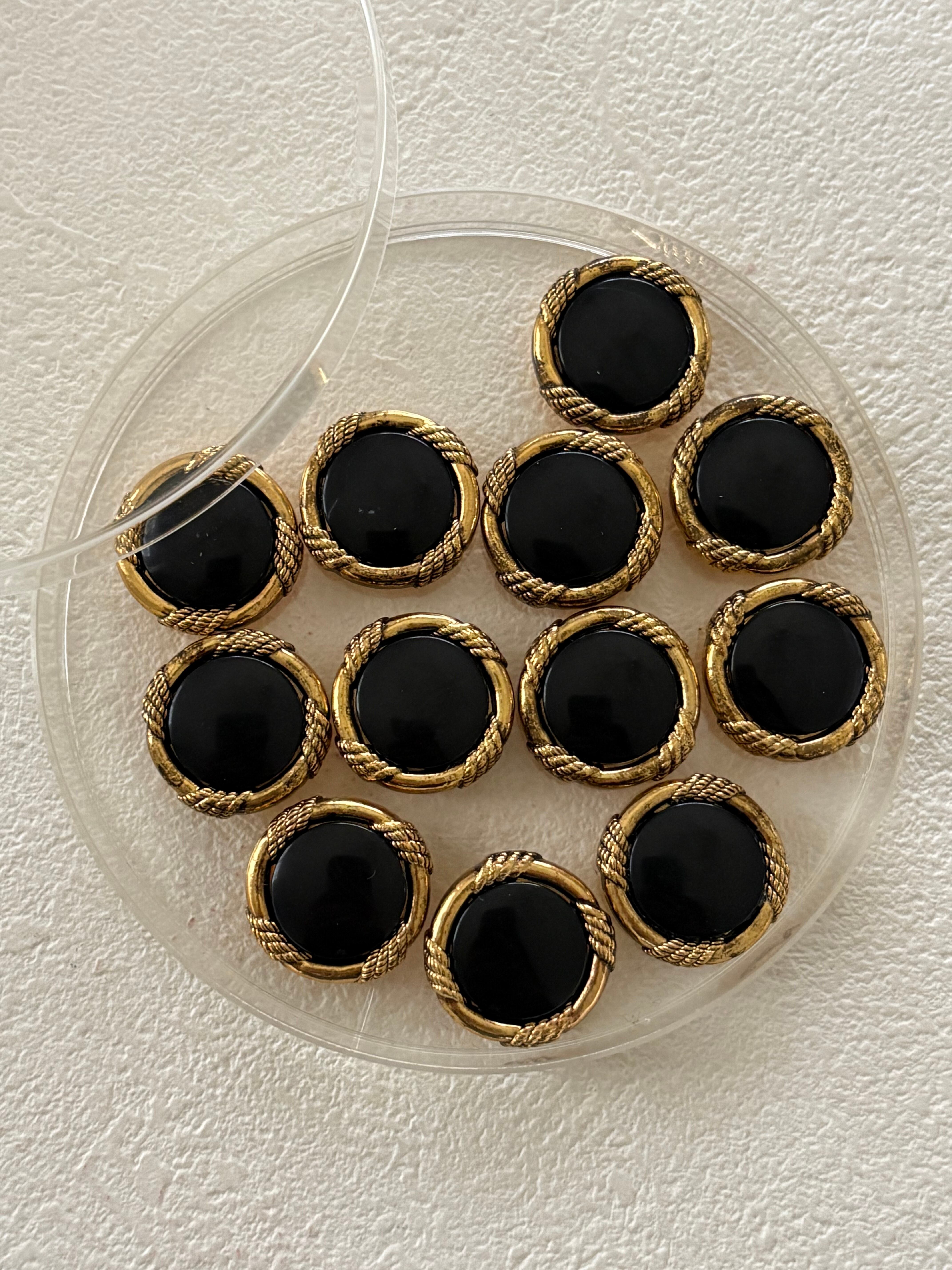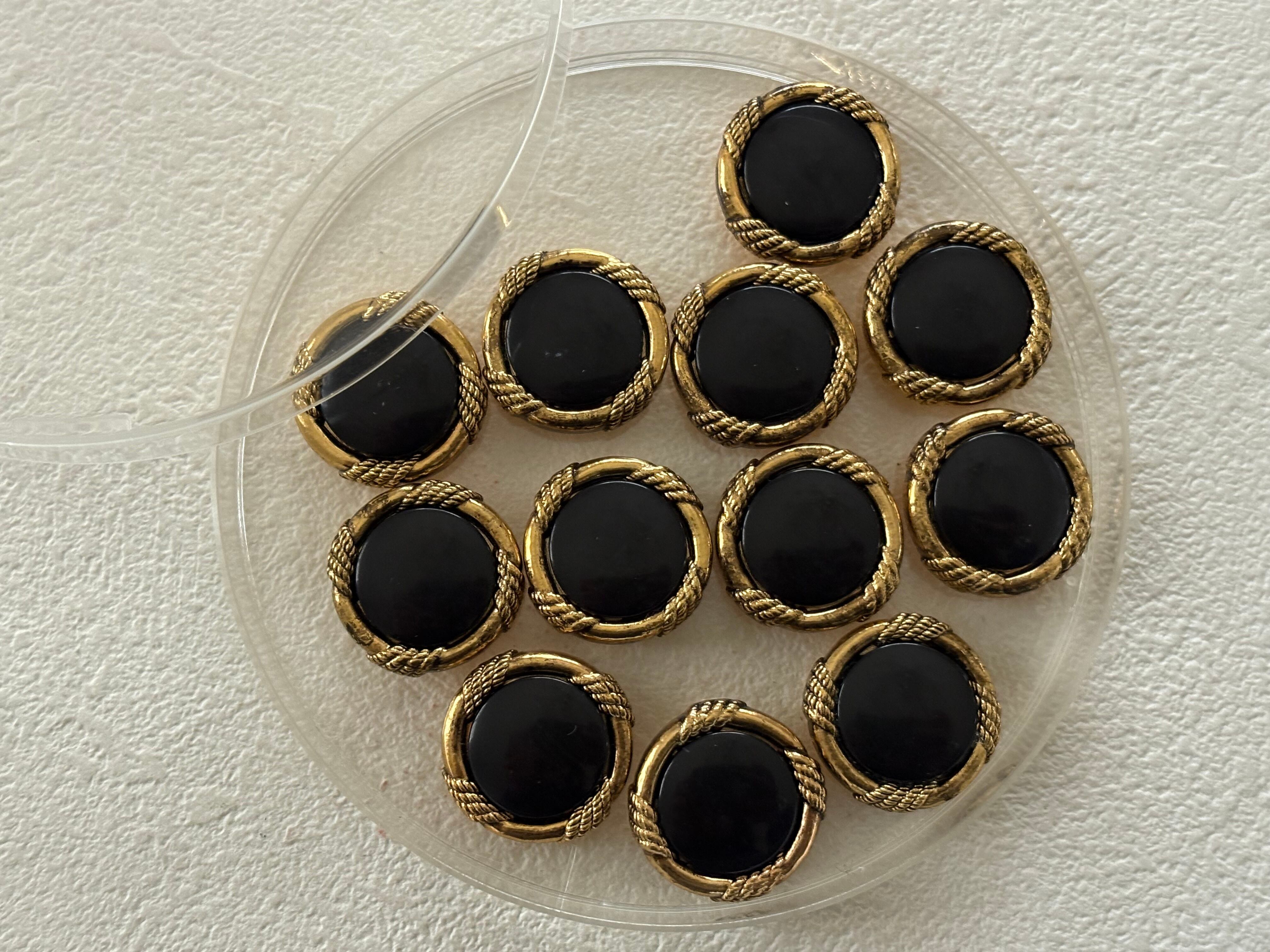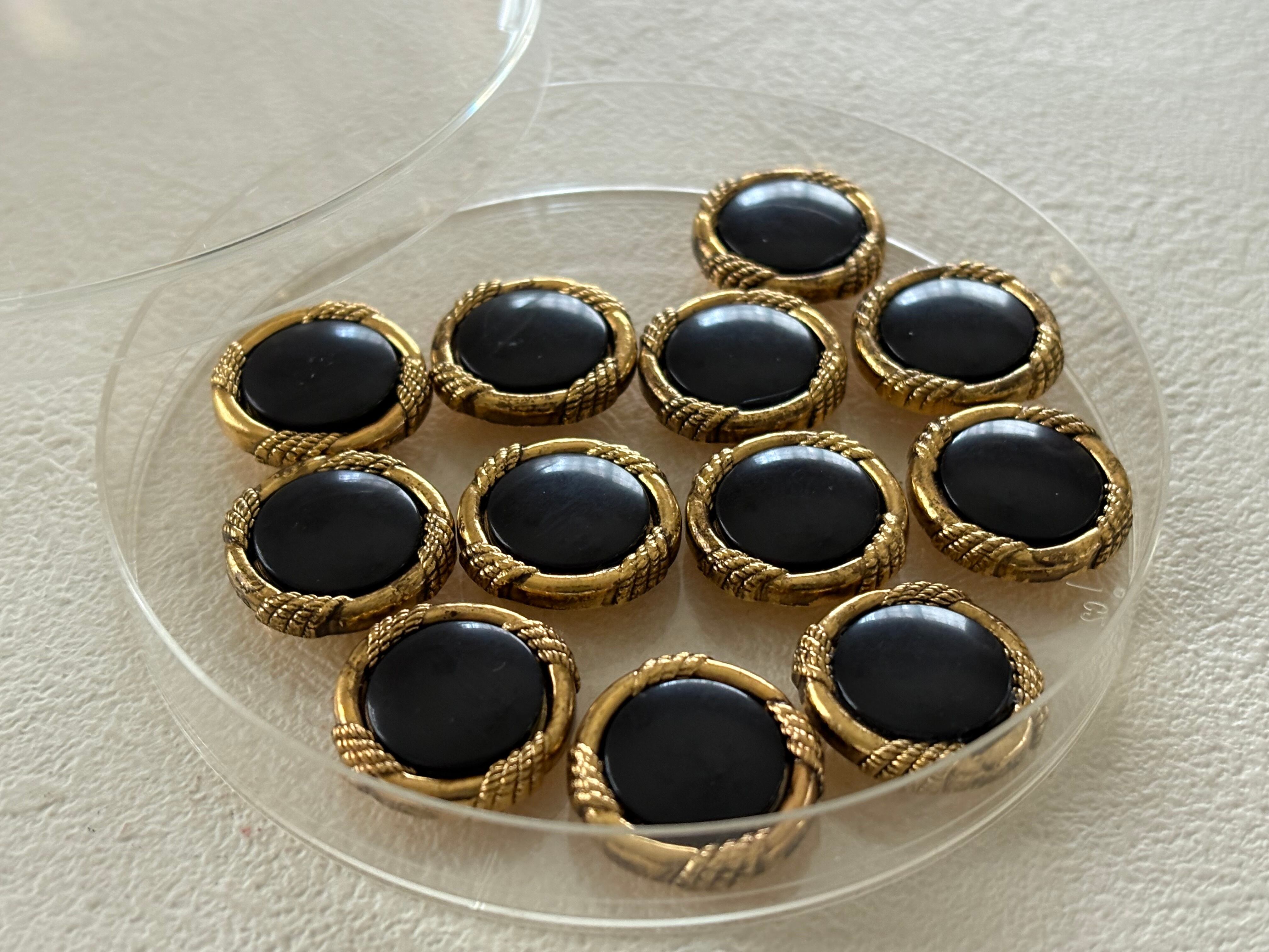 Japanese Vintage ボタン 18mm ブラック×ゴールド カボション プラスチック アクセサリーパーツ 装飾材 カルトナージ
