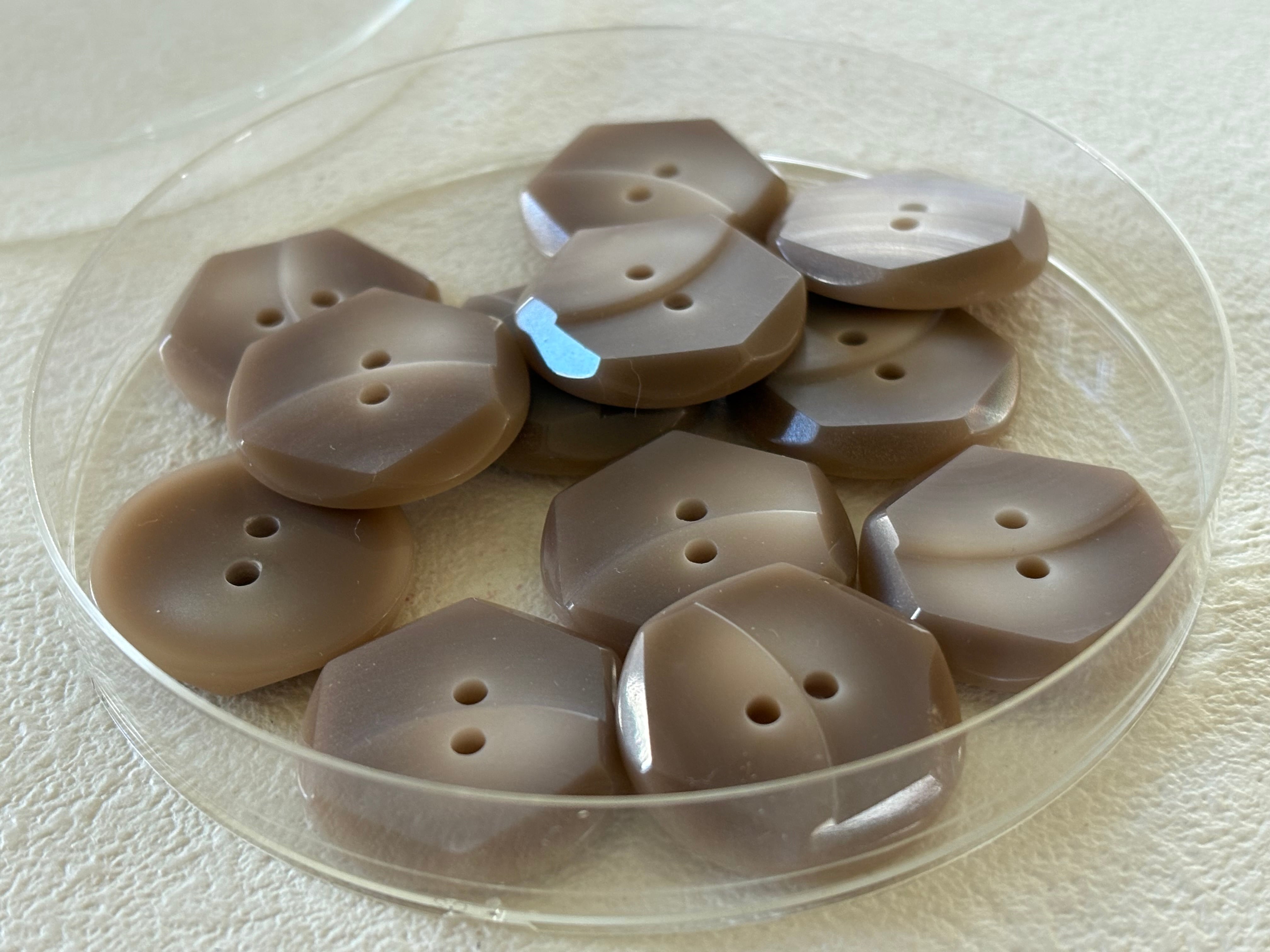 Japanese Vintage ボタン ミルクティー 22mm 六角形 2個セット レトロ アクセサリーパーツ 二つ穴