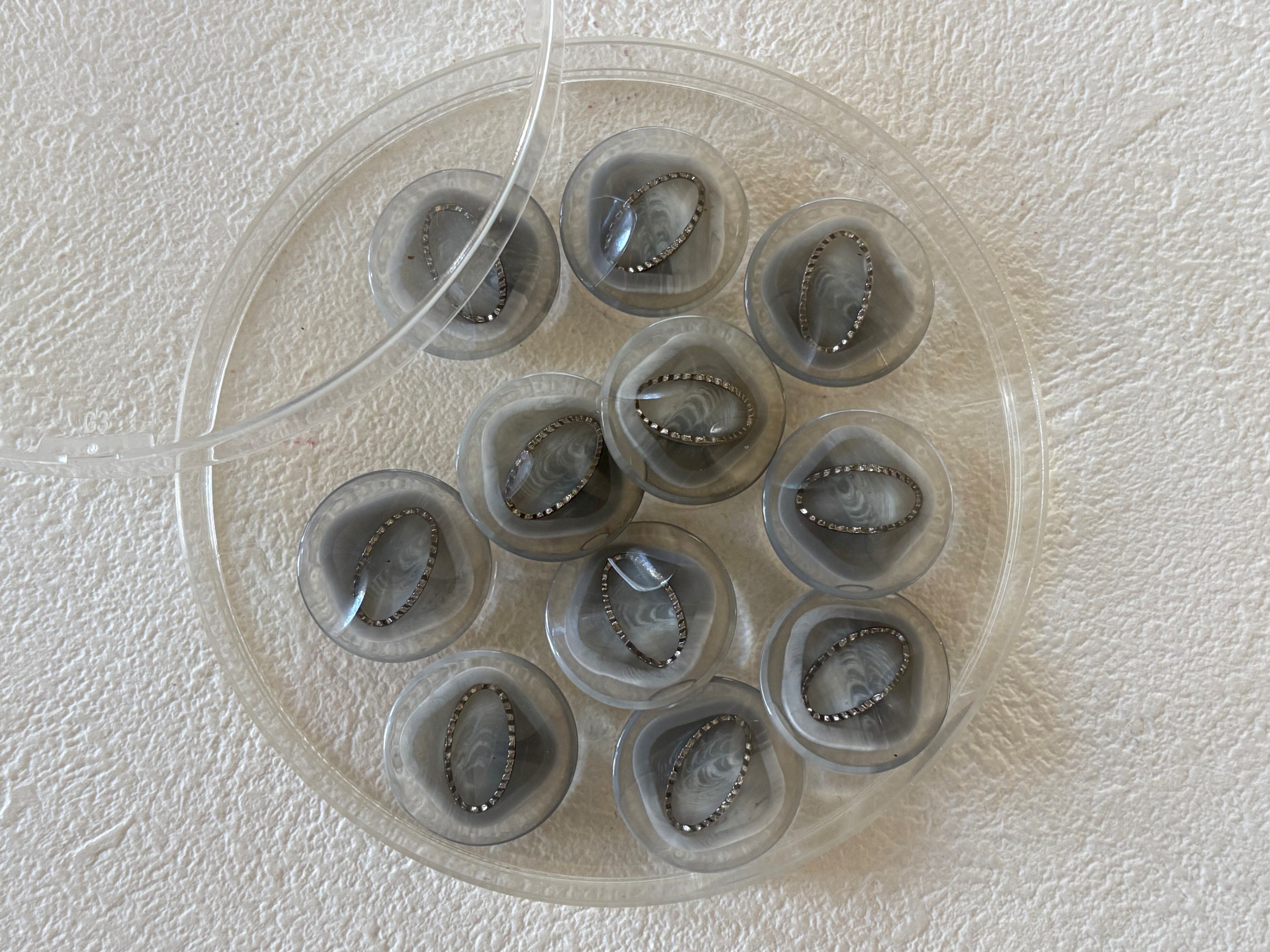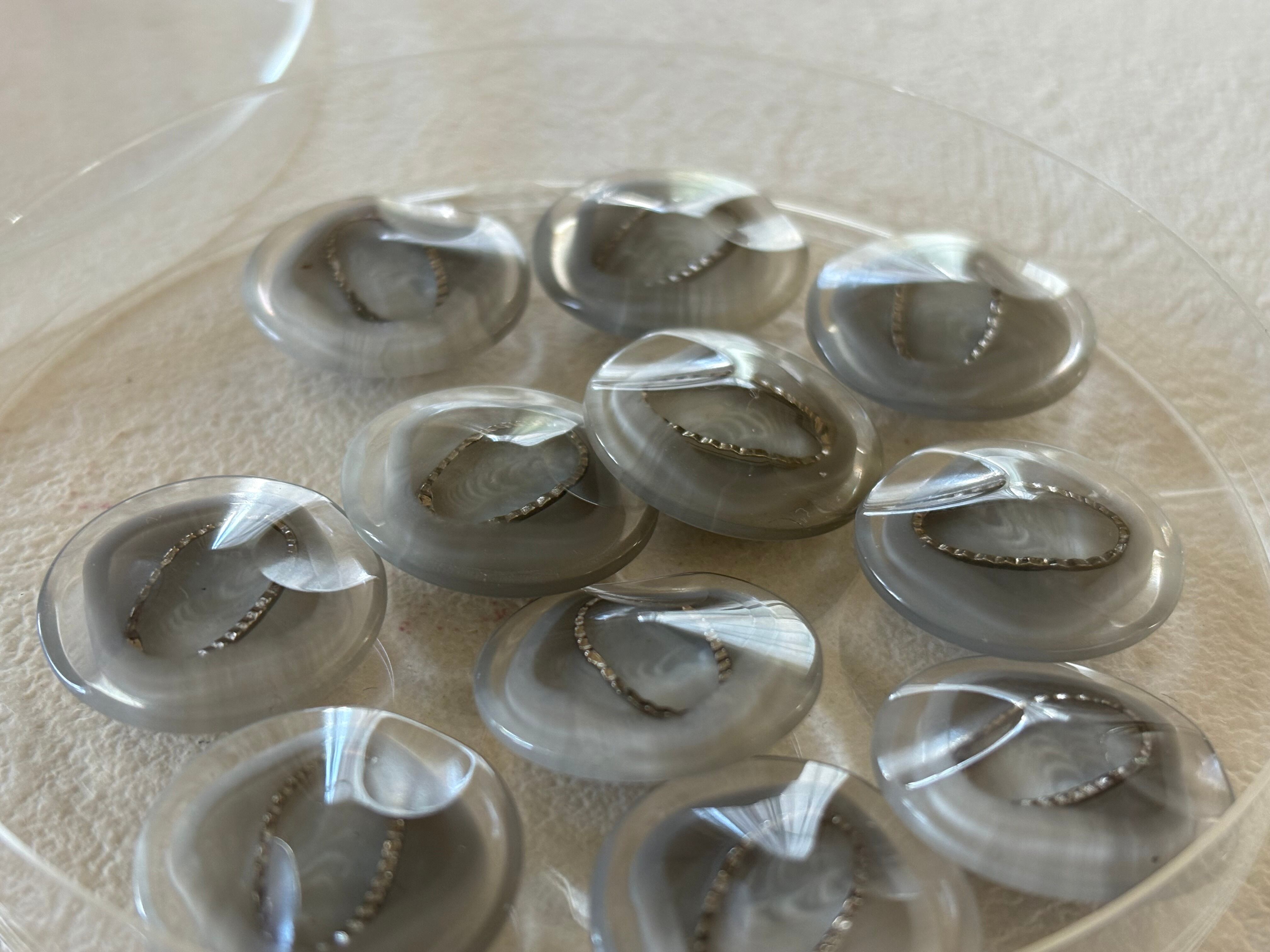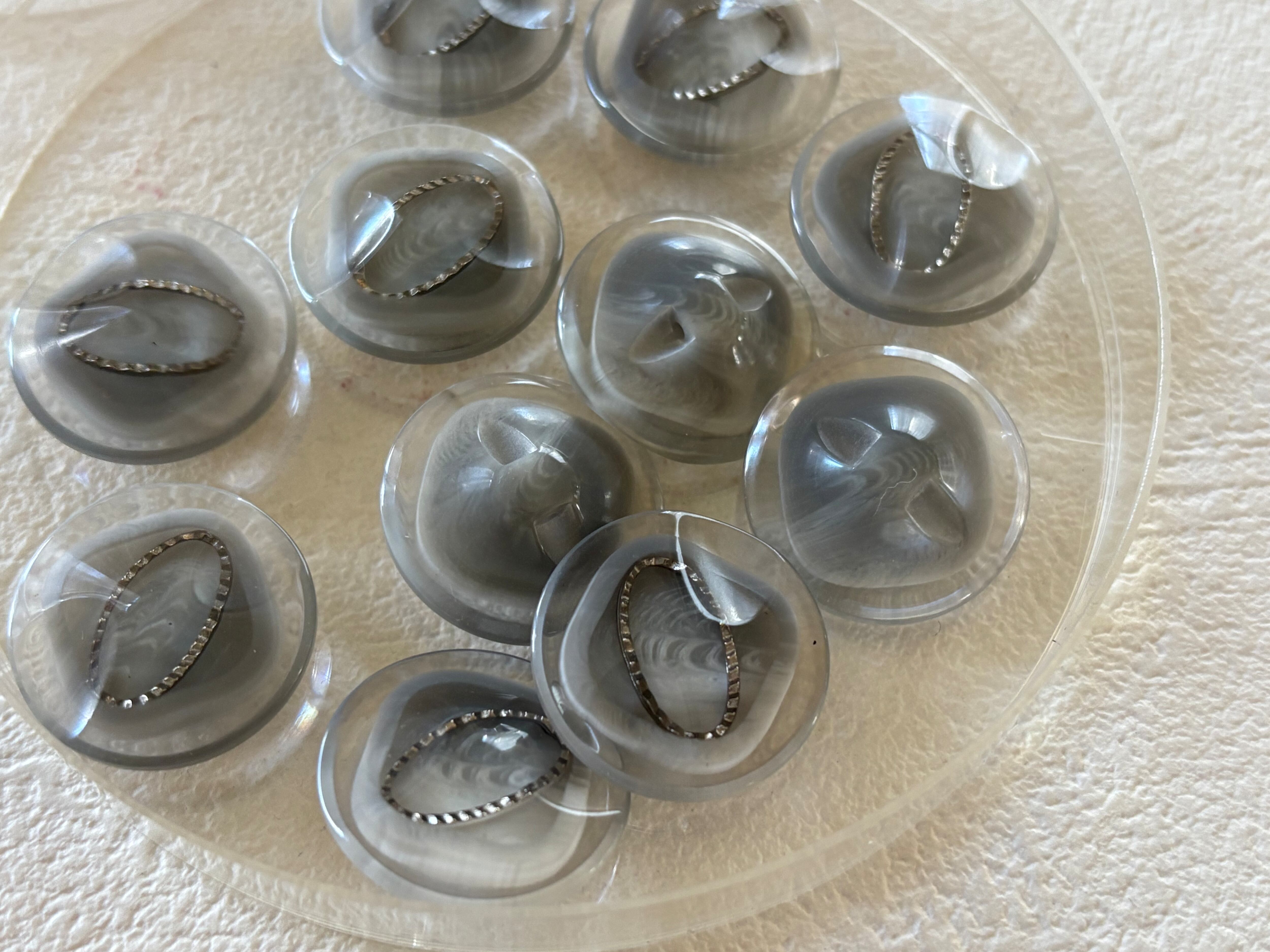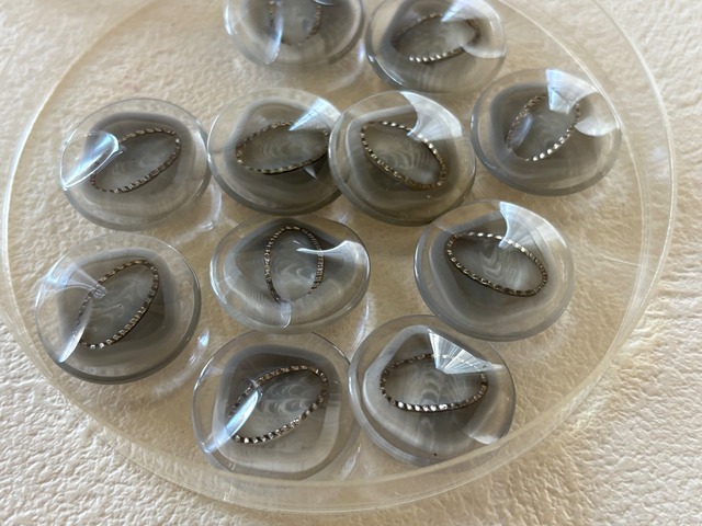 Japanese Vintage ボタン 19mm クリア×グレー×シルバー プラスチックボタン 昭和レトロ アクセサリーパーツ 装飾材 カルトナージュ