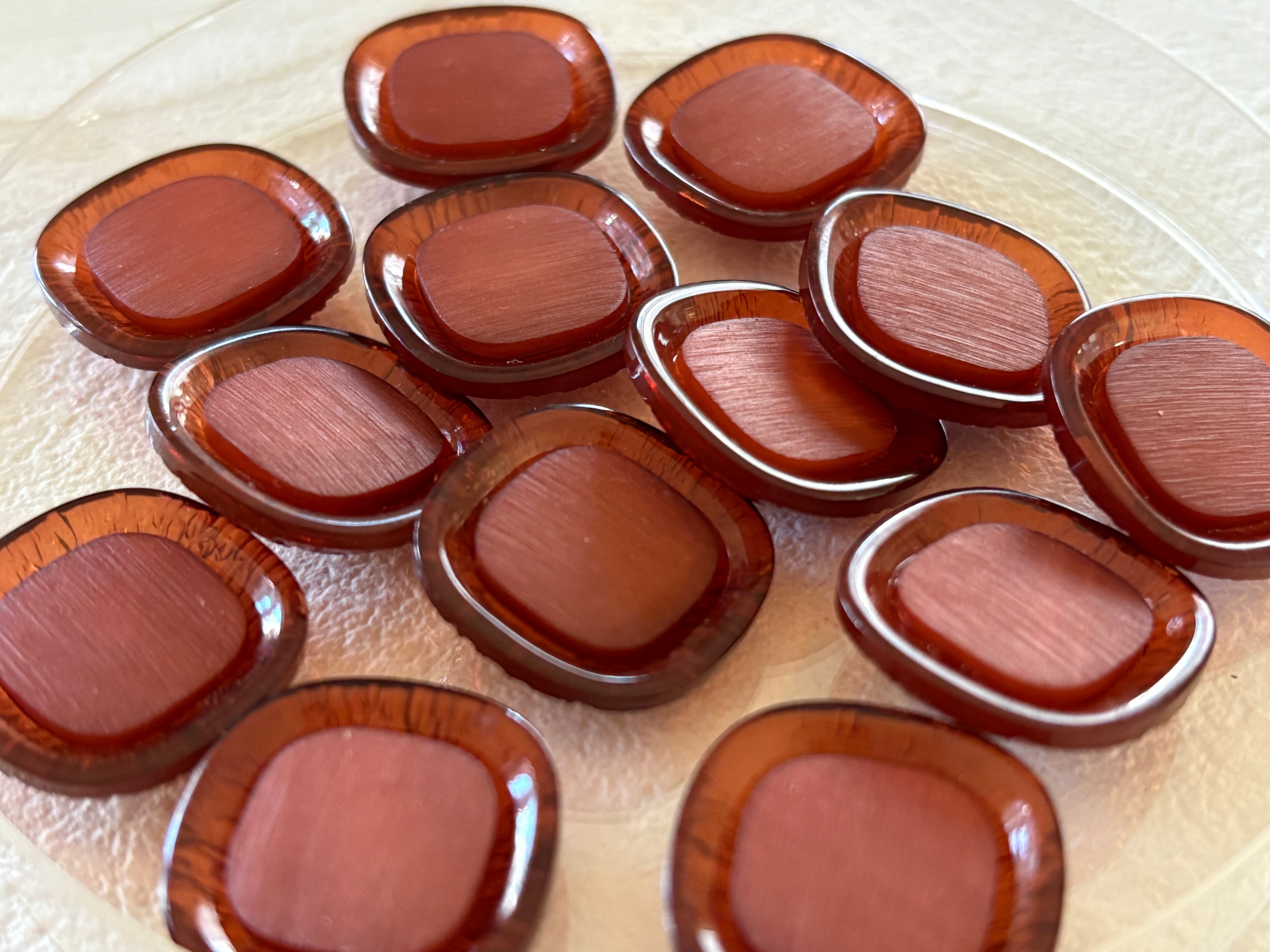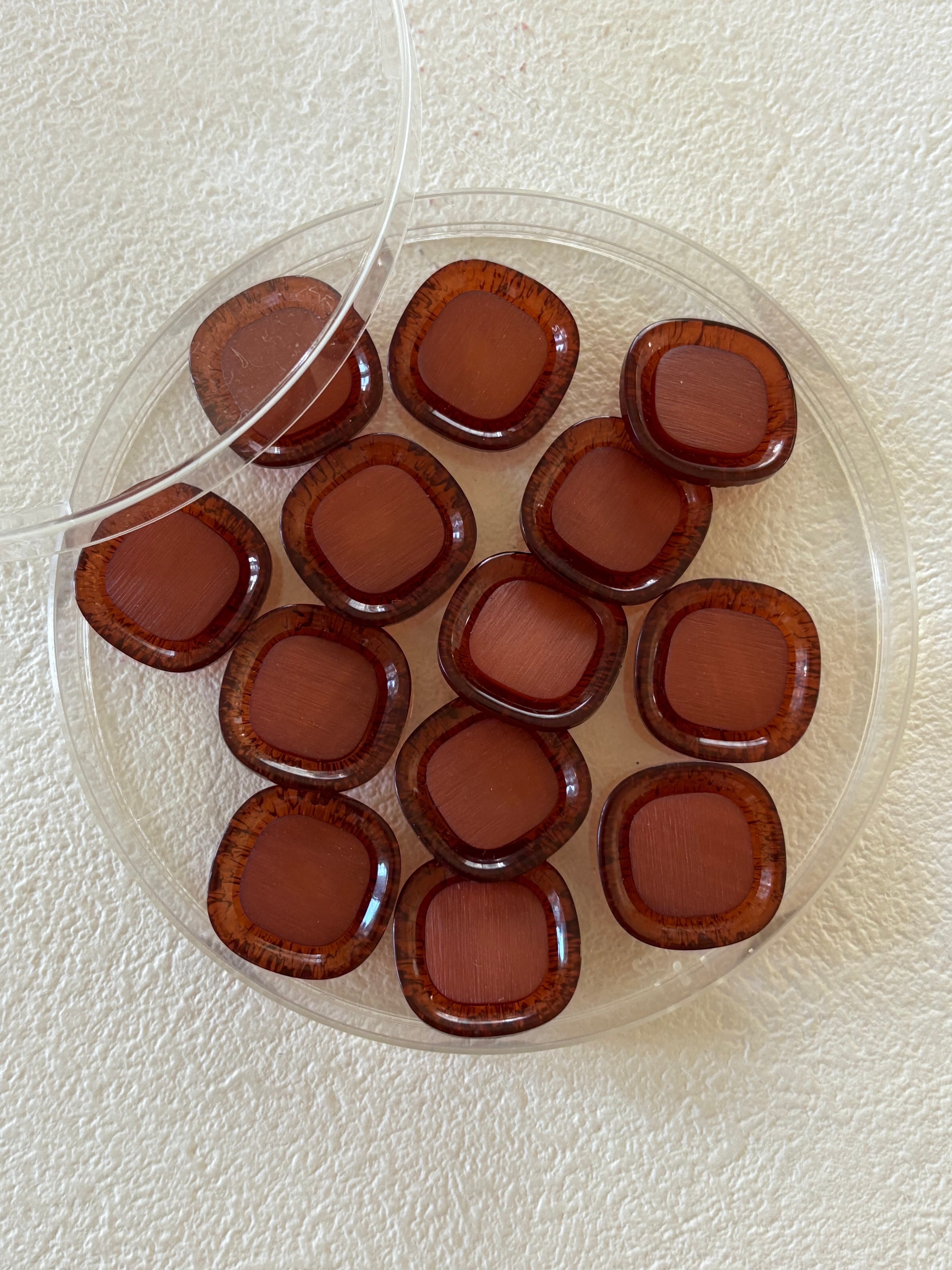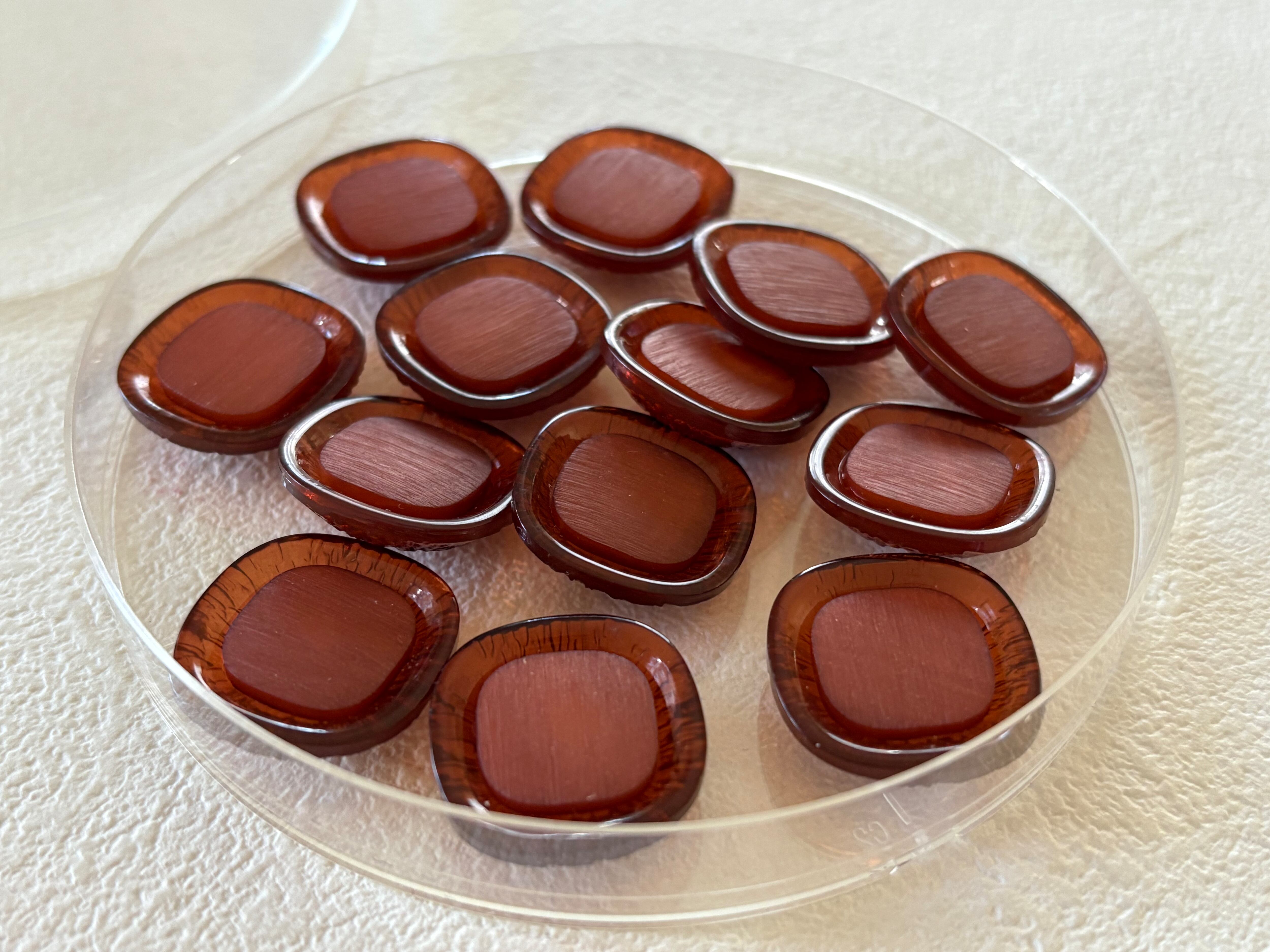 Japanese Vintage ボタン 角なしスクウェア ブラウン カボション 19mm 昭和レトロ アクセサリーパーツ 装飾材 カルトナージュ