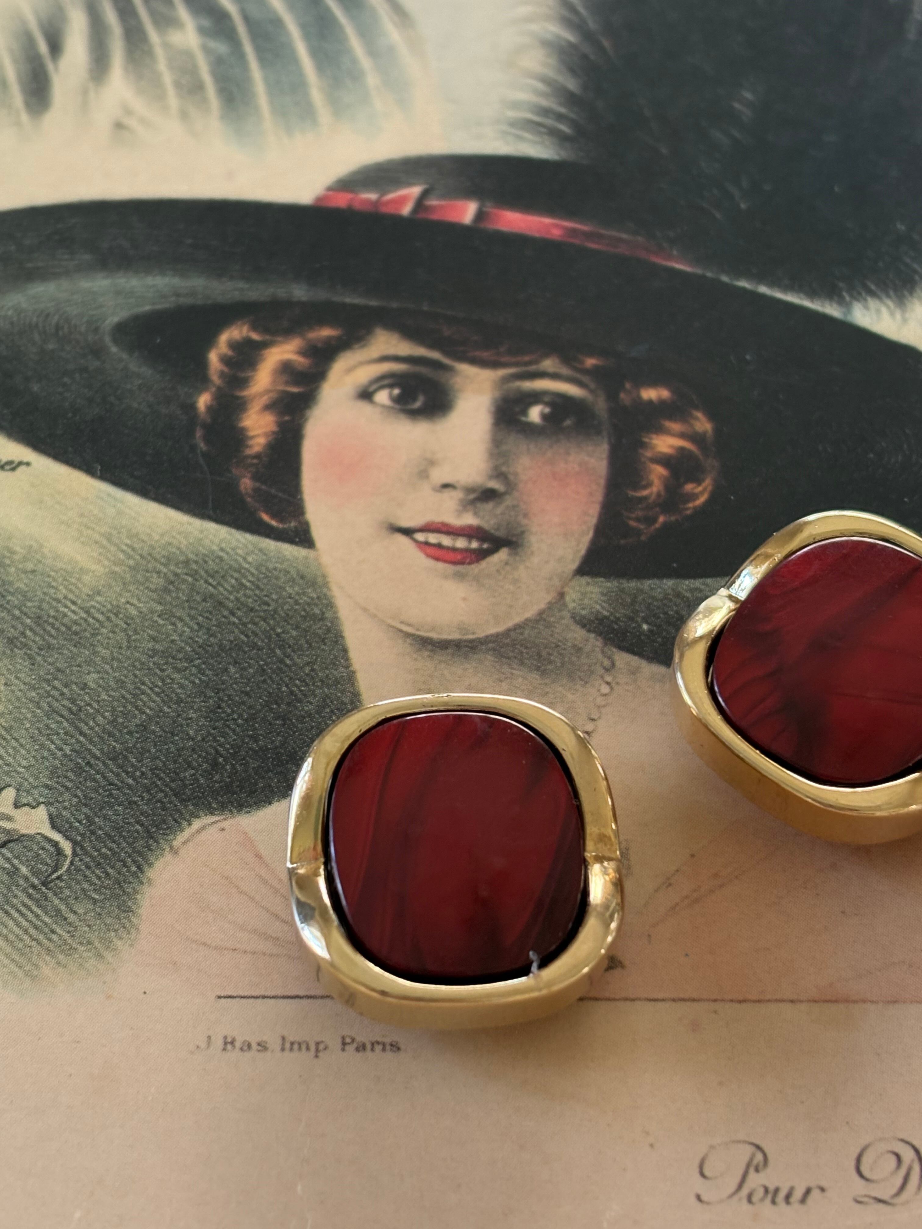 艶やかなゴージャスシックに輝くマーブル模様、レッドカラーのカボション。