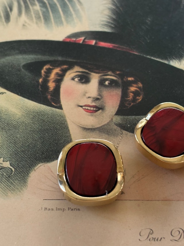 Japanese Vintageボタン レッド×ゴールド マーブル カボション 21mm アクセサリーパーツ デコレーション材