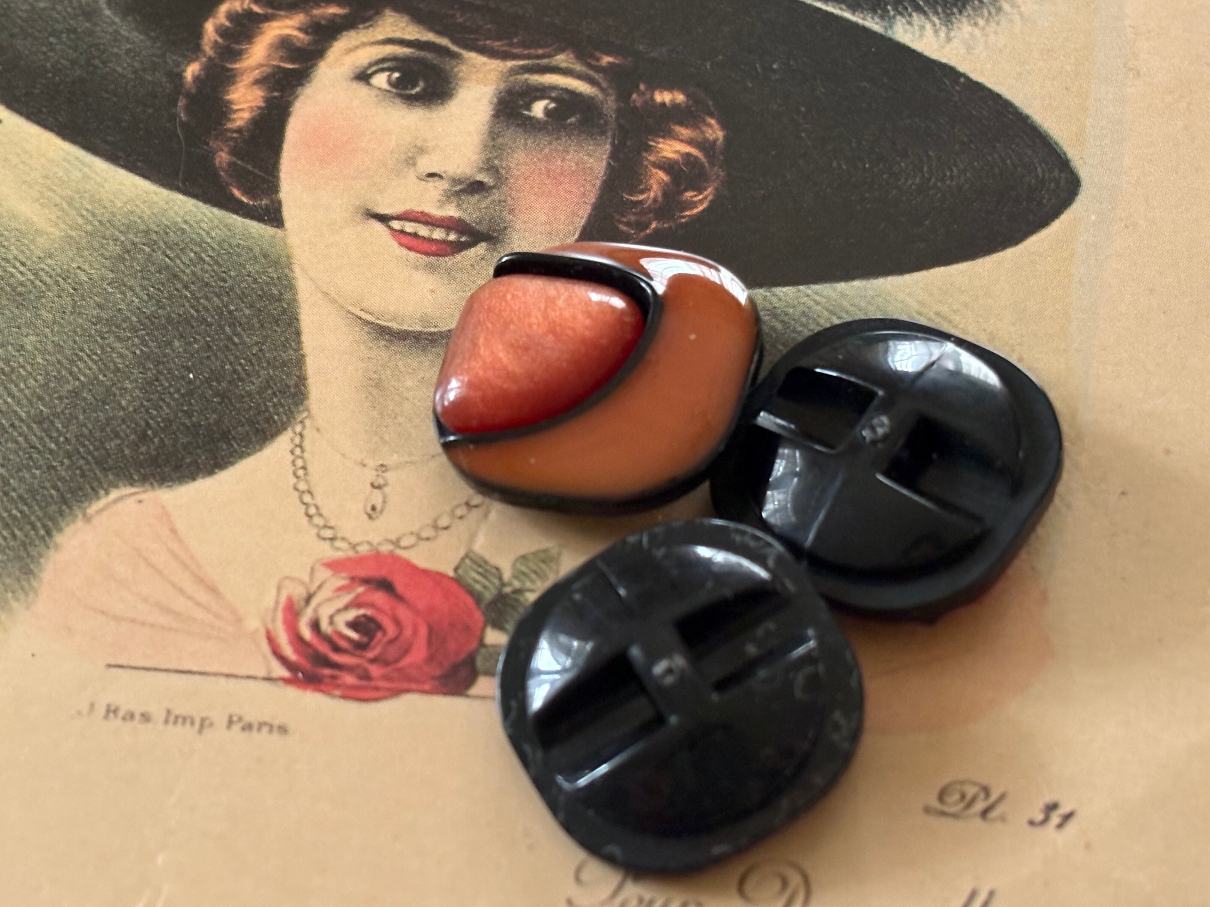Japanese Vintage ボタン 20mm 角なしスクウェア プラスチックボタン カボション 昭和レトロ アクセサリーパーツ 装飾材 カルトナージュ
