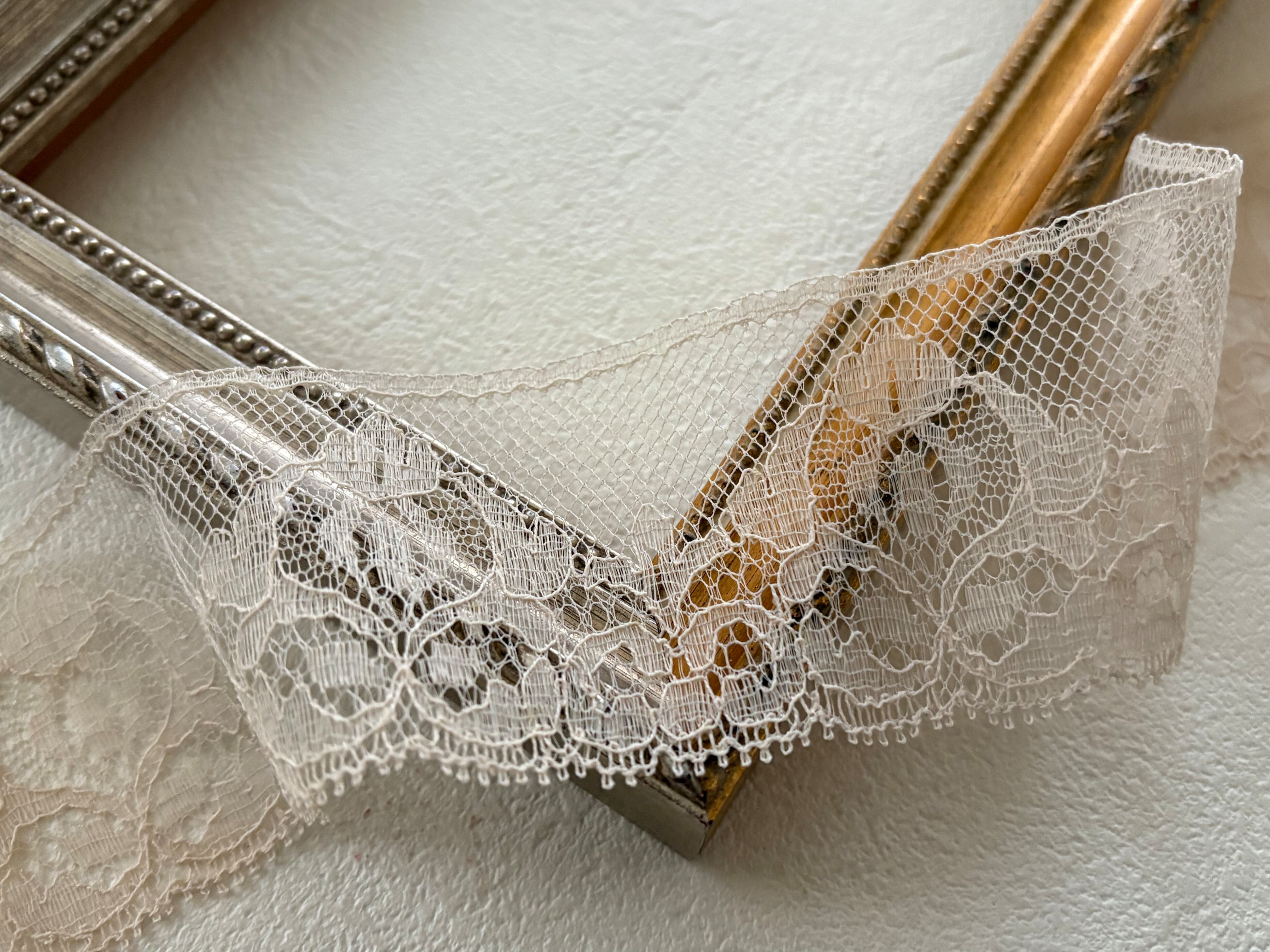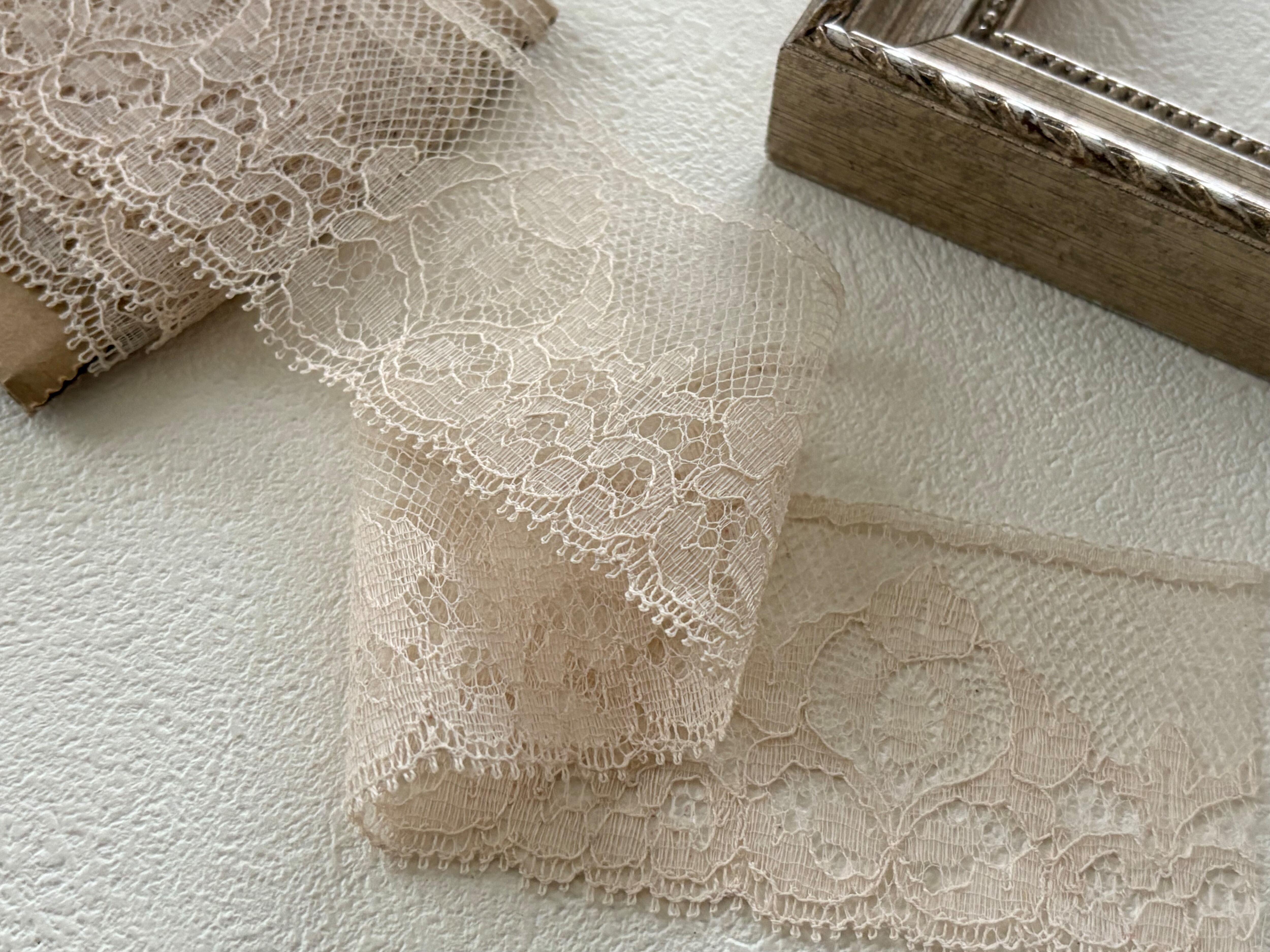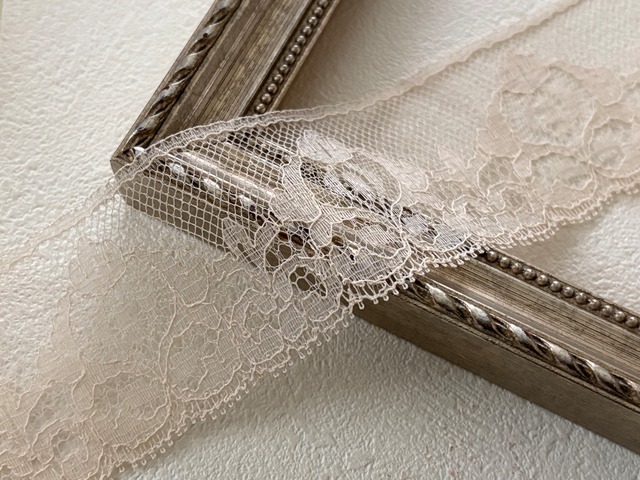 美しく繊細なベージュカラーのヴィンテージレースです。