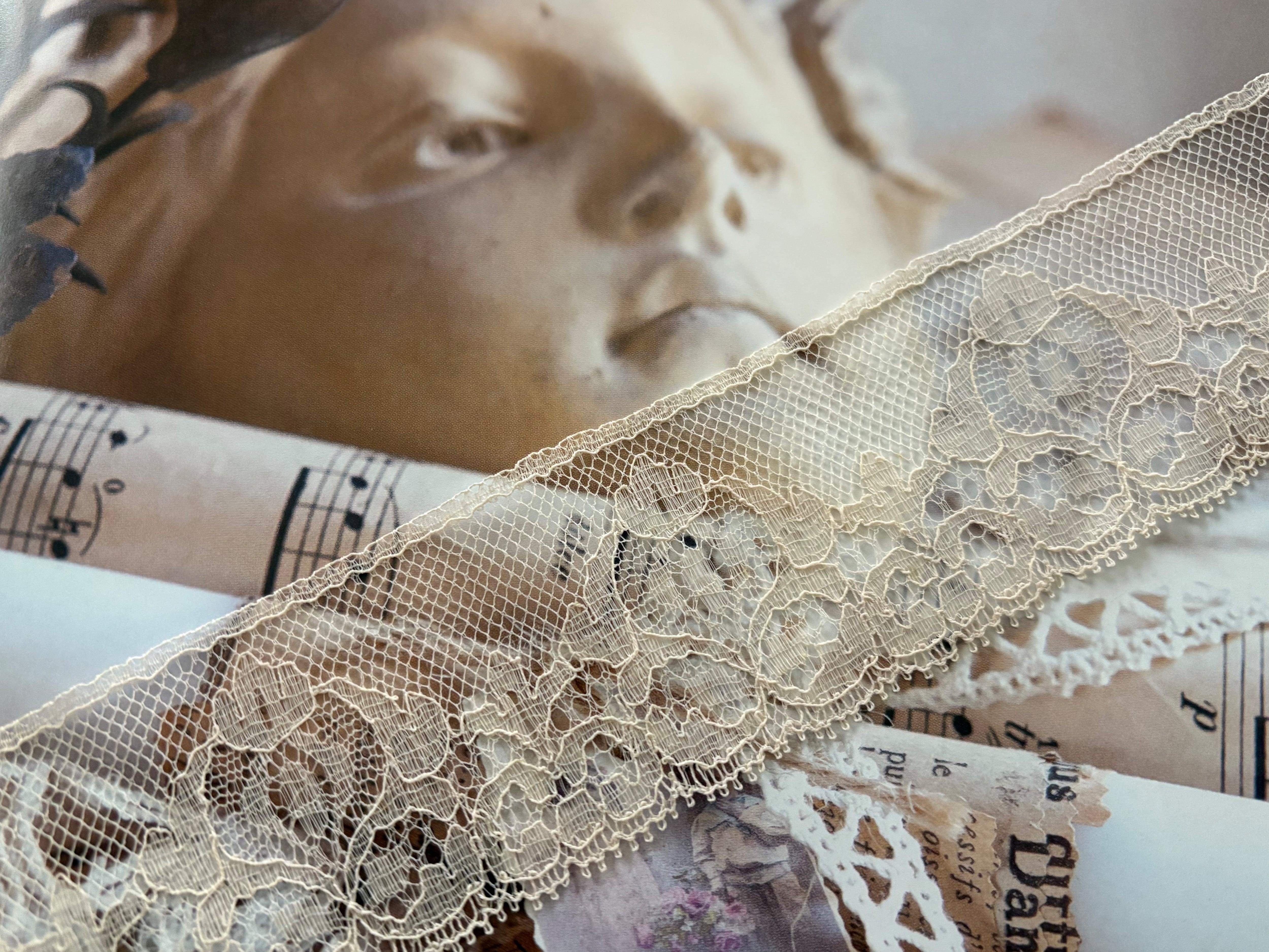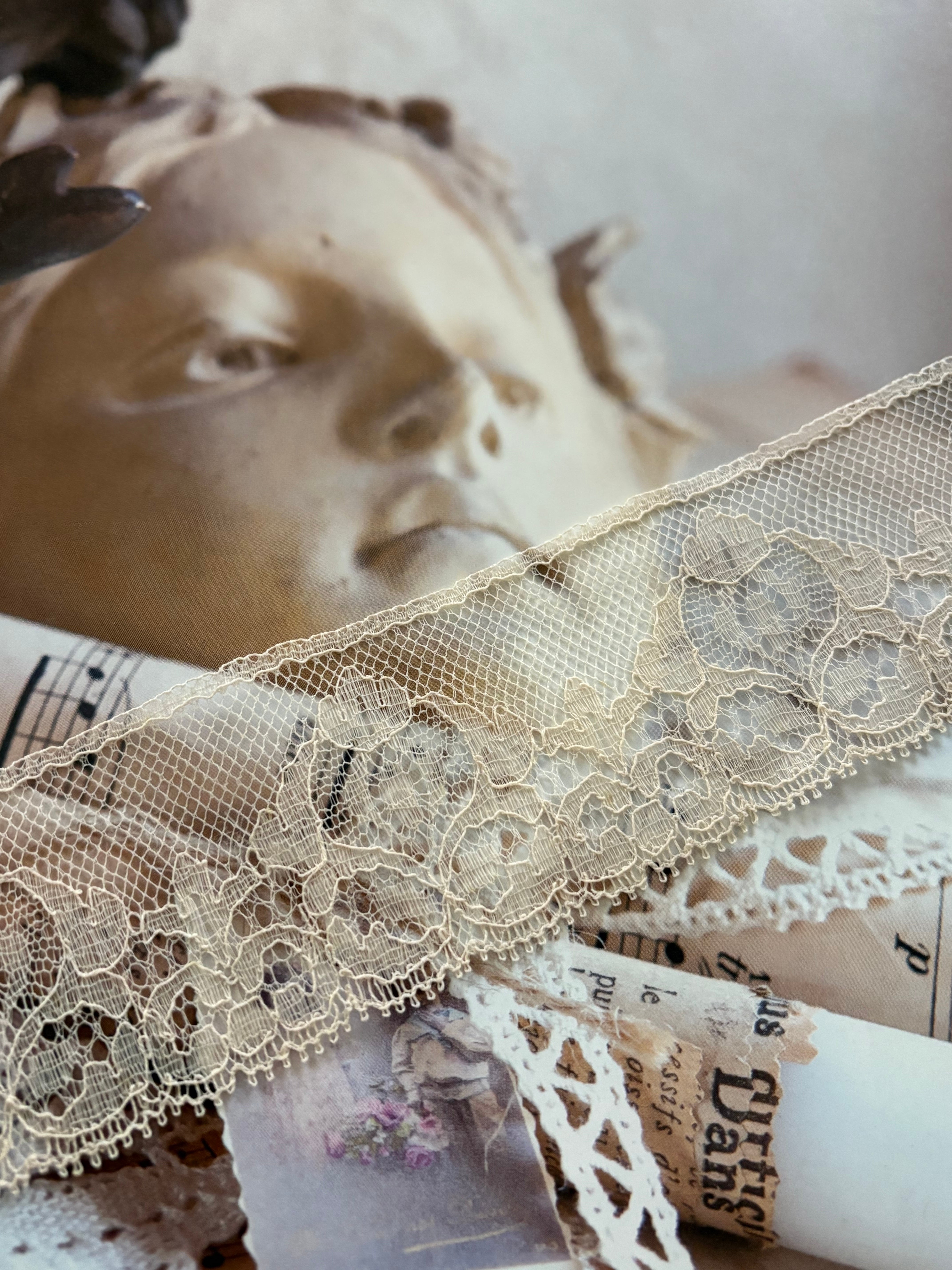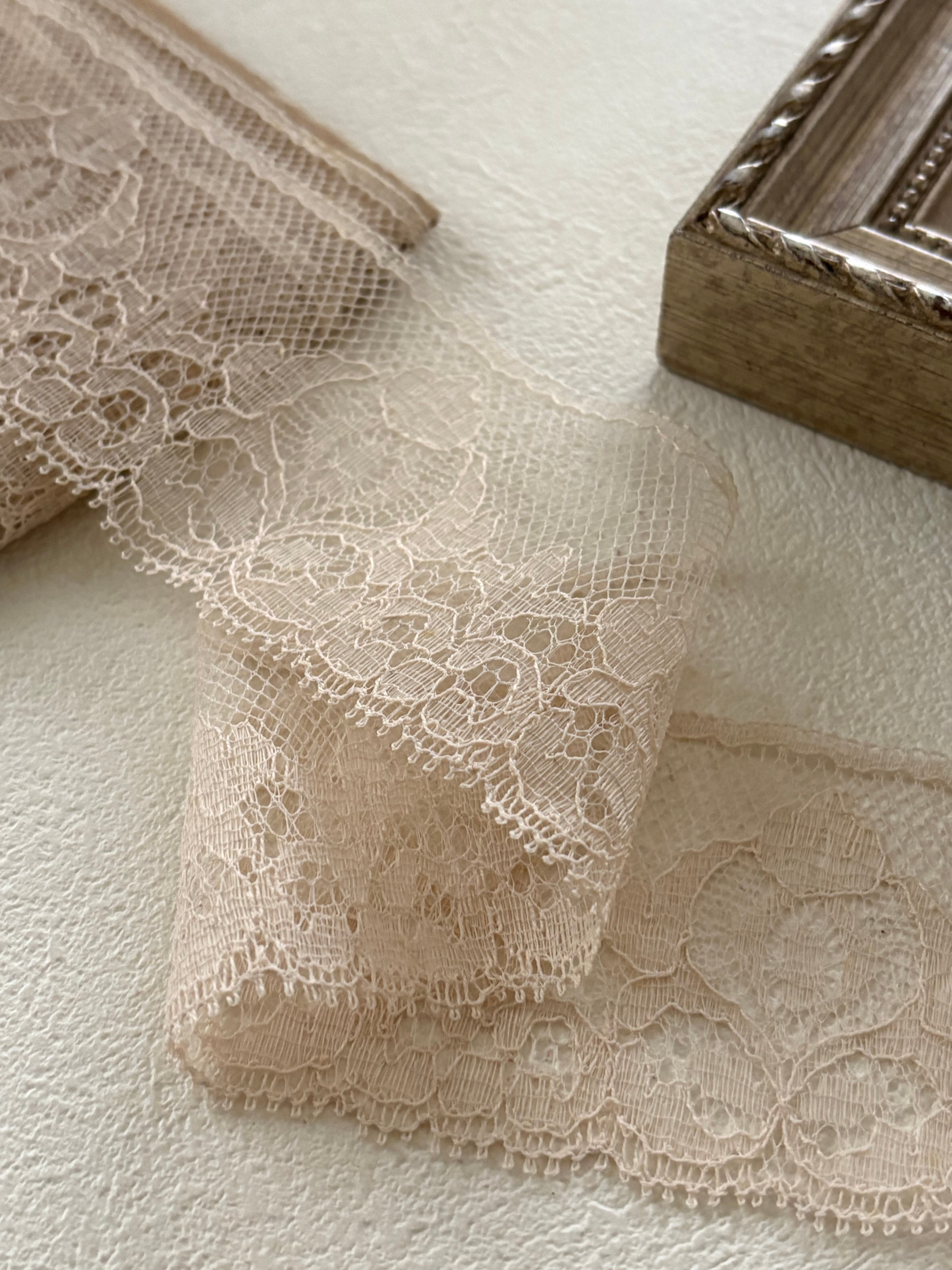 美しく繊細なベージュカラーのヴィンテージレースです。