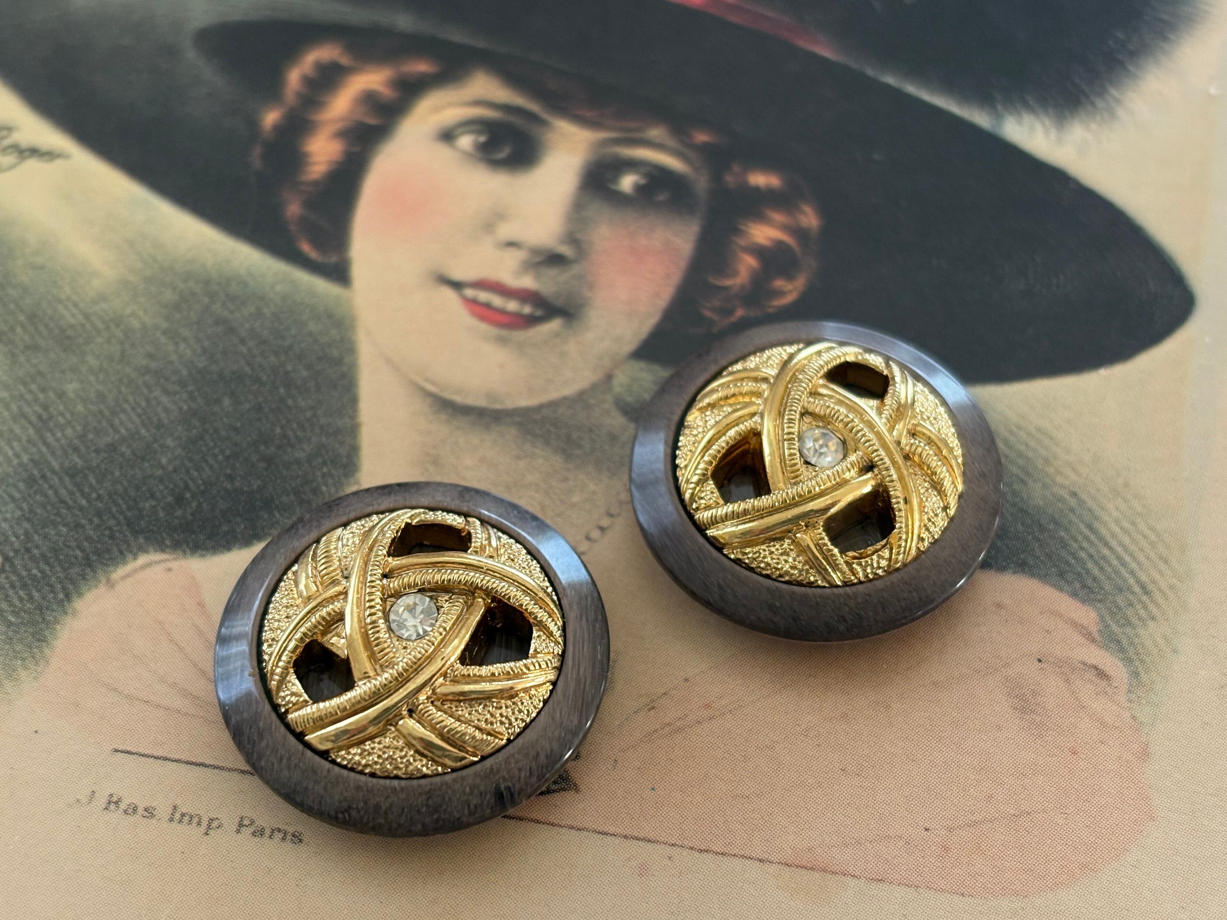 Import Vintageボタン ベージュ×ゴールド 22mm ストーン 樹脂×メタル アクセサリーパーツ デコレーション材