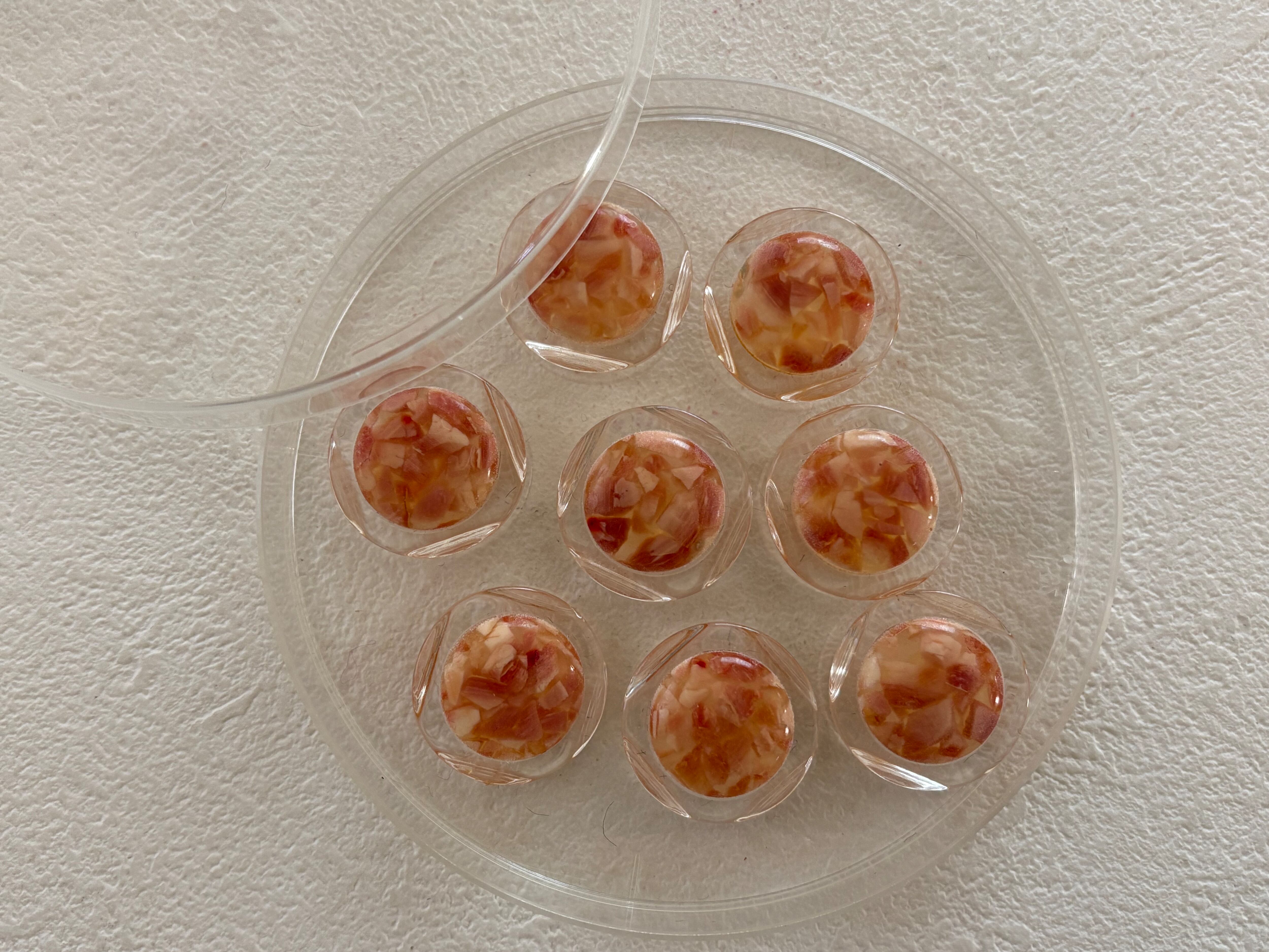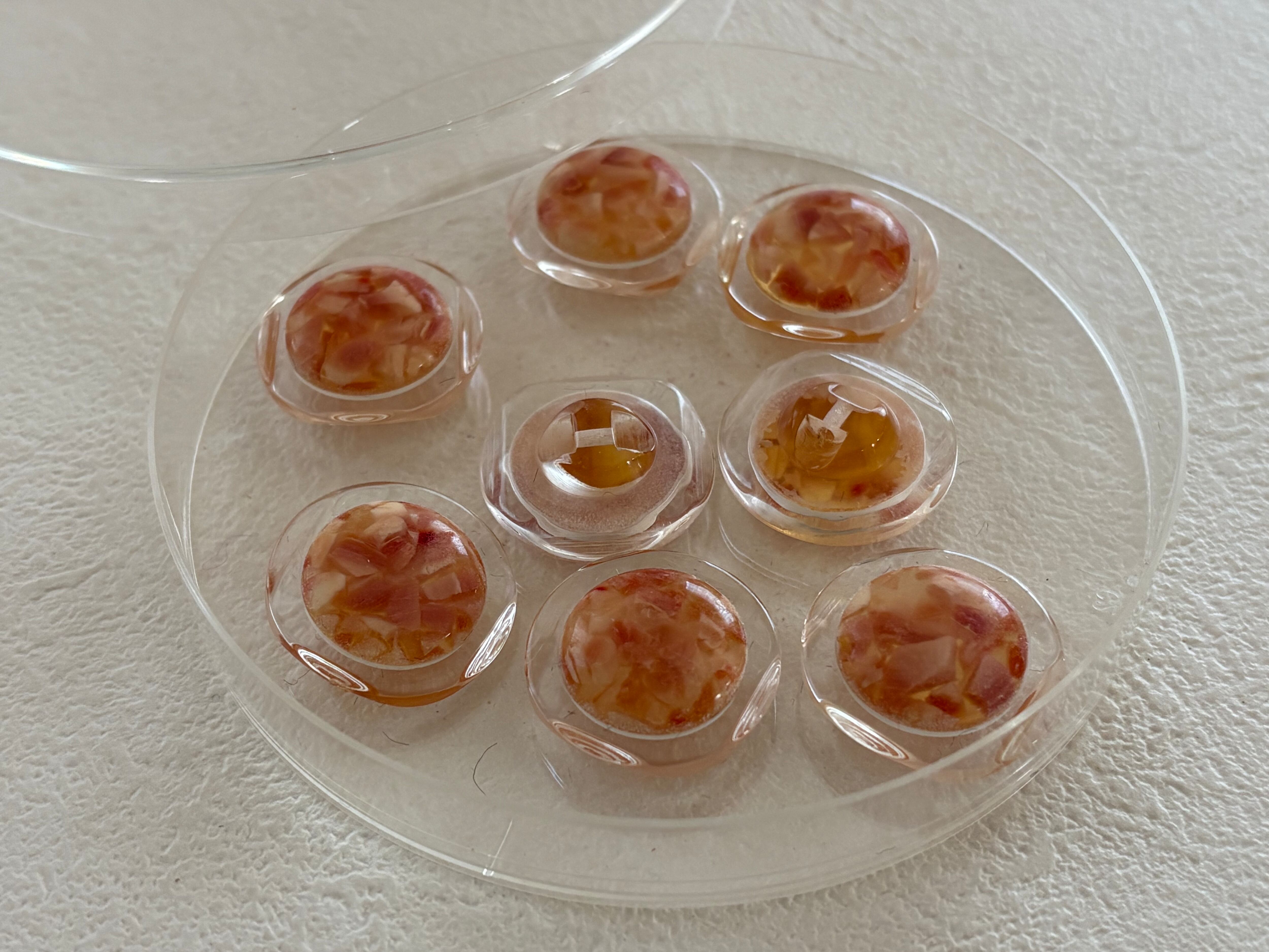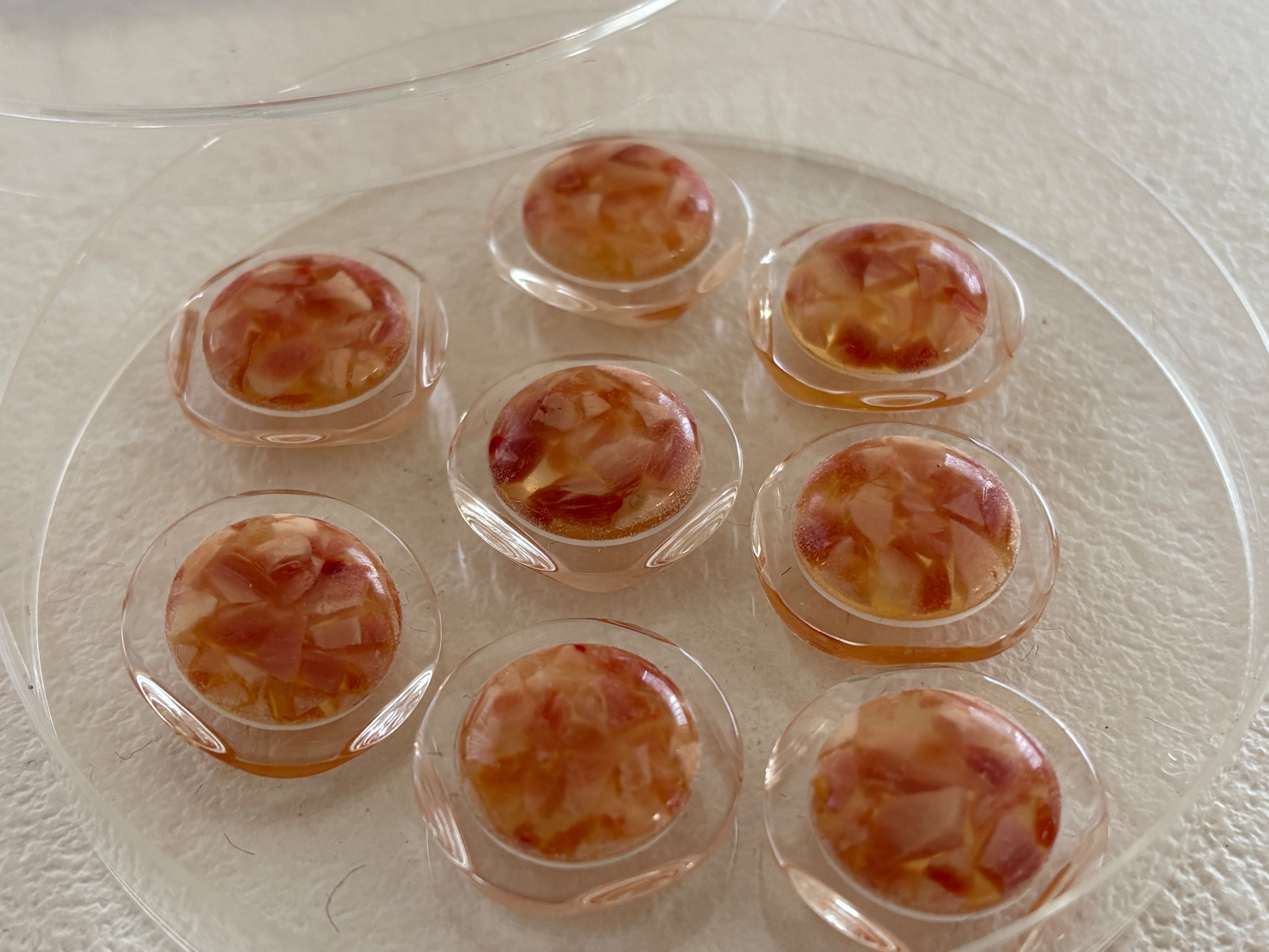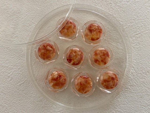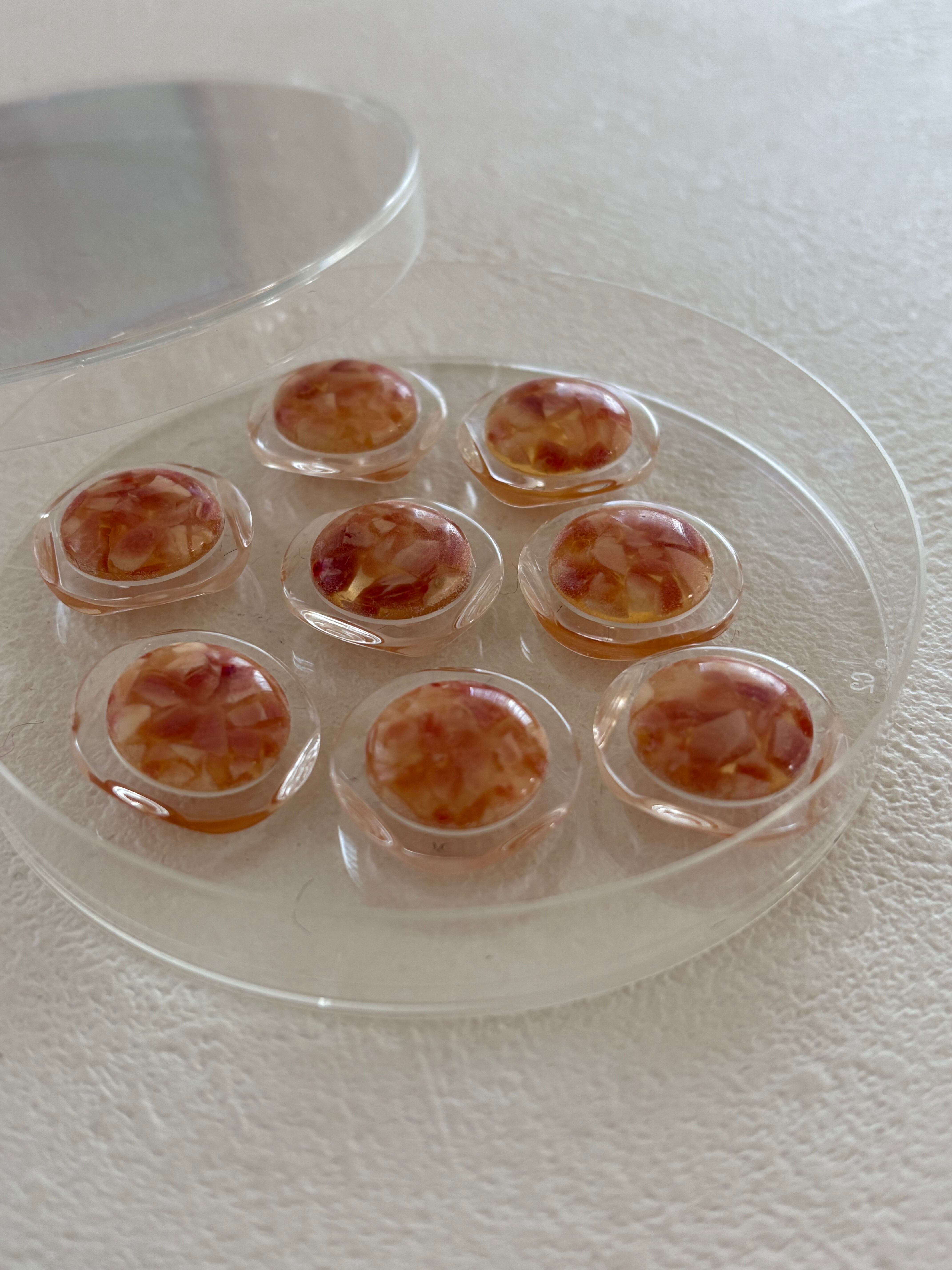 画像のようなクリアカラーにピンクのモザイクのカボション。