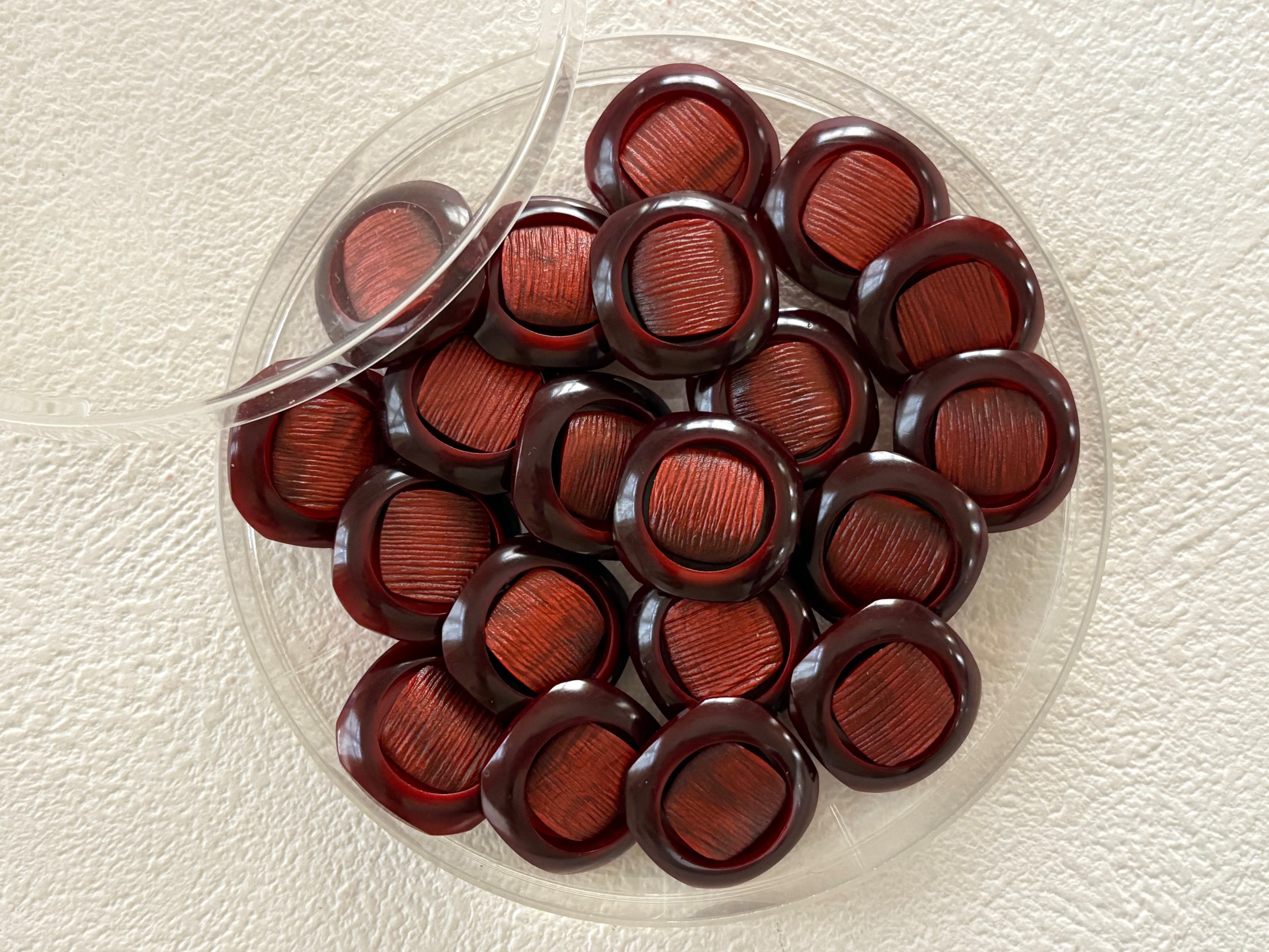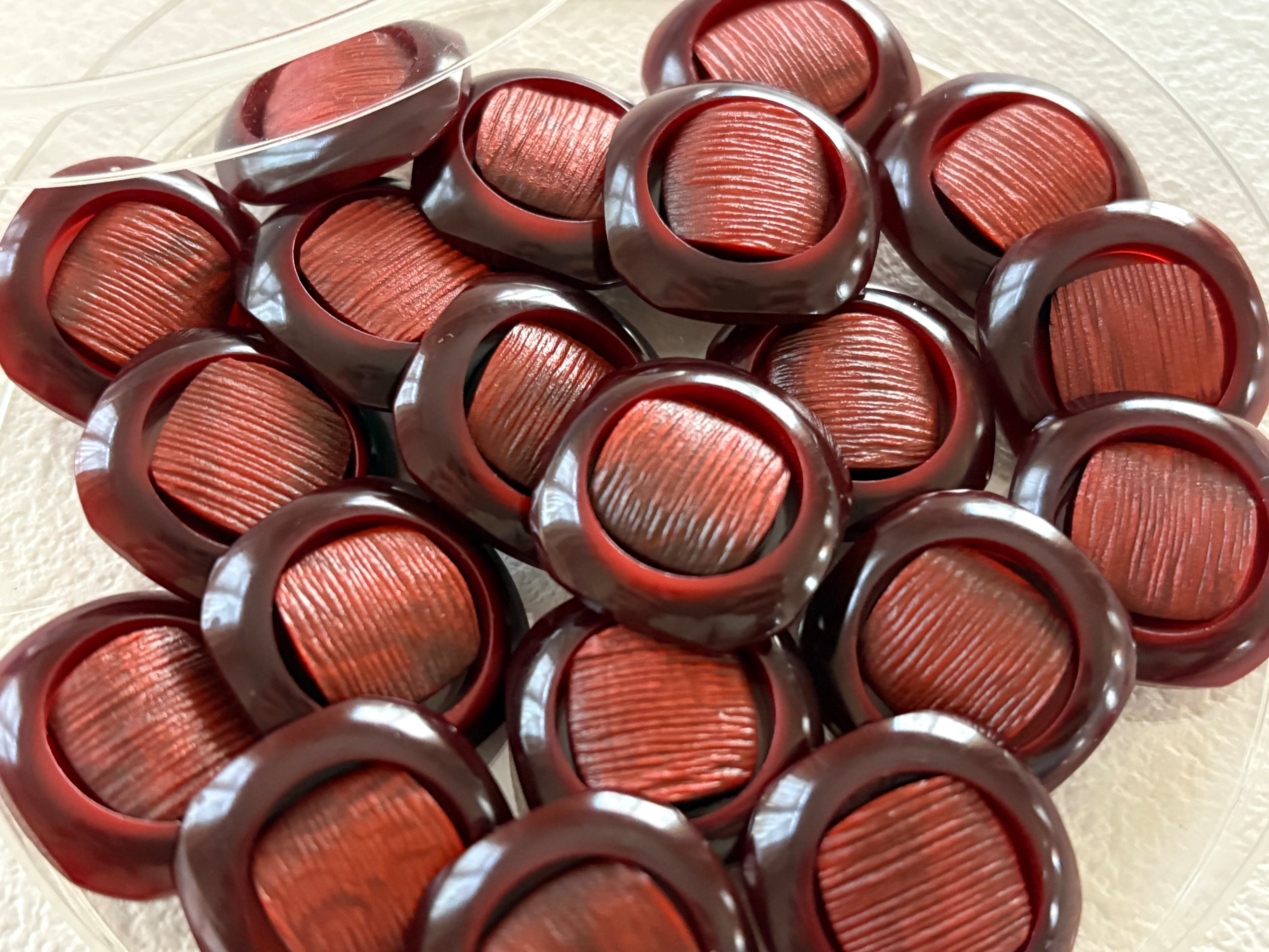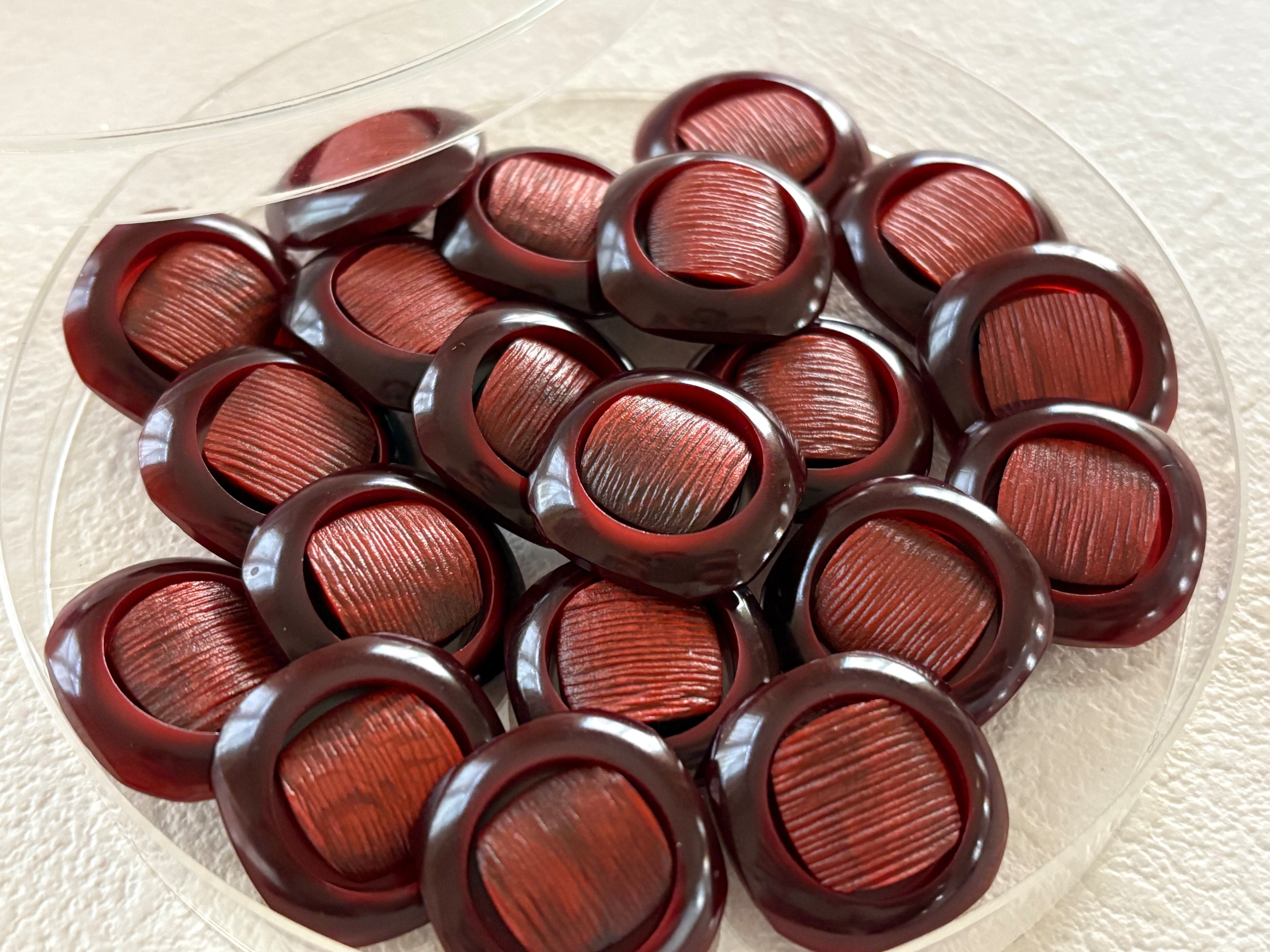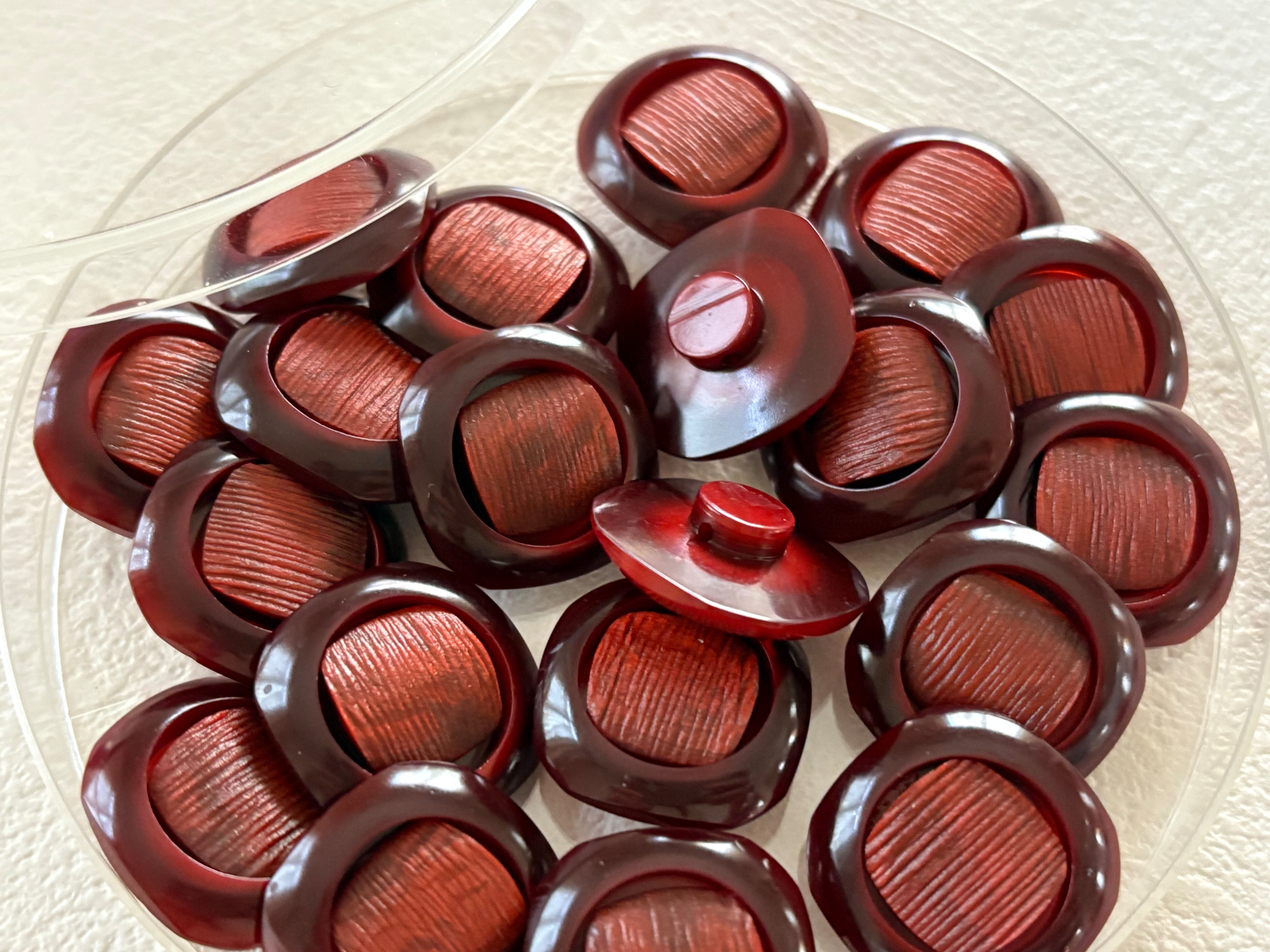 Japanese Vintage ボタン 角なしスクウェア レッド系 18mm 昭和レトロ アクセサリーパーツ 装飾材 カルトナージュ