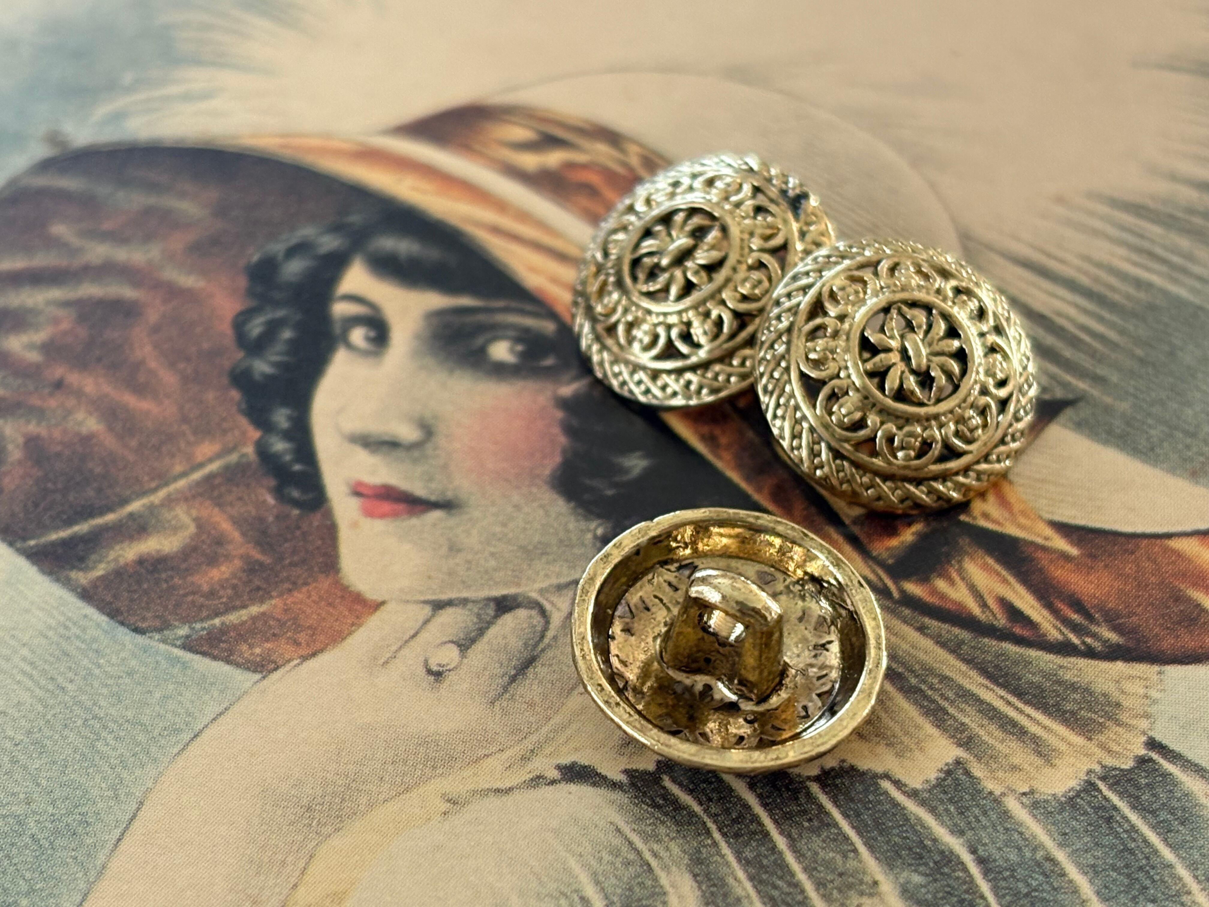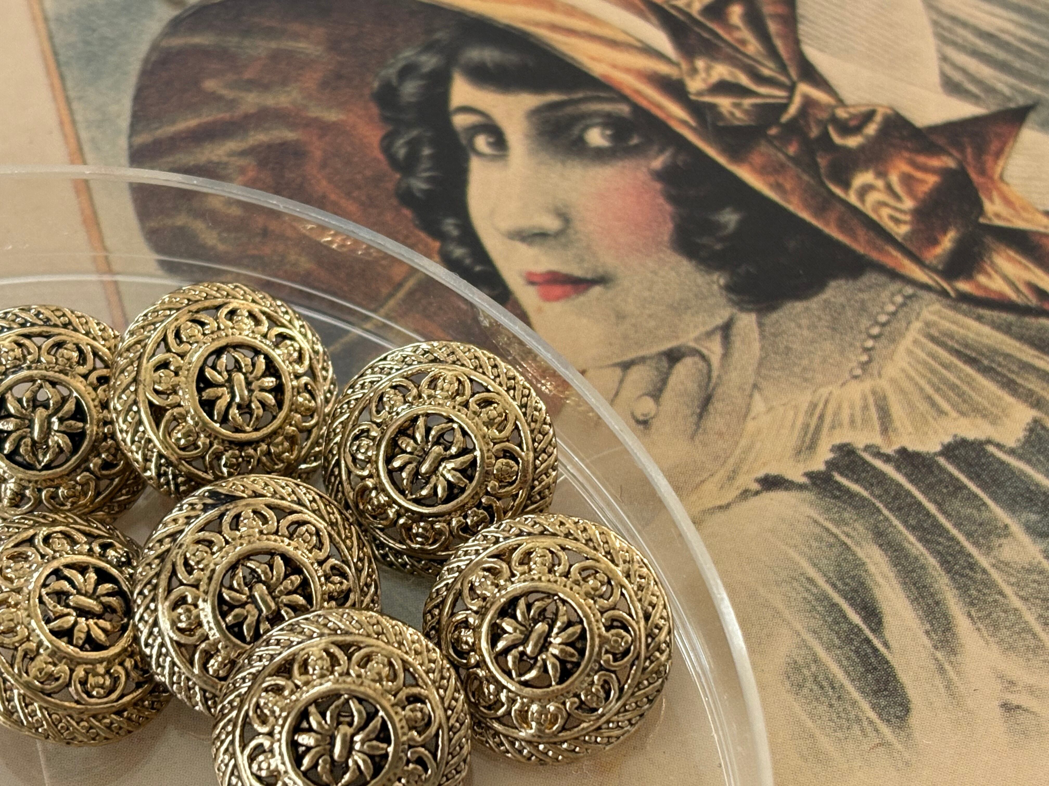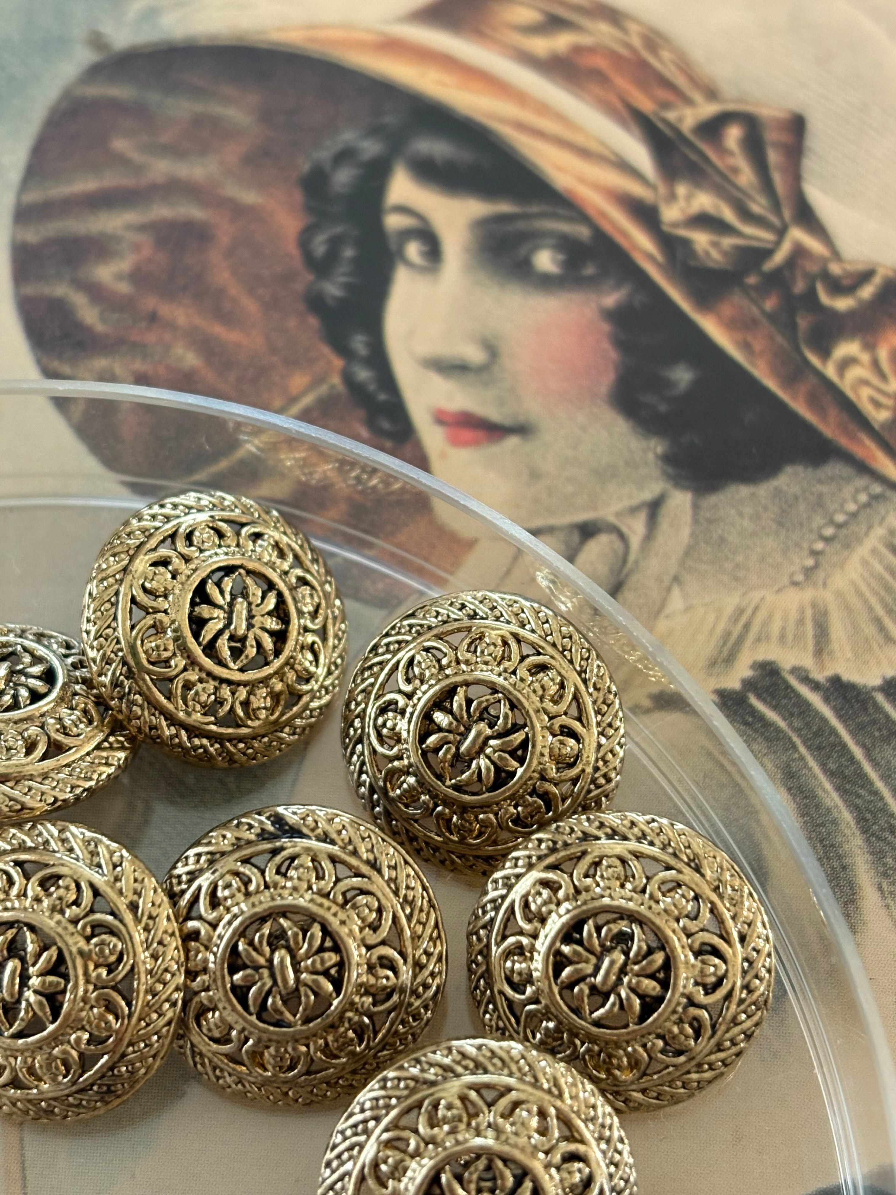Japanese Vintage ボタン ヴィンテージボタン メタル 透かし ゴールド 14mm アクセサリーパーツ デコレーション材
