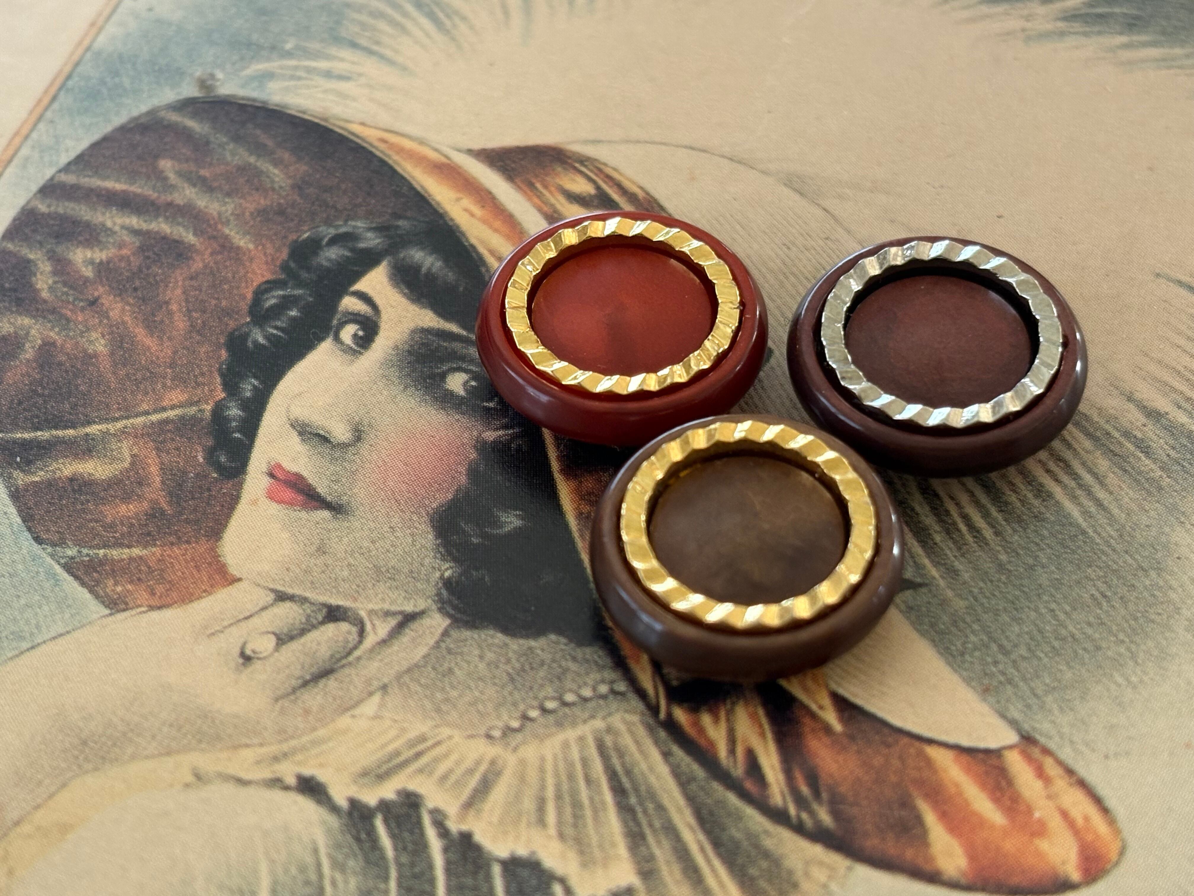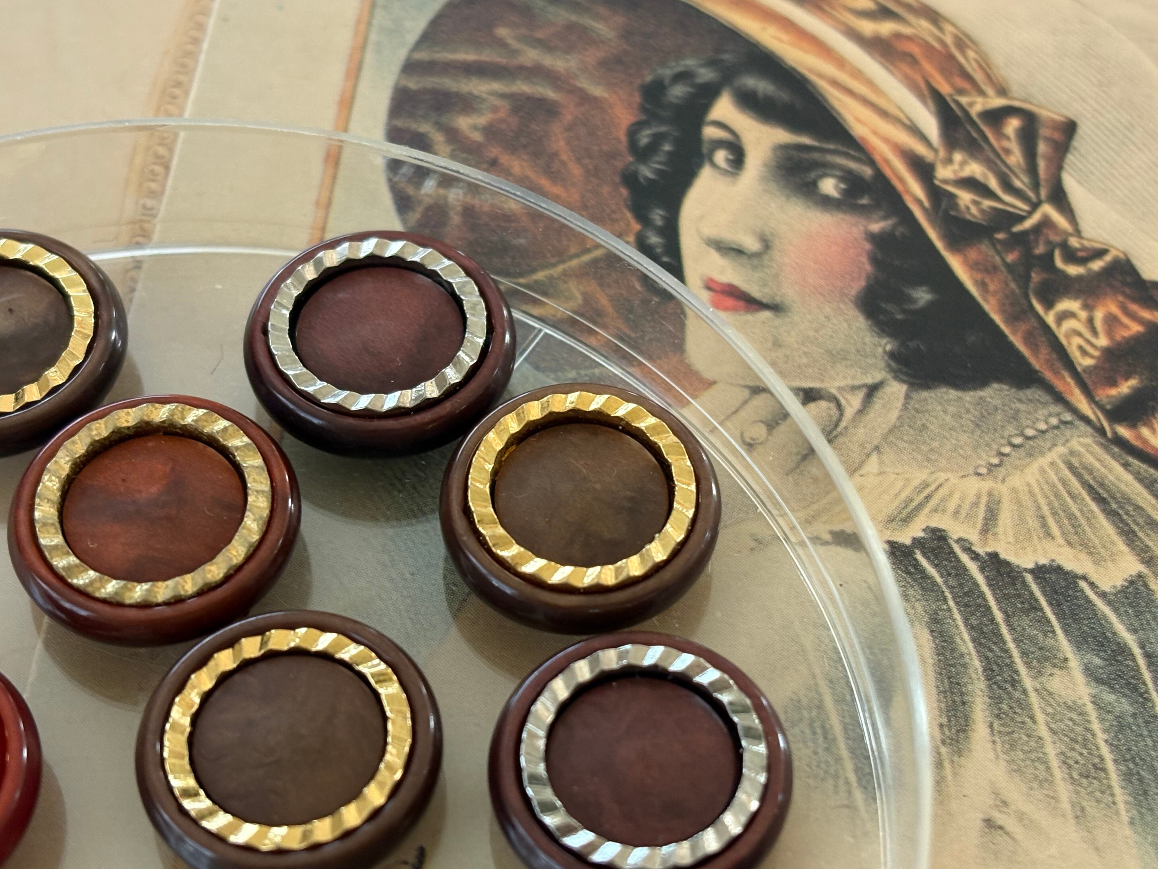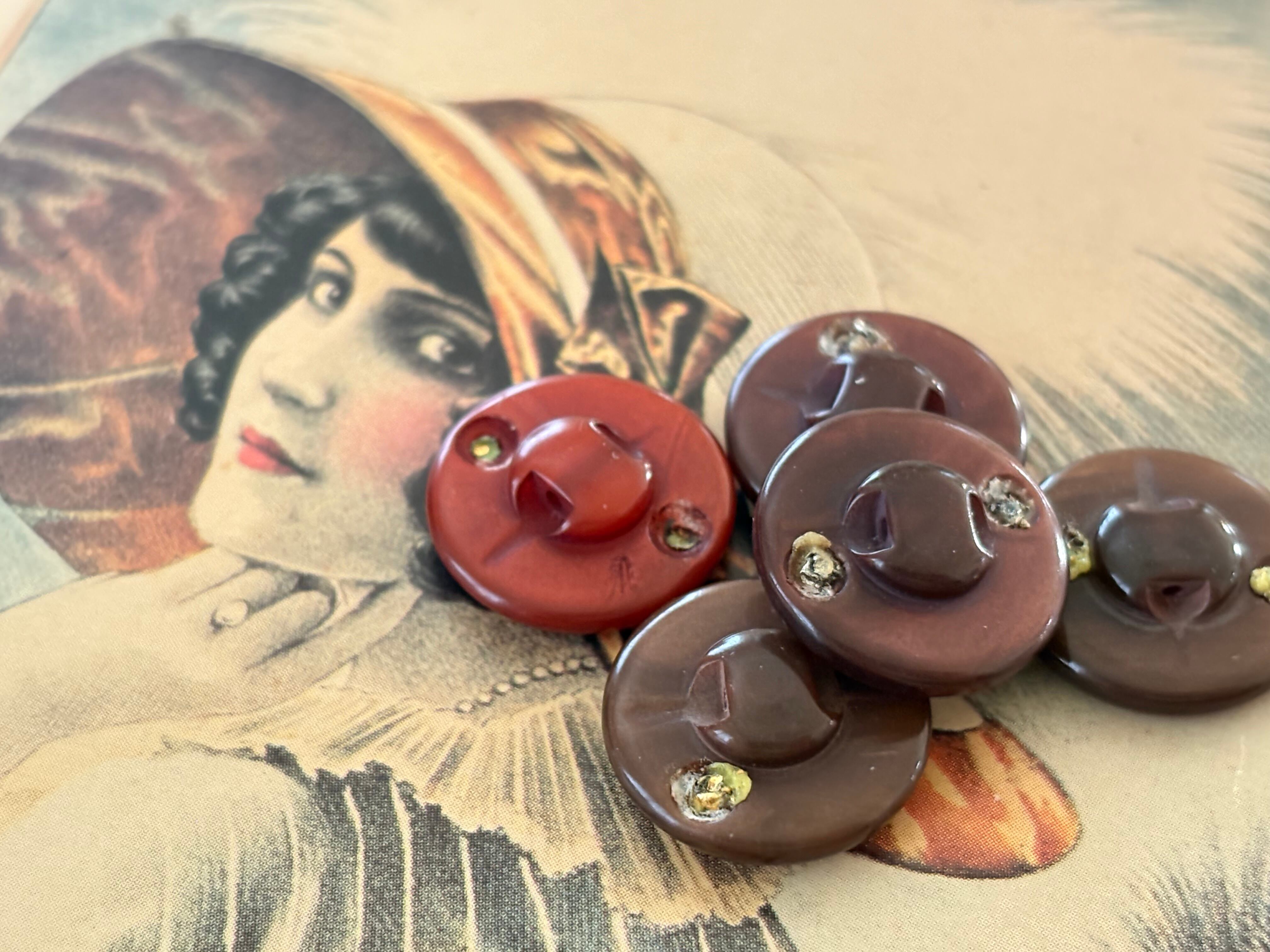 Japanese Vintage ボタン 17mm マーブル調 レッド/ブラウン 昭和レトロ アクセサリーパーツ 装飾材 カルトナージュ