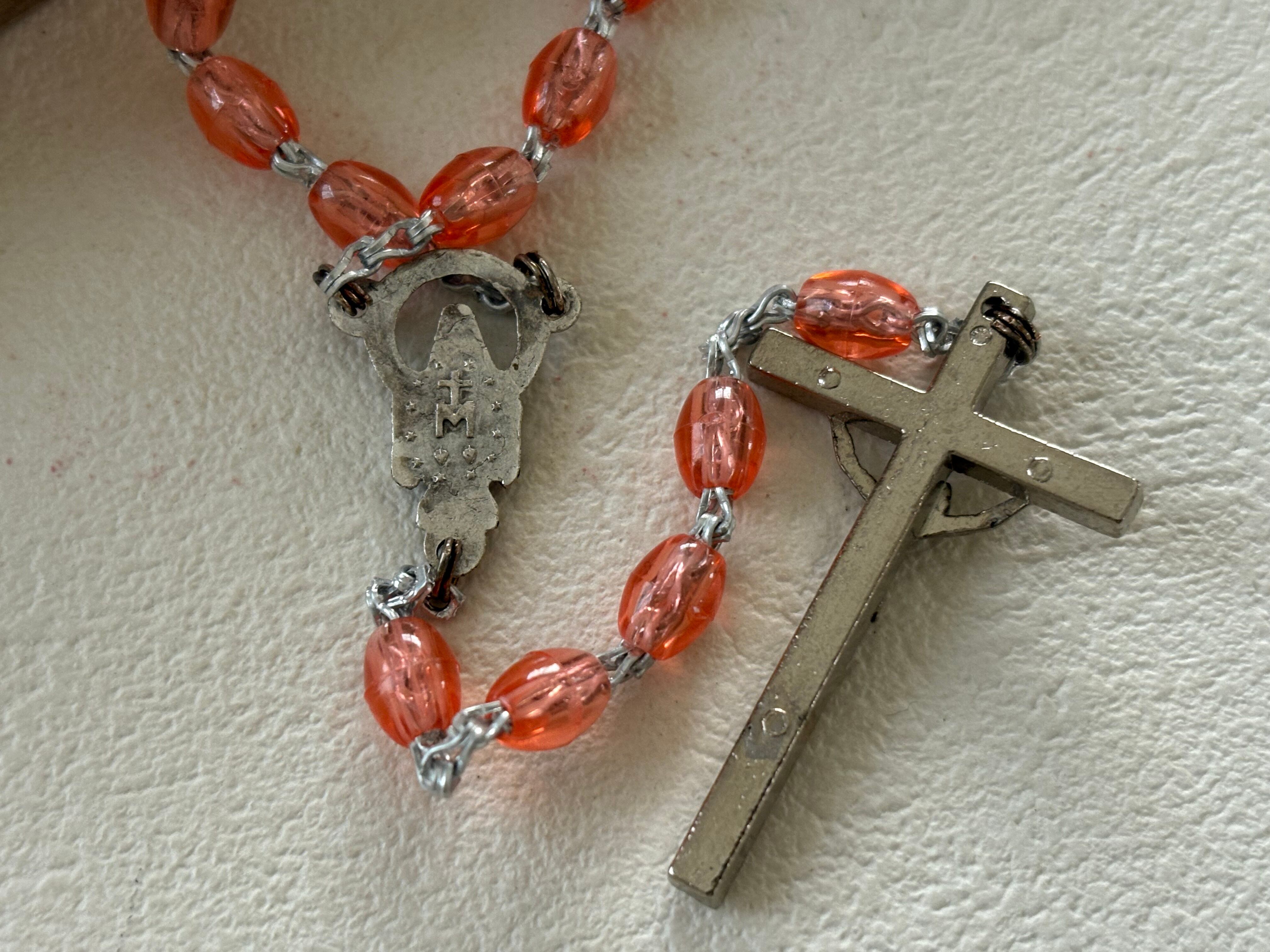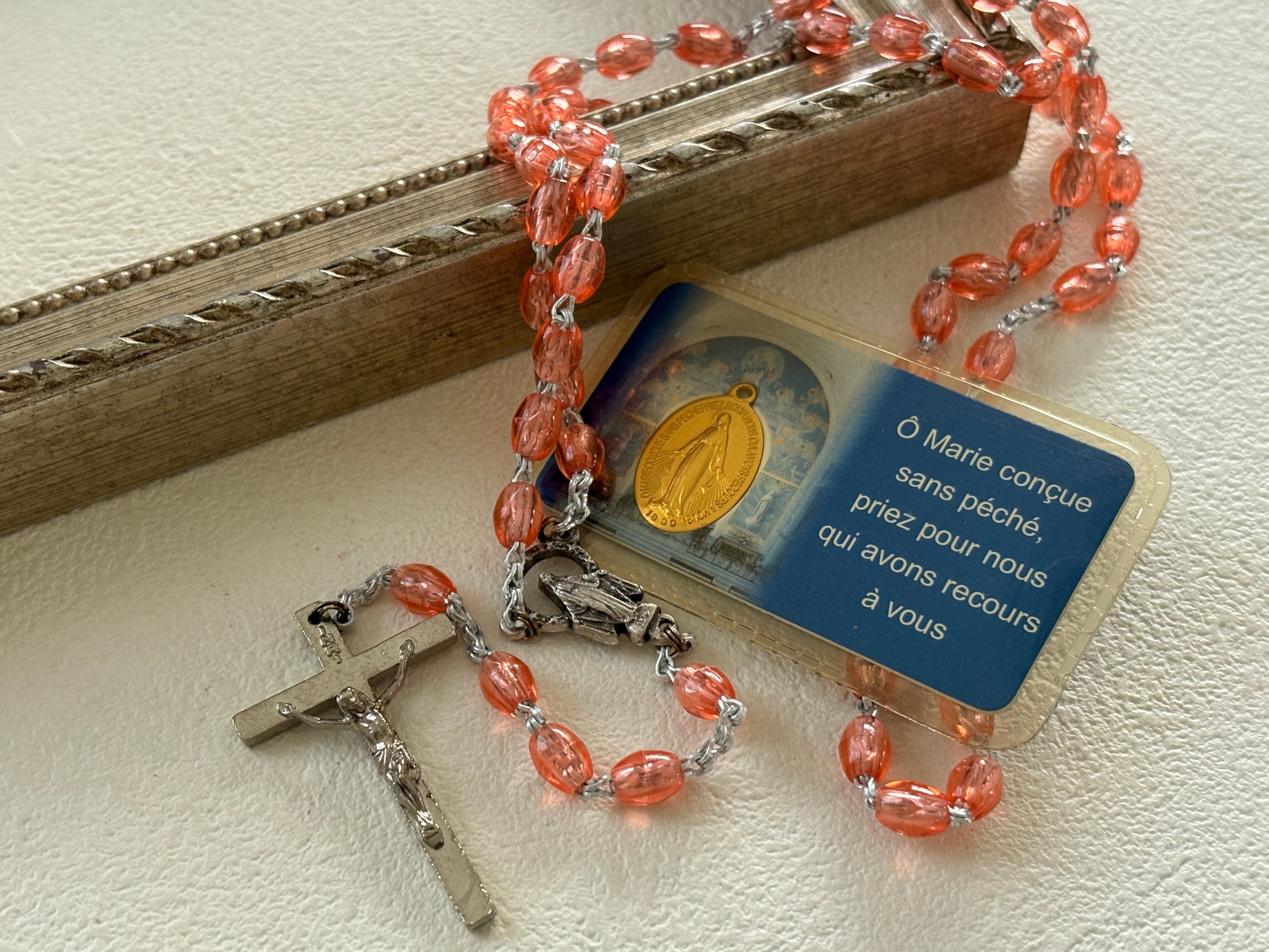フランス 奇跡のメダイ教会 奇跡のメダイユ ピンクビーズのロザリオとメダイユ 2点セット プラスチックビーズ 不思議のメダイ 聖品 クリスマス Noel