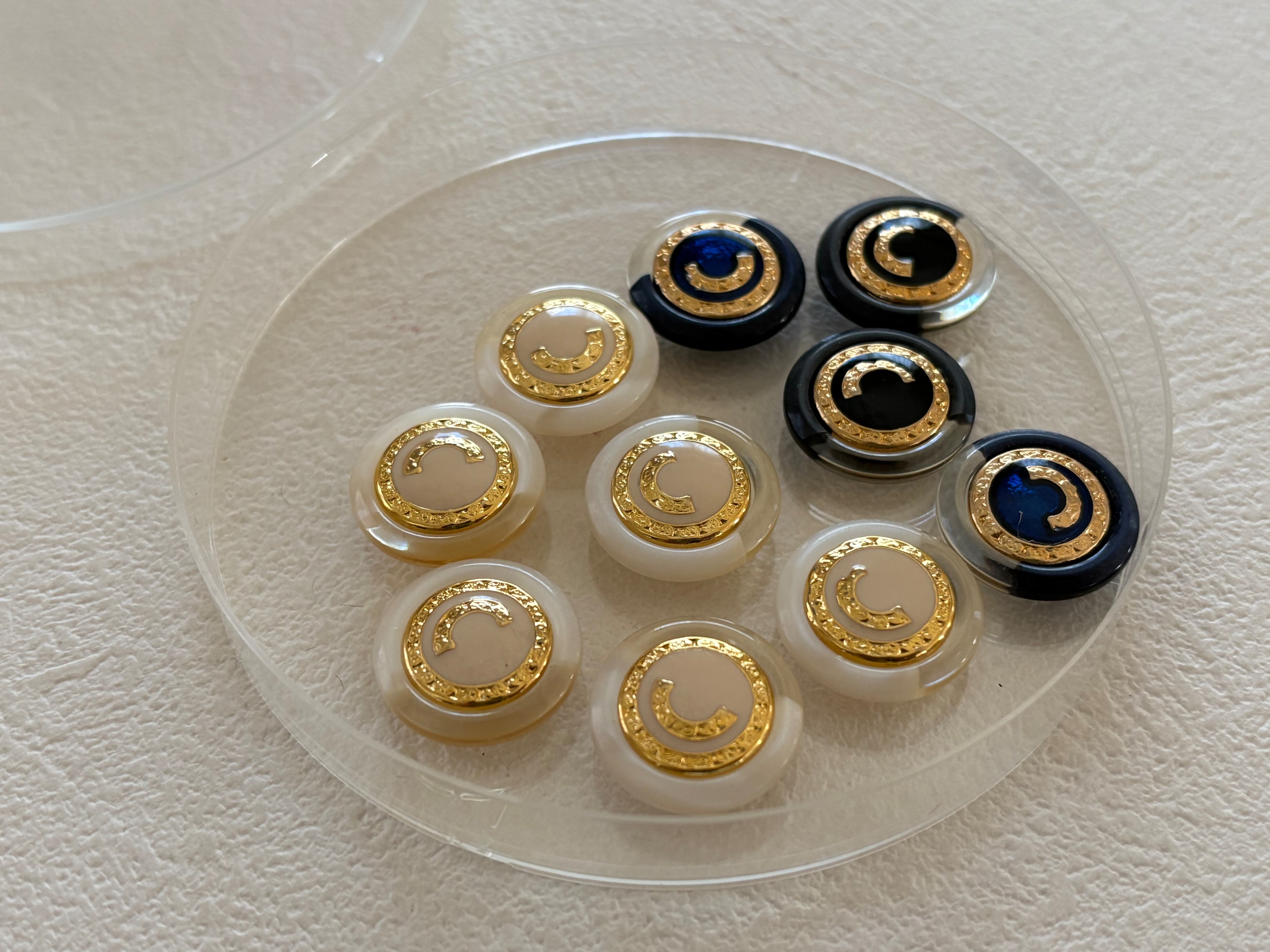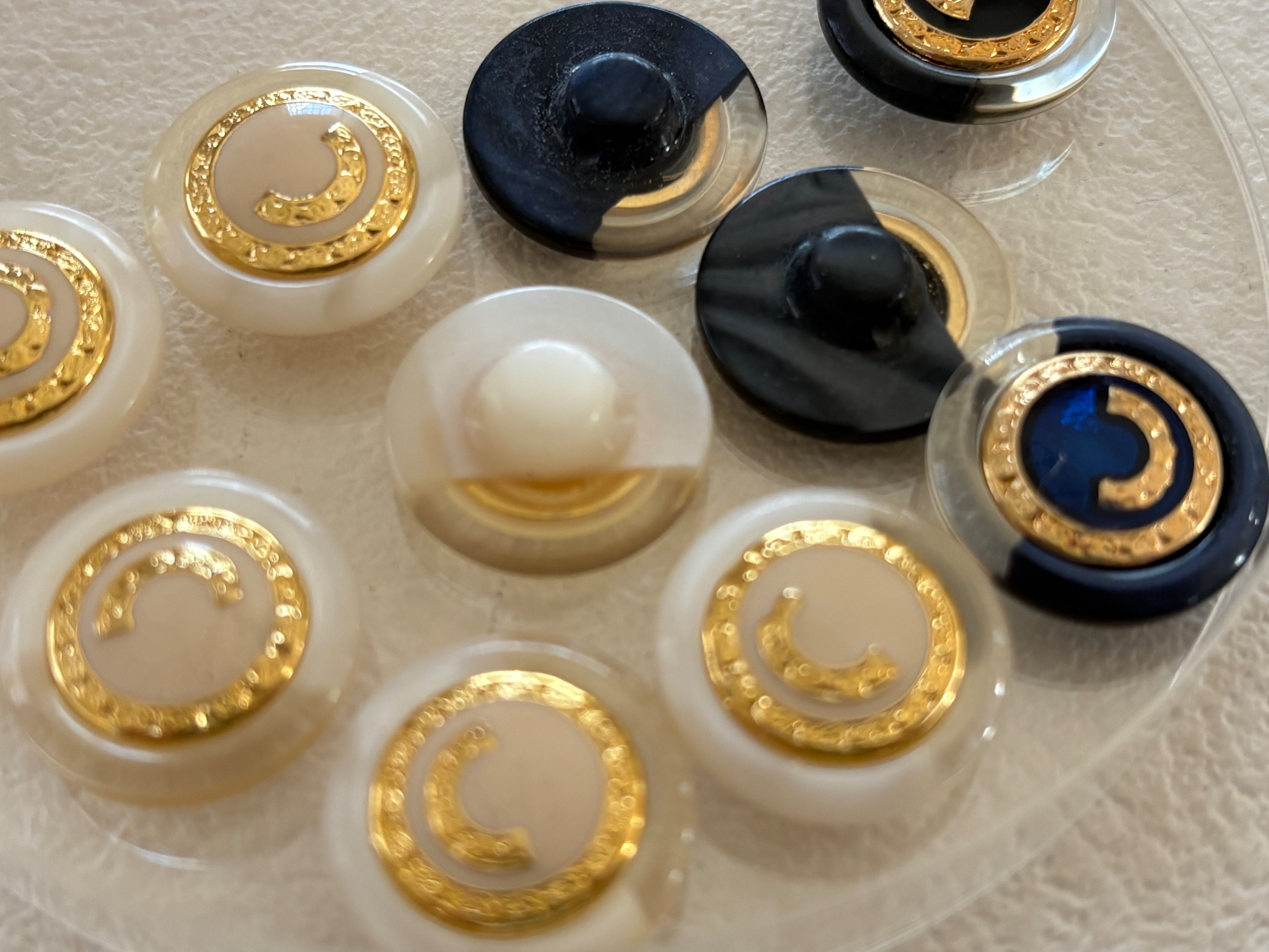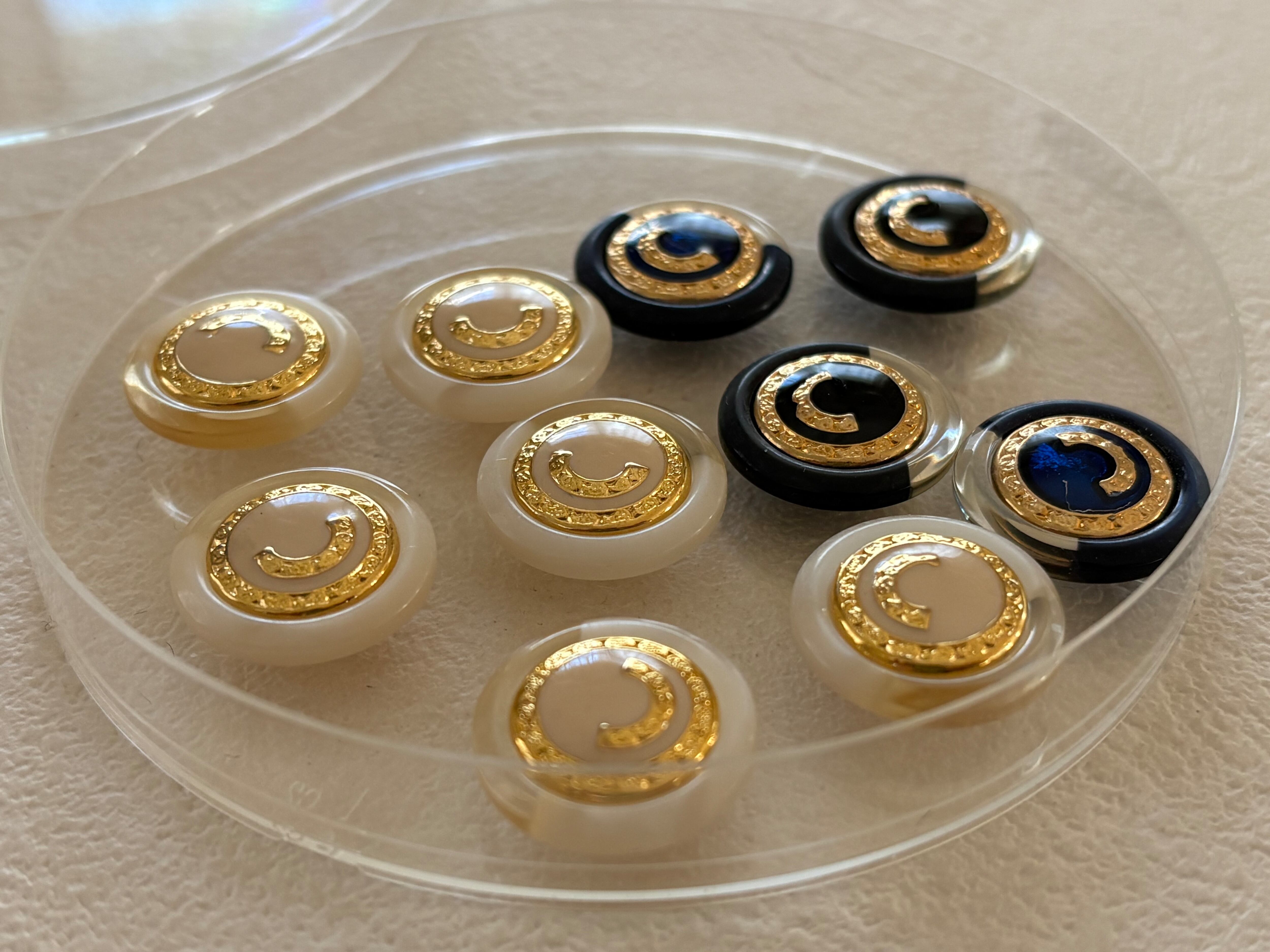 イタリアVintageボタン 17mm エレガント アイボリー/ネイビー/ブラック アクセサリーパーツ デコレーション材 カルトナージュ