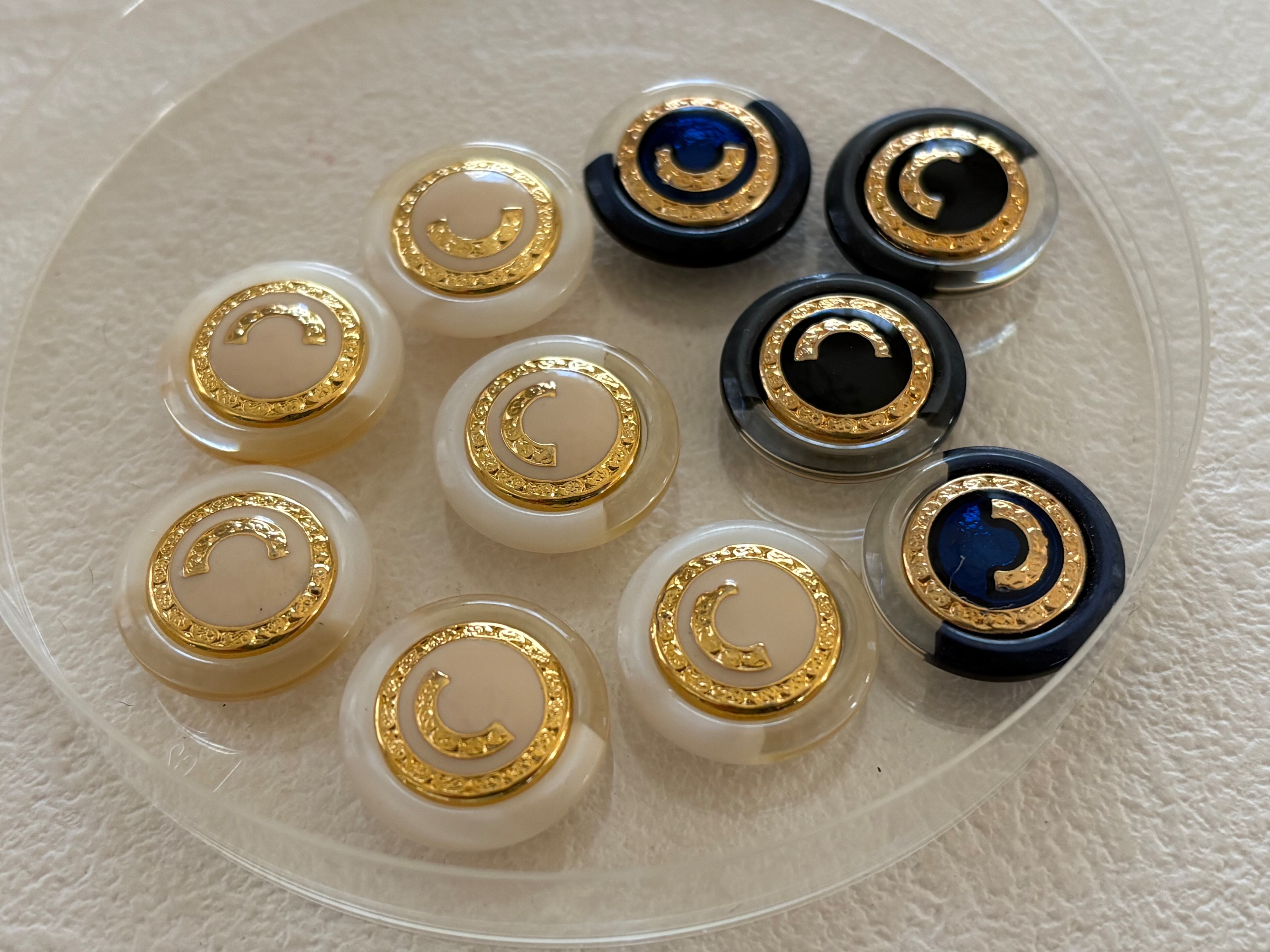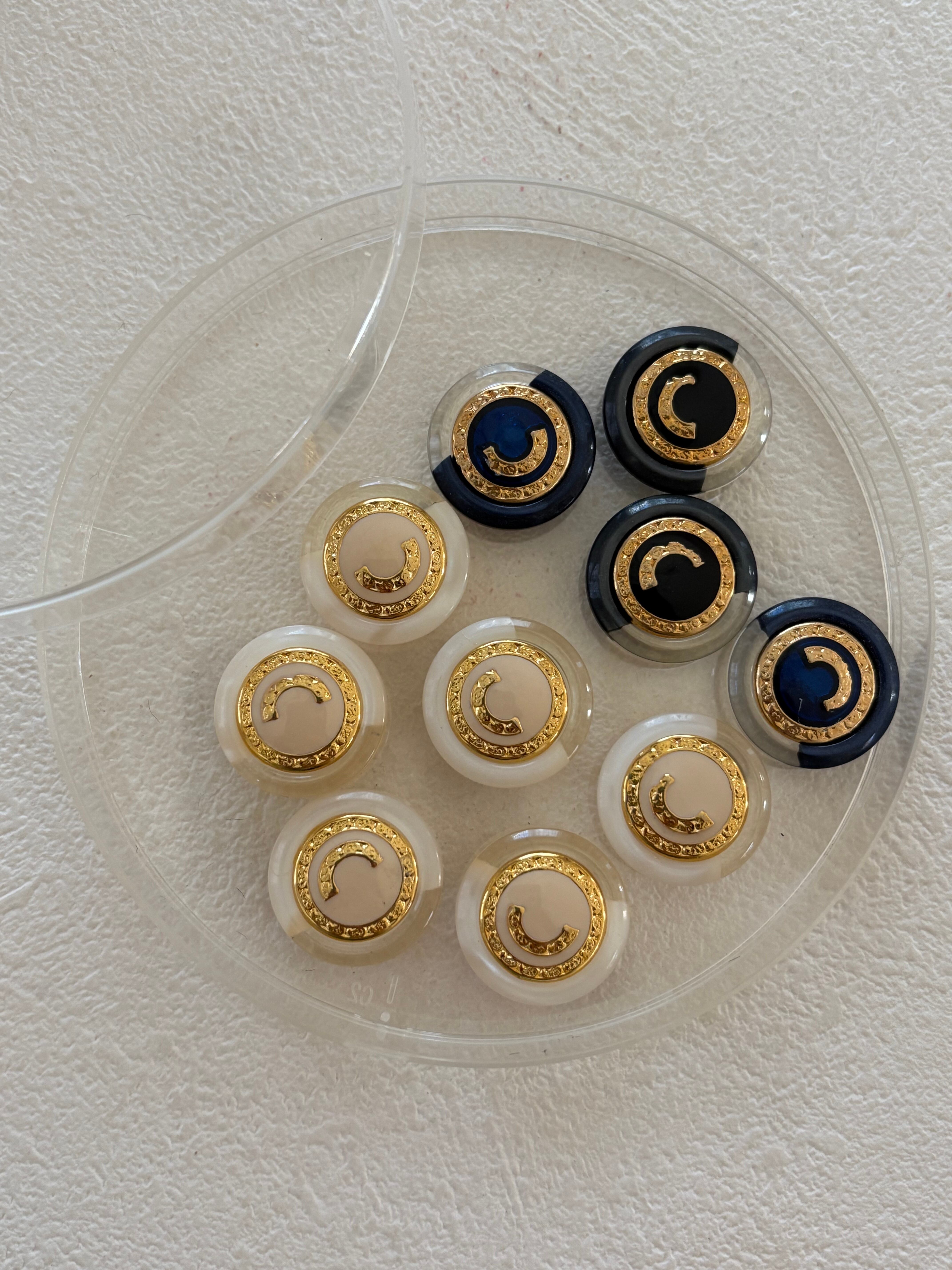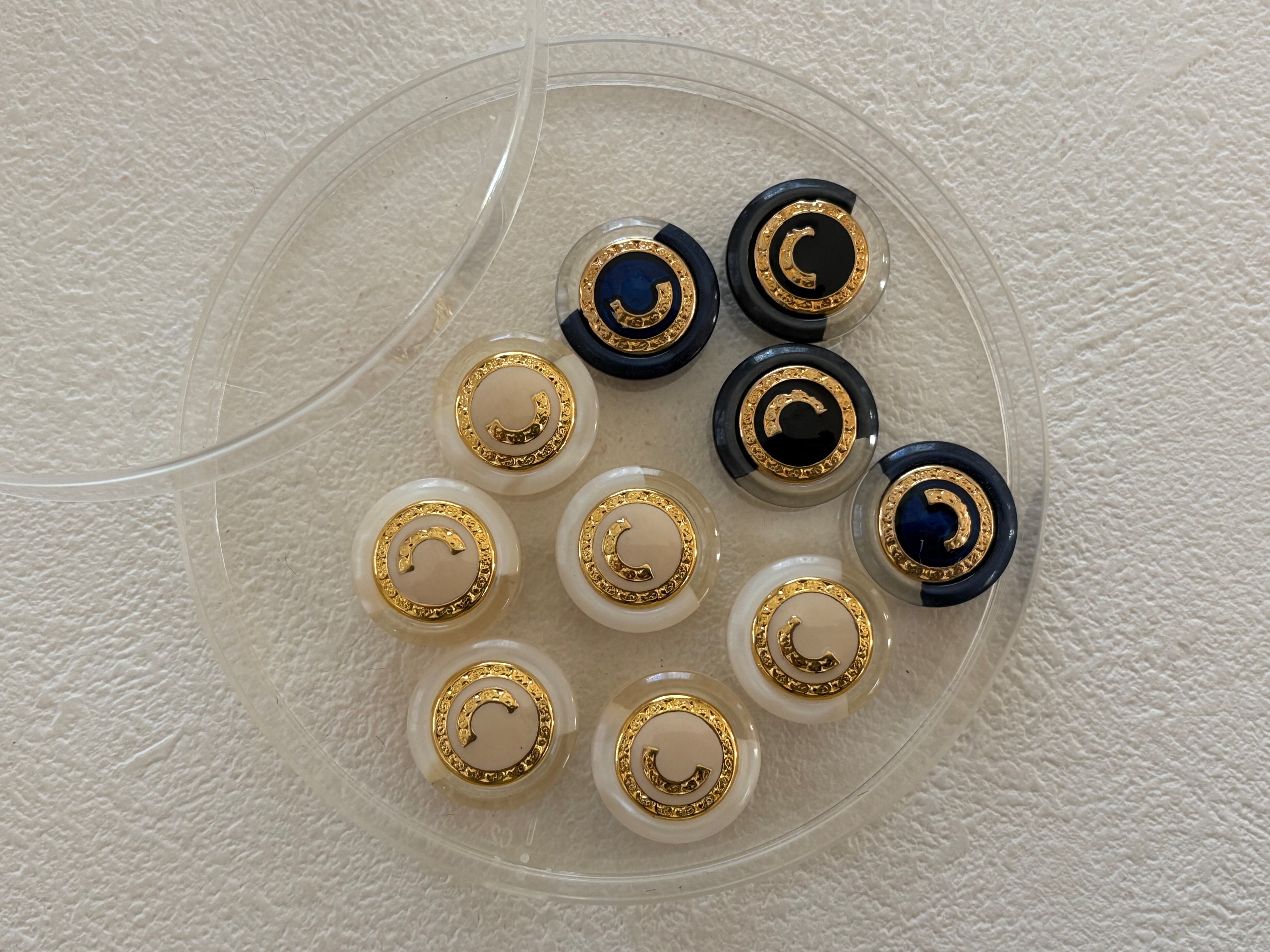 イタリアVintageボタン 17mm エレガント アイボリー/ネイビー/ブラック アクセサリーパーツ デコレーション材 カルトナージュ