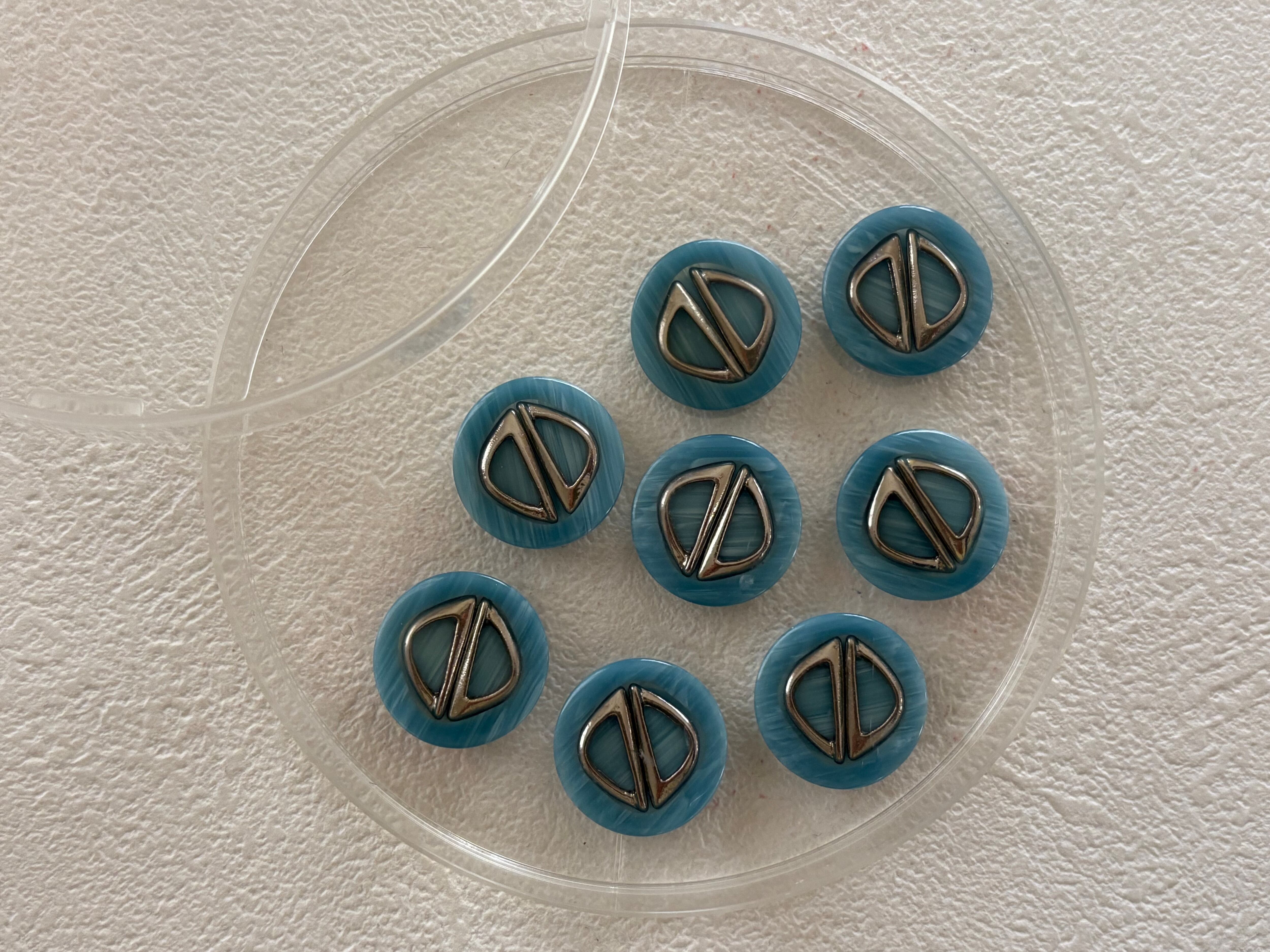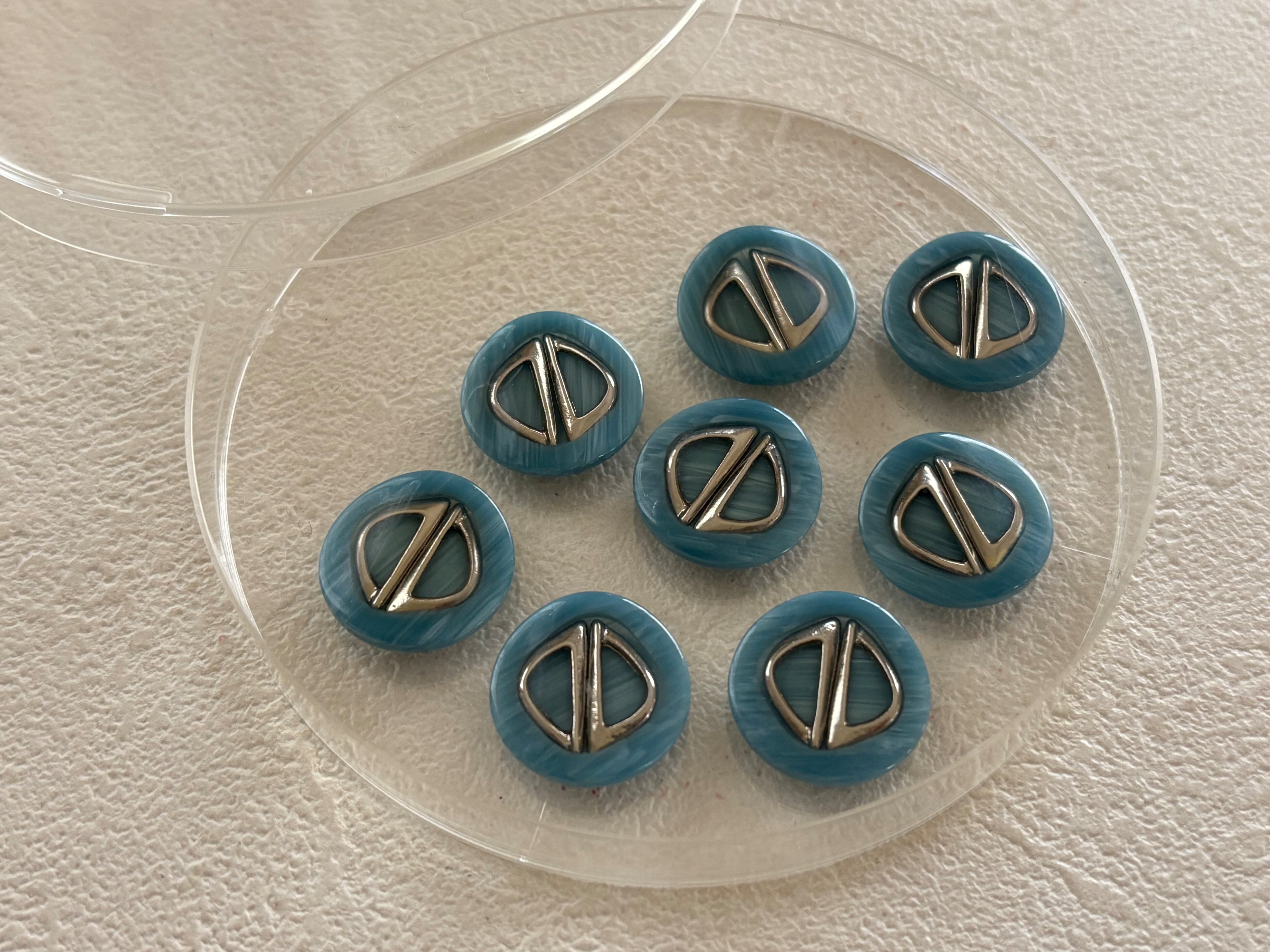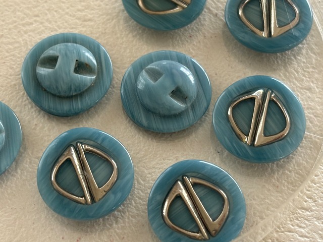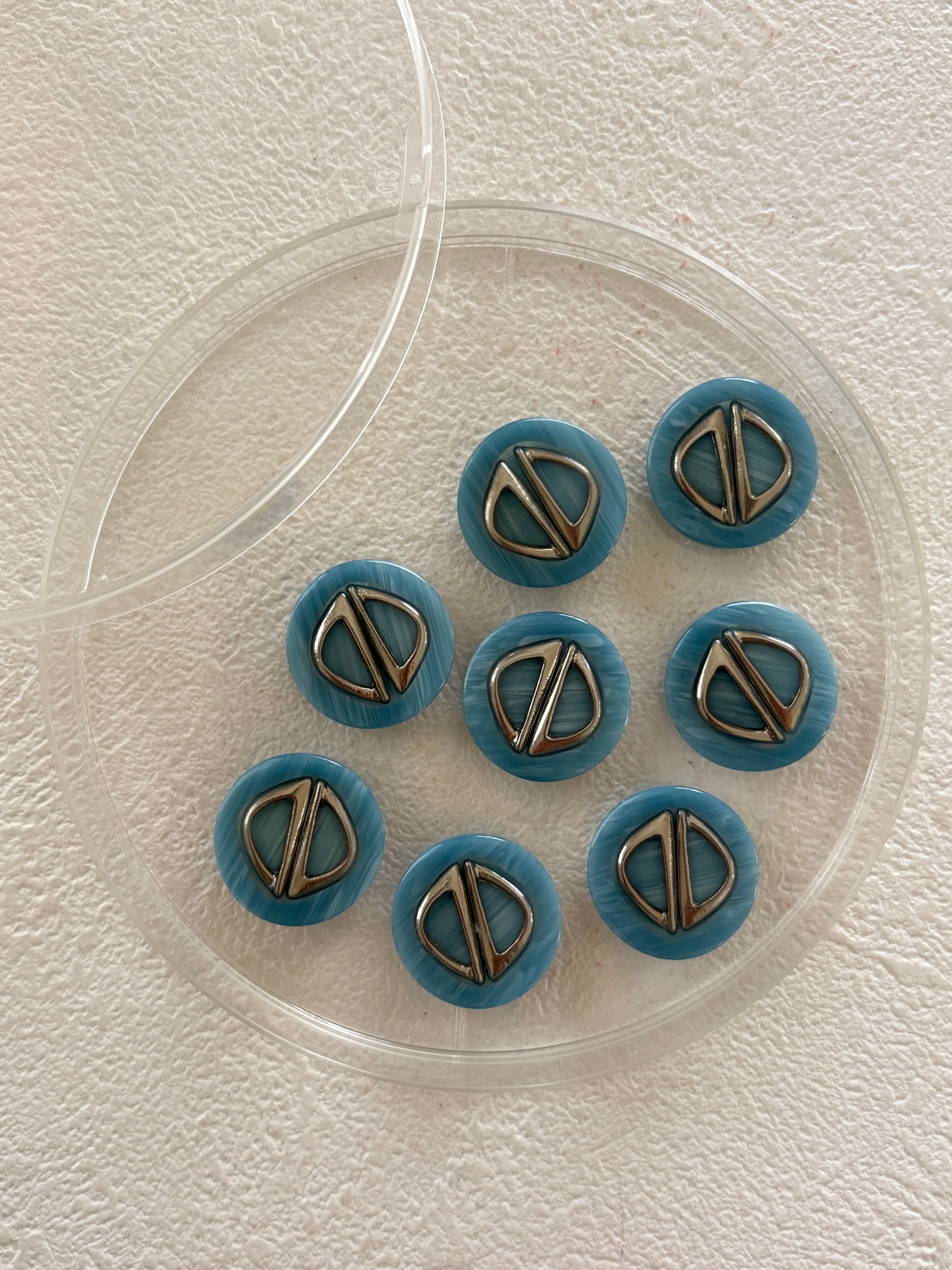 Japanese Vintage ボタン マーブル調 ライトブルー×シルバー 17mm プラスチックボタン 昭和レトロ アクセサリーパーツ 装飾材 カルトナージュ