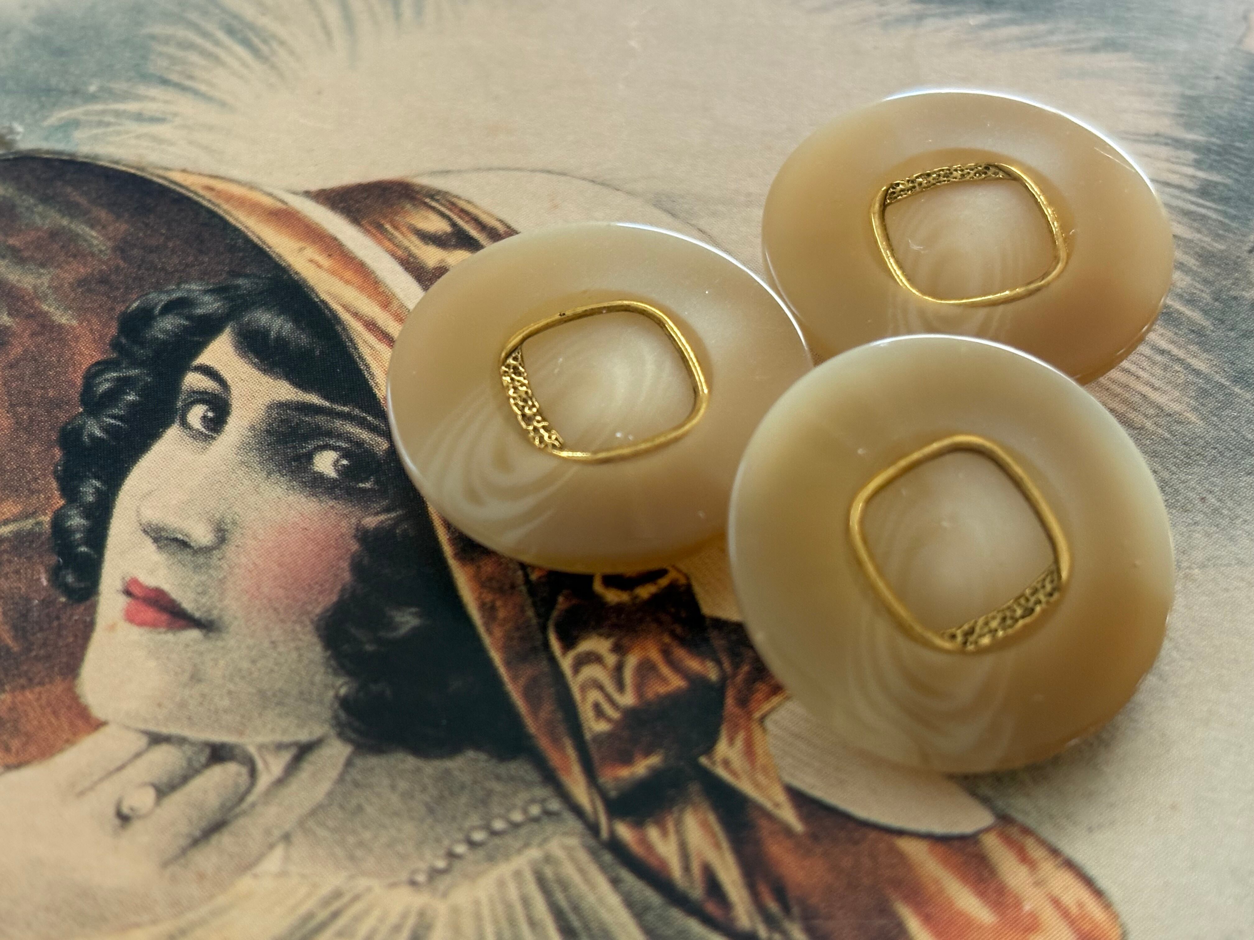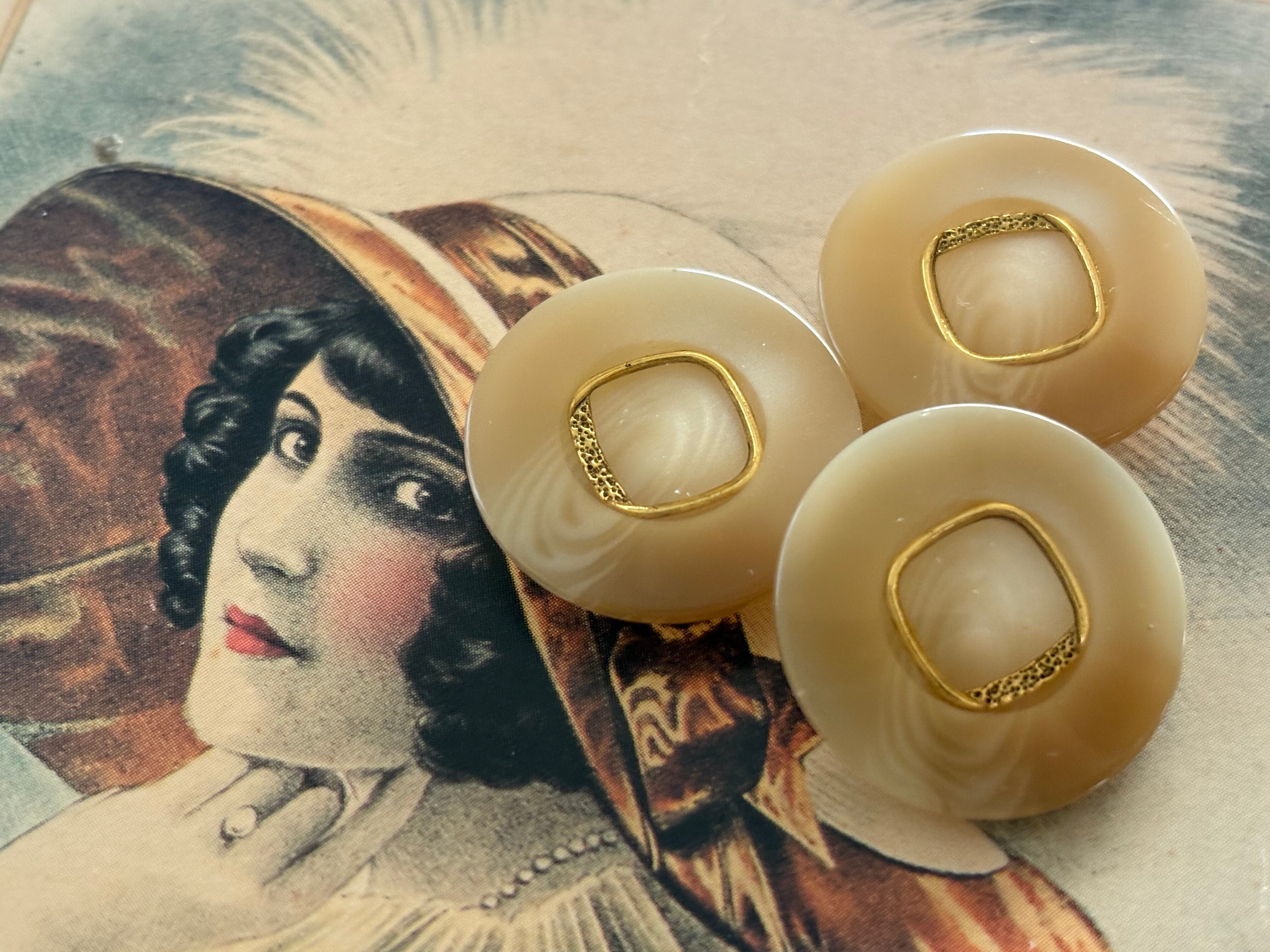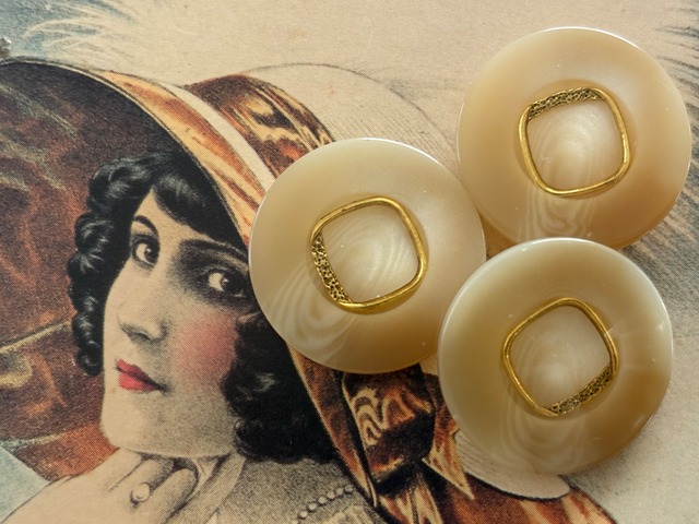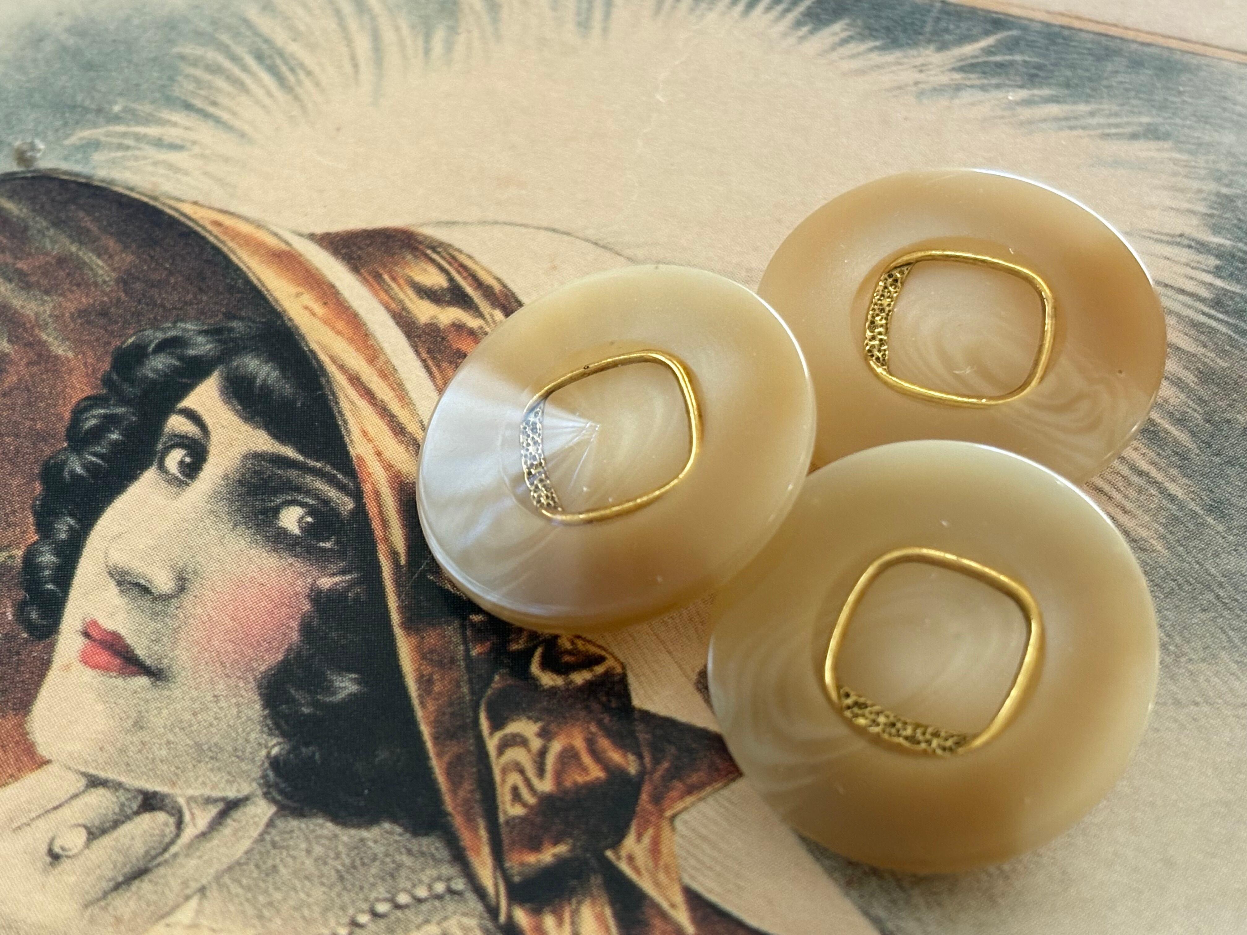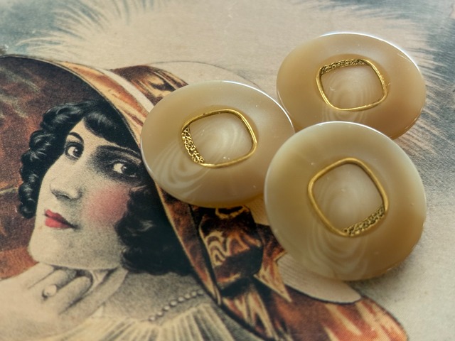 Japanese Vintage ボタン 23mm エレガントベージュ×ゴールド マーブル調 プラスチックボタン 昭和レトロ アクセサリーパーツ 装飾材 カルトナージュ
