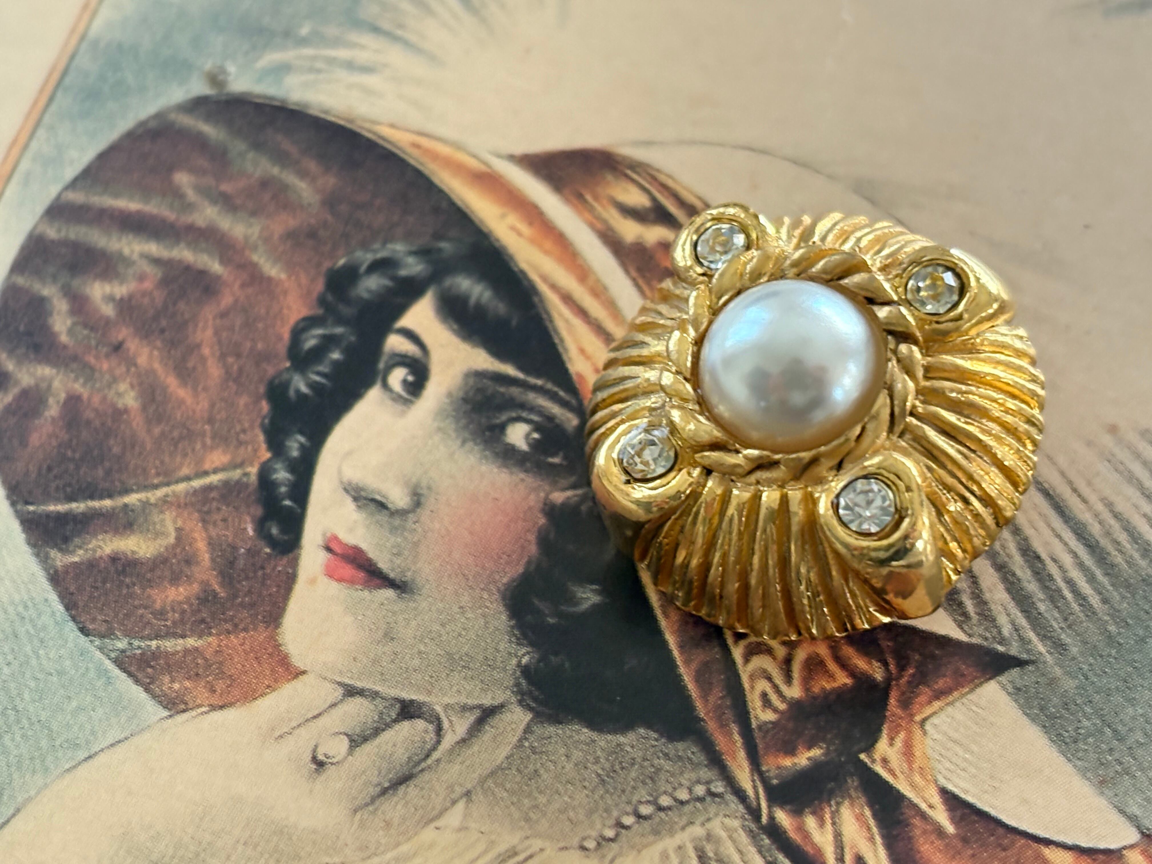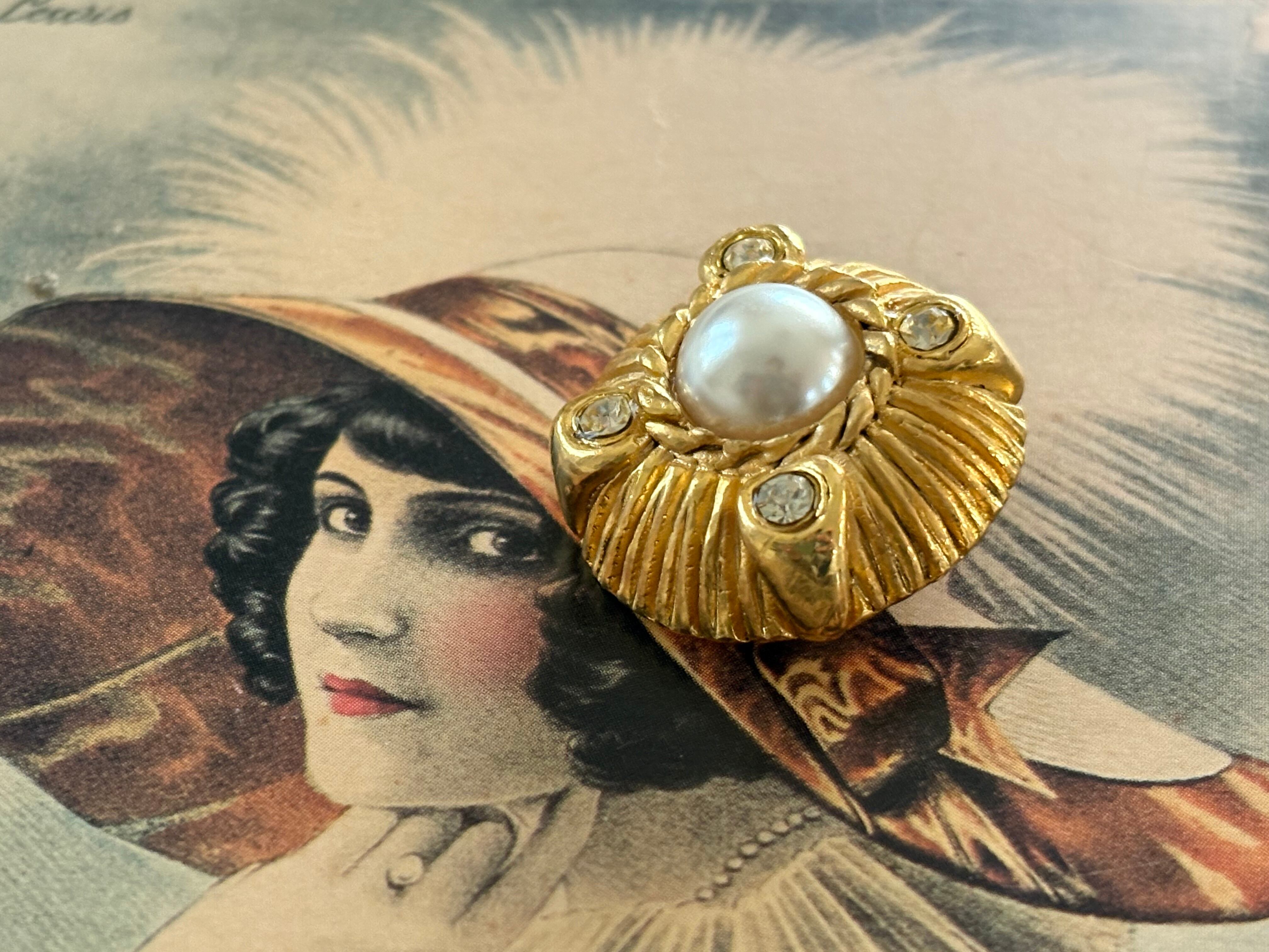 Japanese Vintage ヴィンテージボタン メタル ゴールド×パール調カボション×ストーン 25mm 高級ボタン アクセサリーパーツ