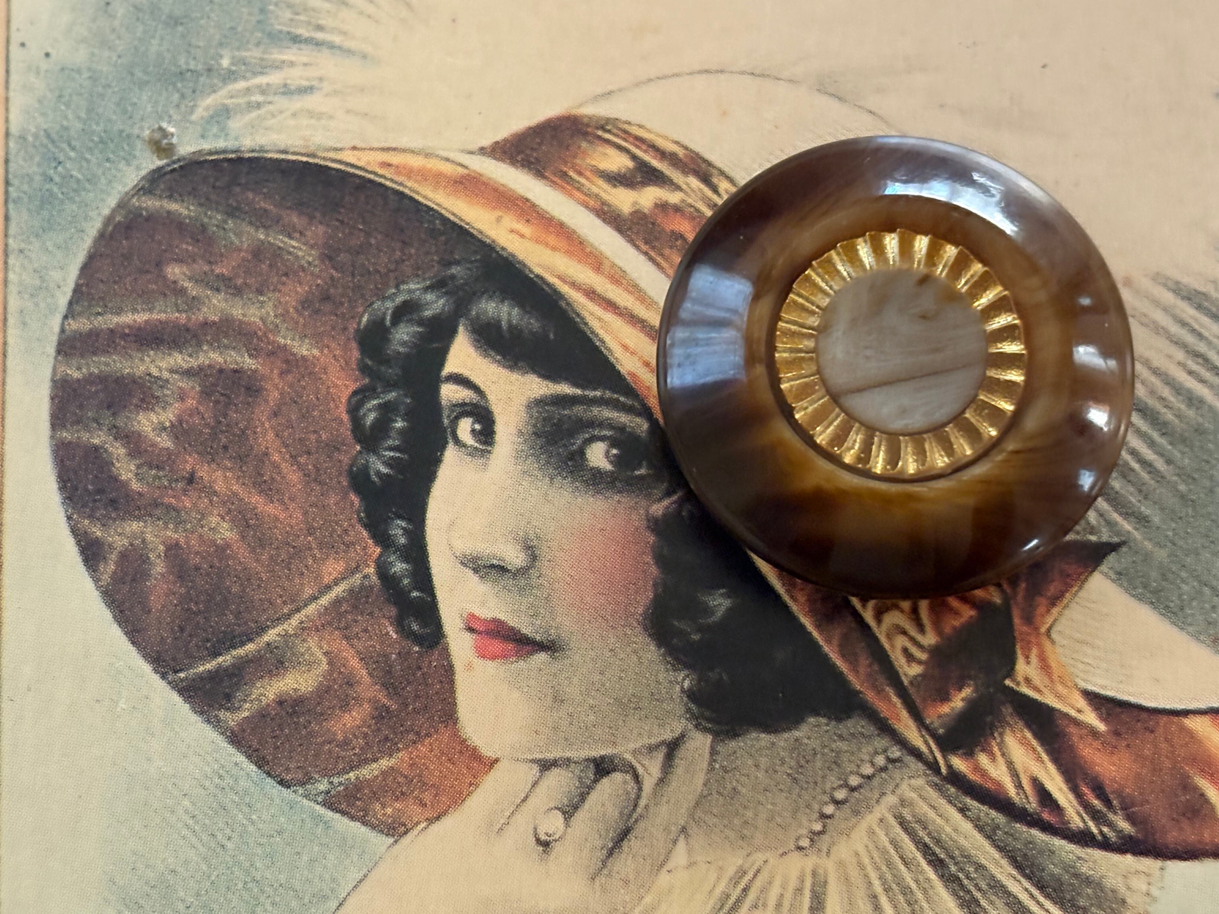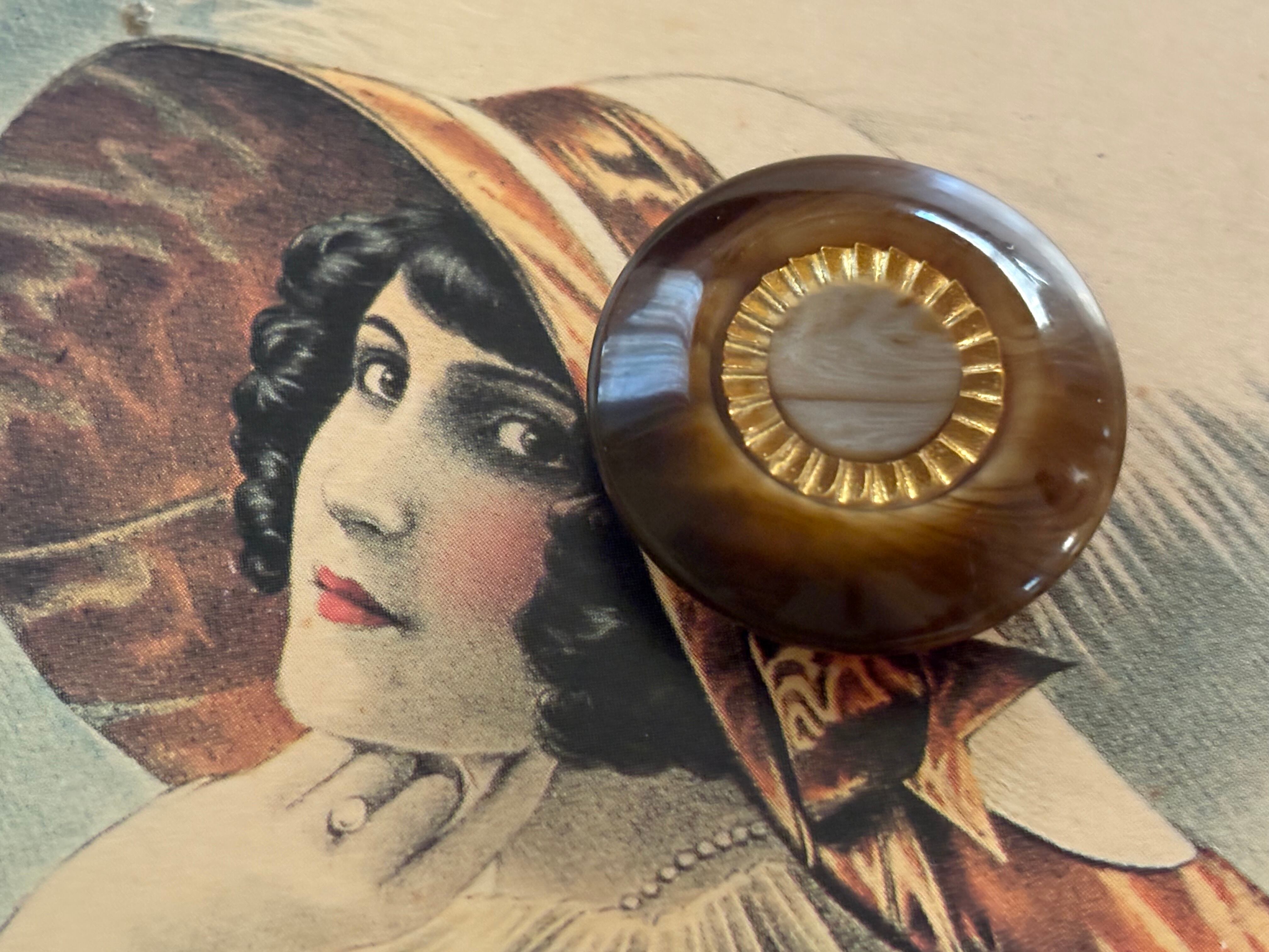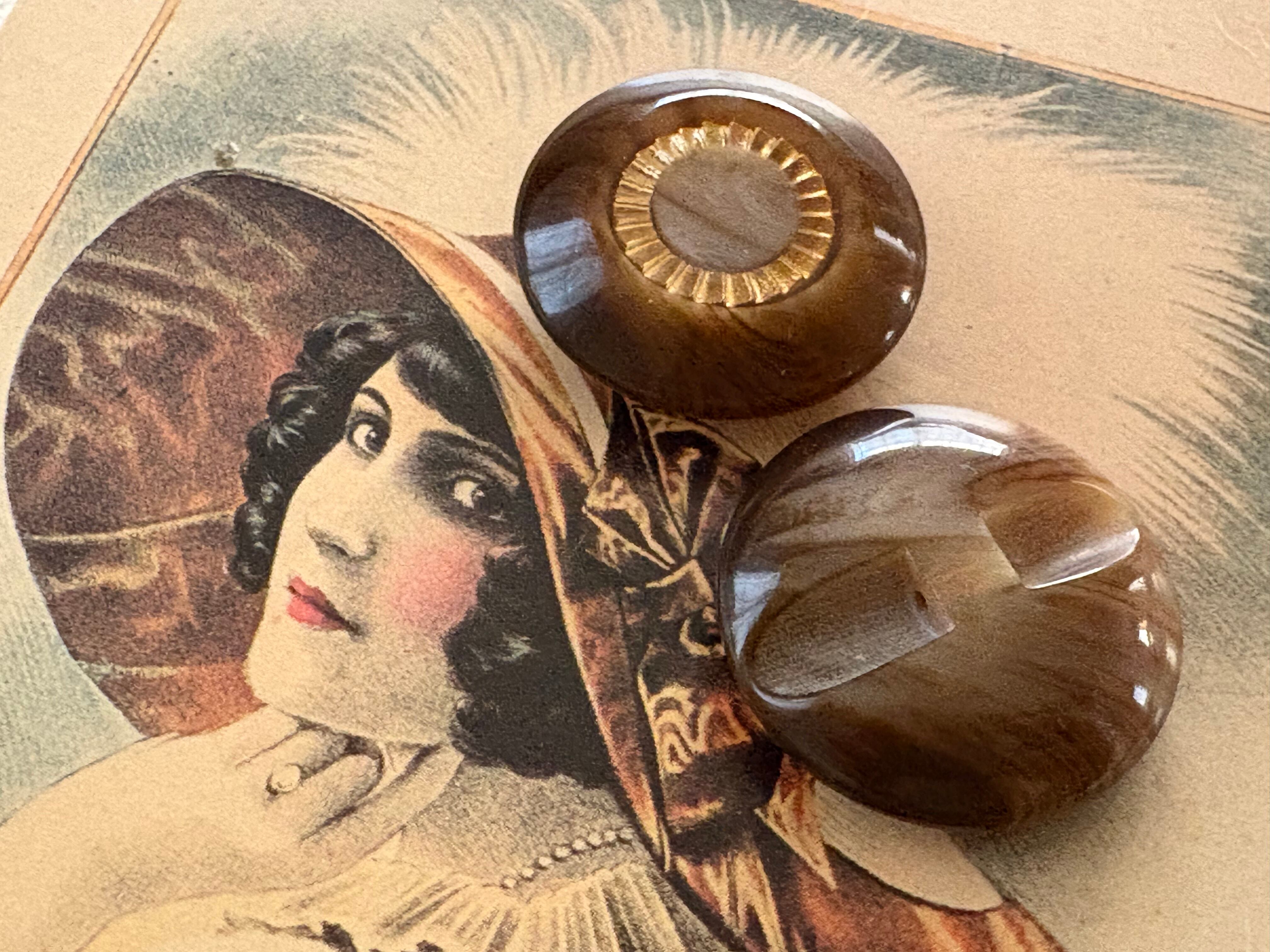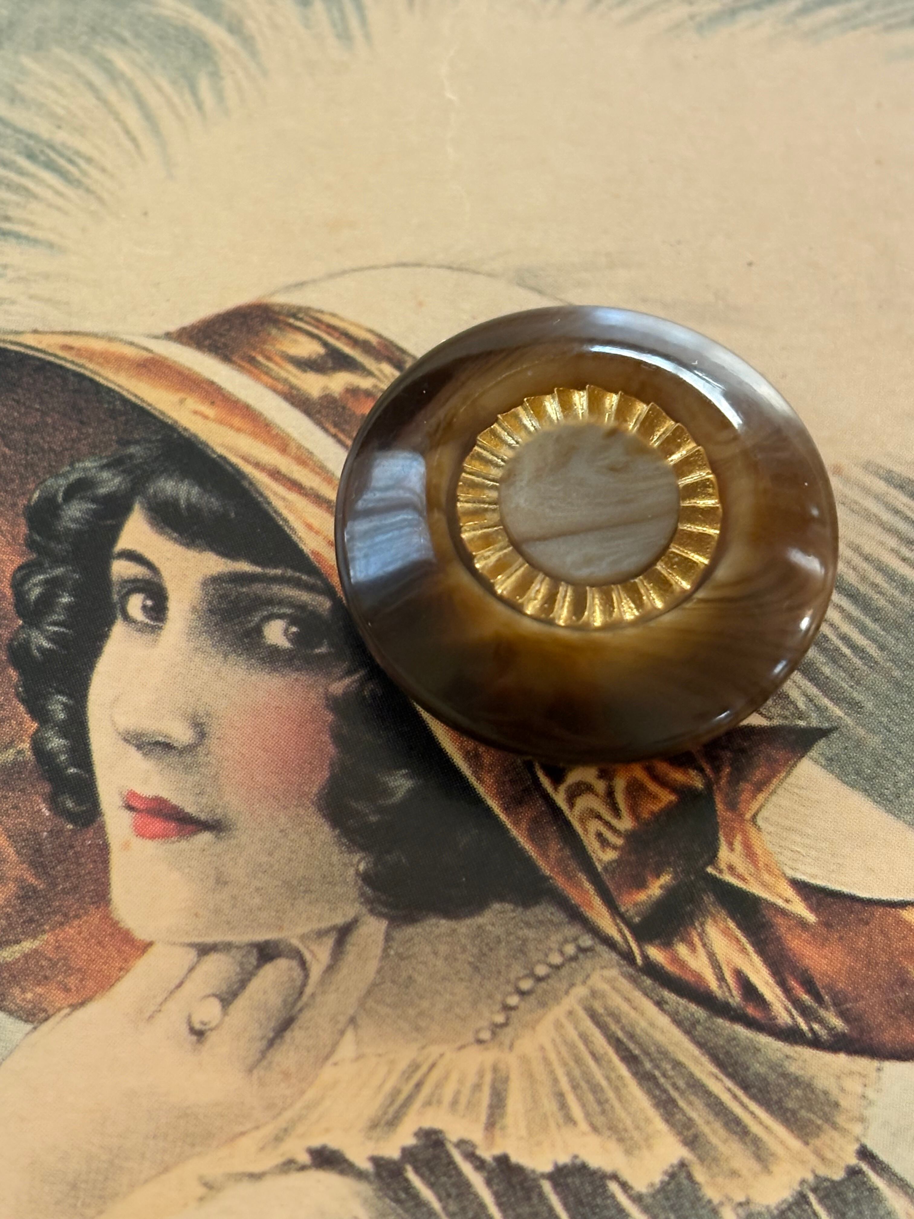 Japanese Vintageボタンマーブル調 ブラウン×ゴールド 27mm クラシカル アクセサリーパーツ デコレーション材 レトロボタン