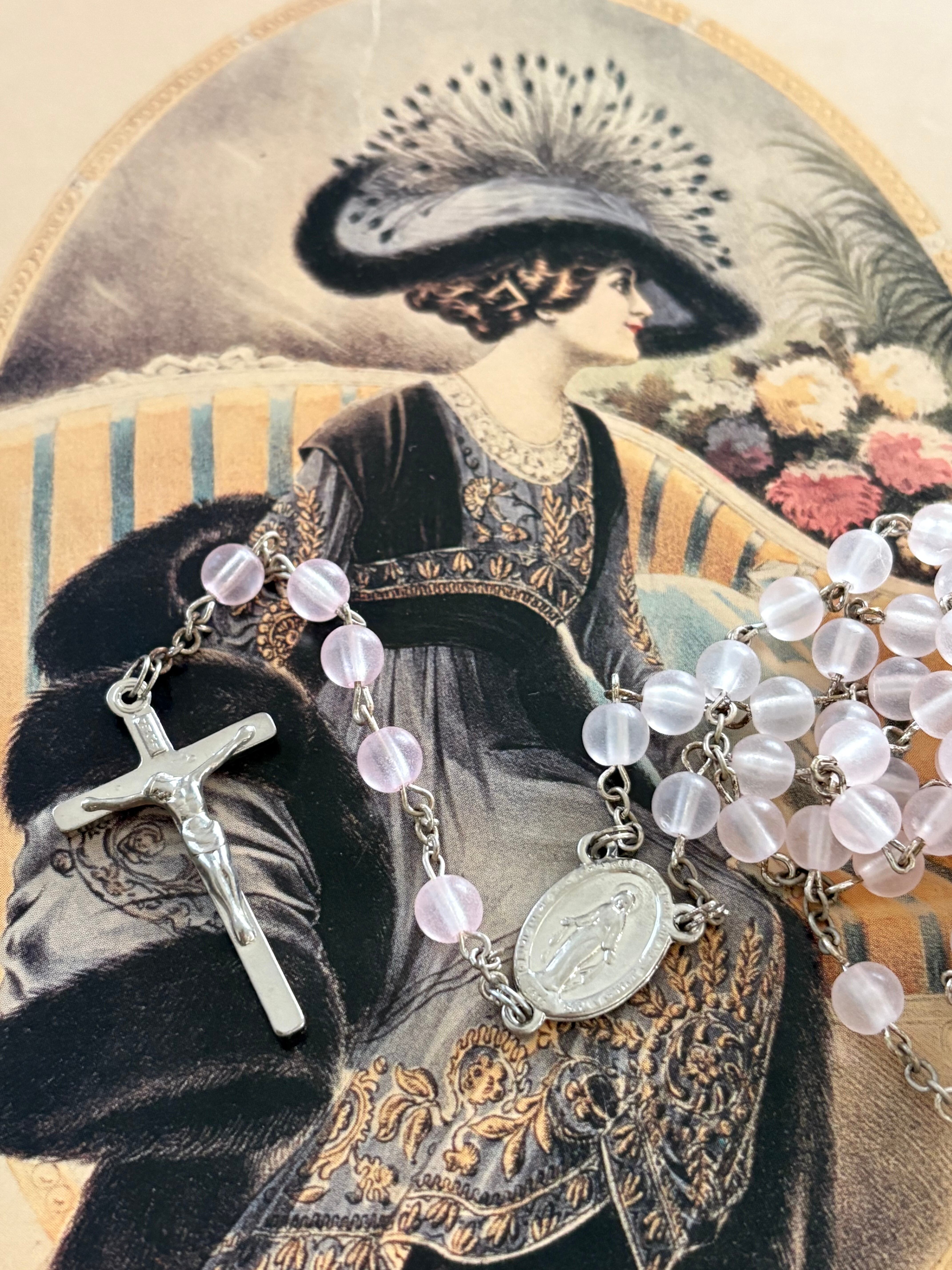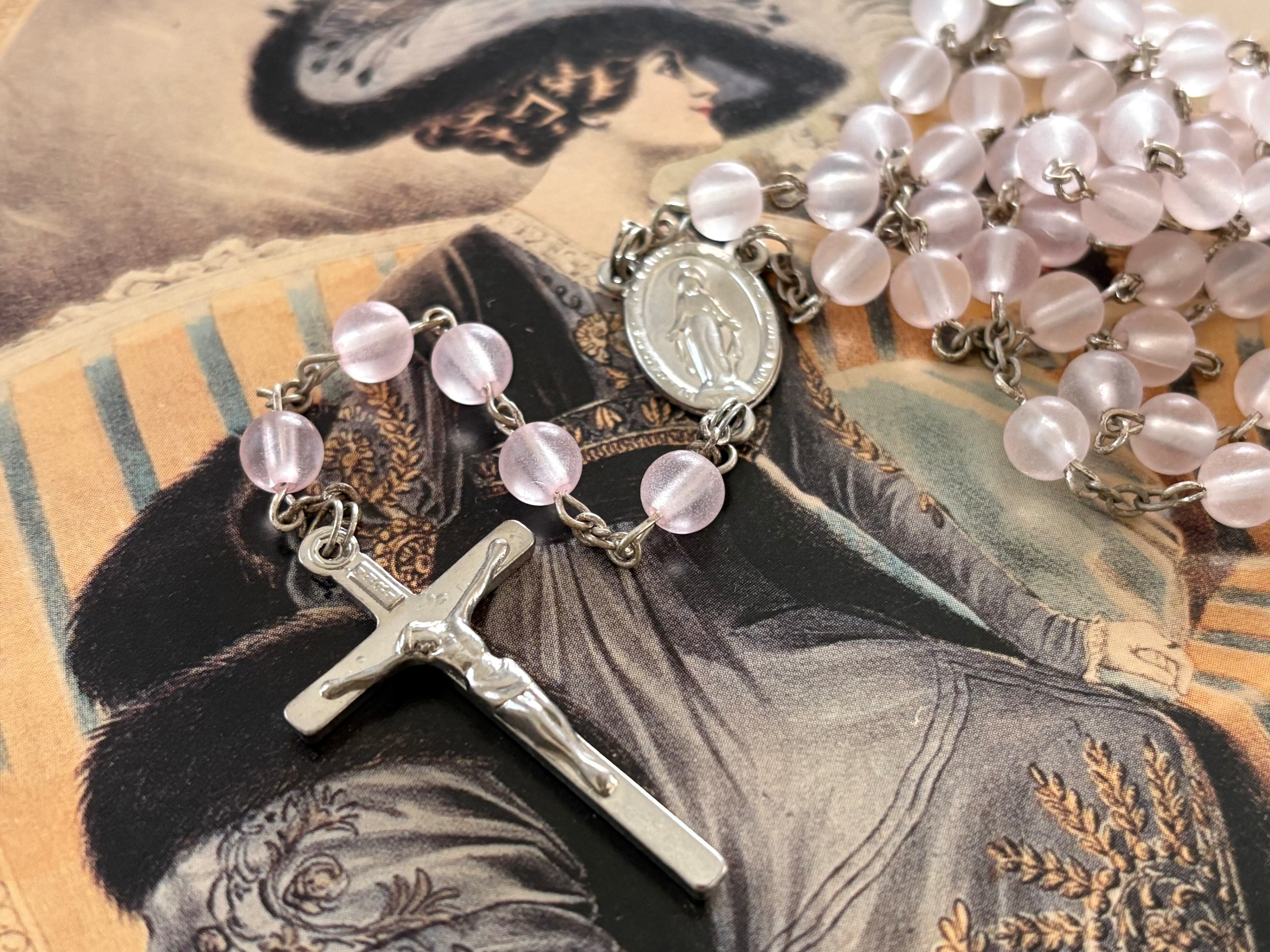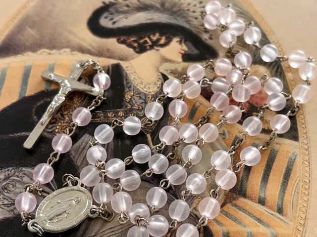 フランス 奇跡のメダイ教会 奇跡のメダイユ フロストピンク ロザリオ プラスチックビーズ 不思議のメダイ 聖品 クリスマス Noel