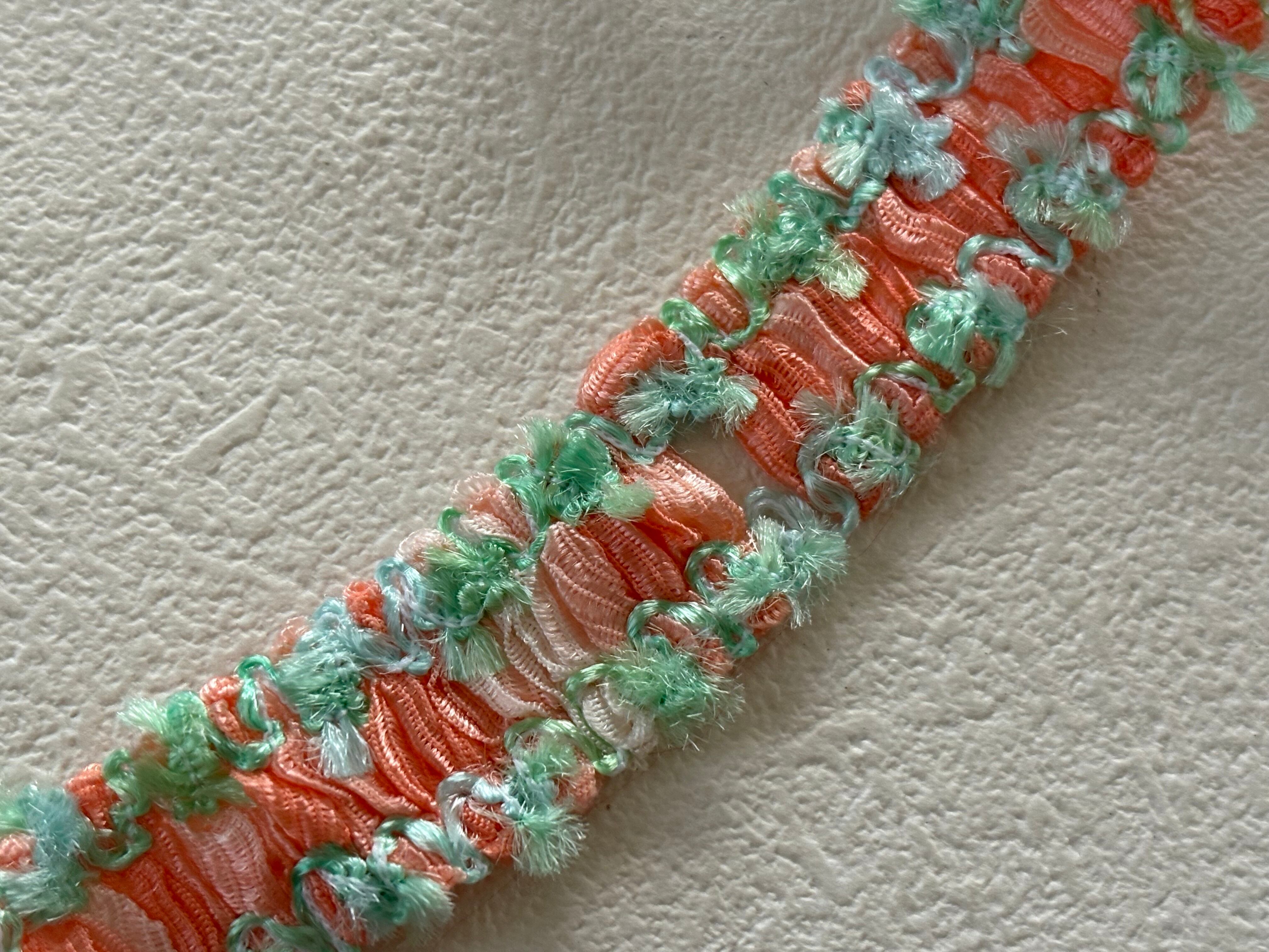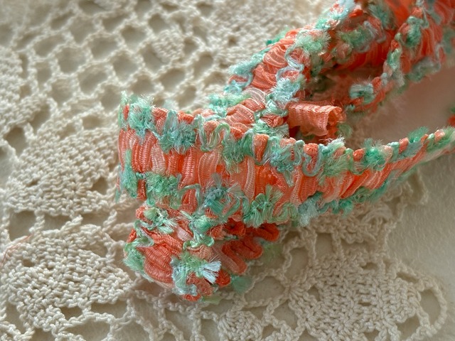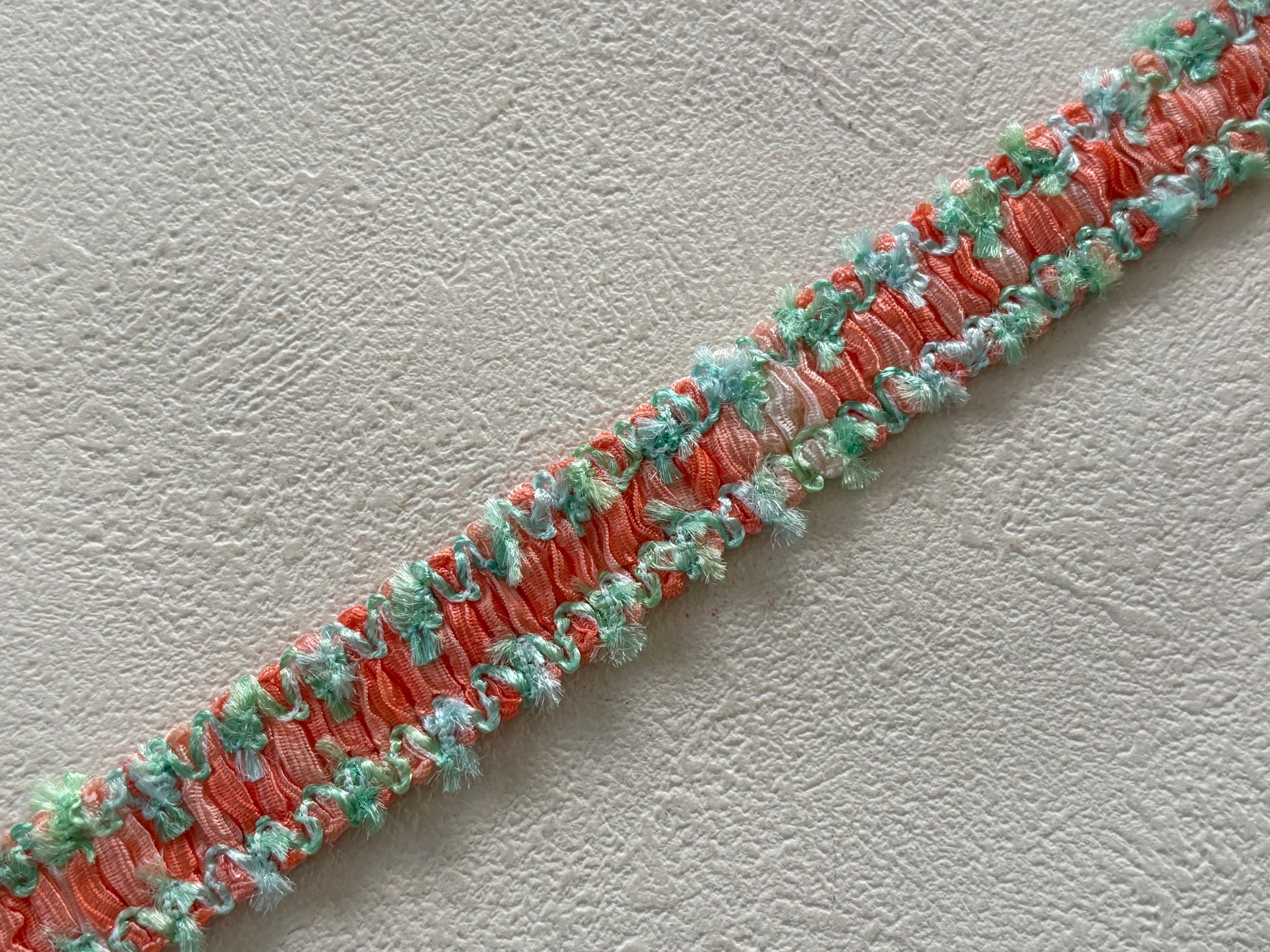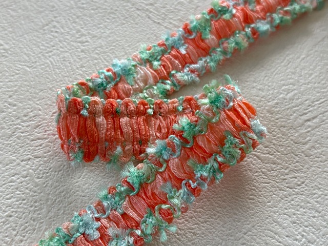 フランスVintage カットブレード 70cm オレンジピンク×グリーン ポップ 17mm カルトナージュ スツール デコレーション材 ヴィンテージブレード