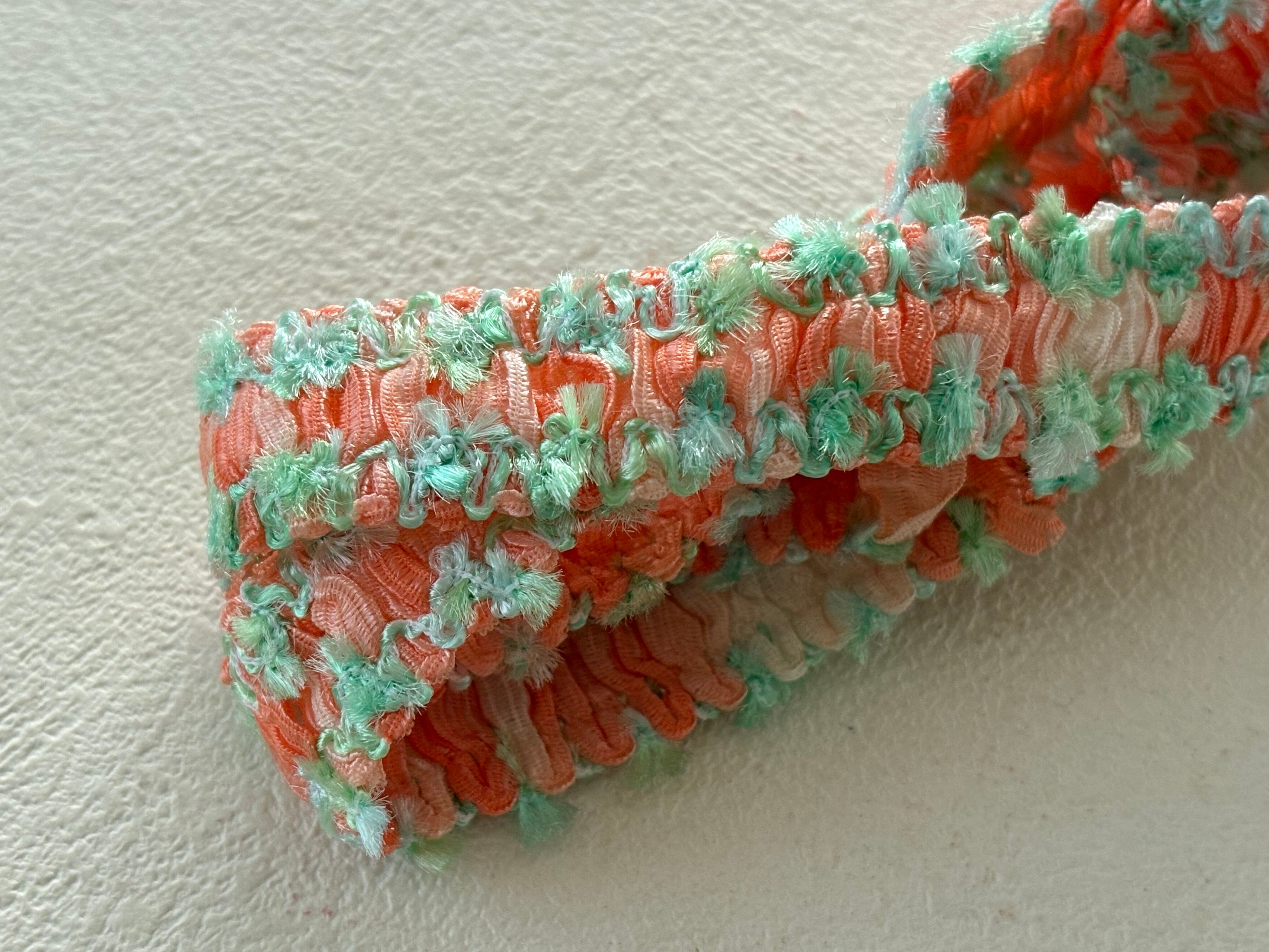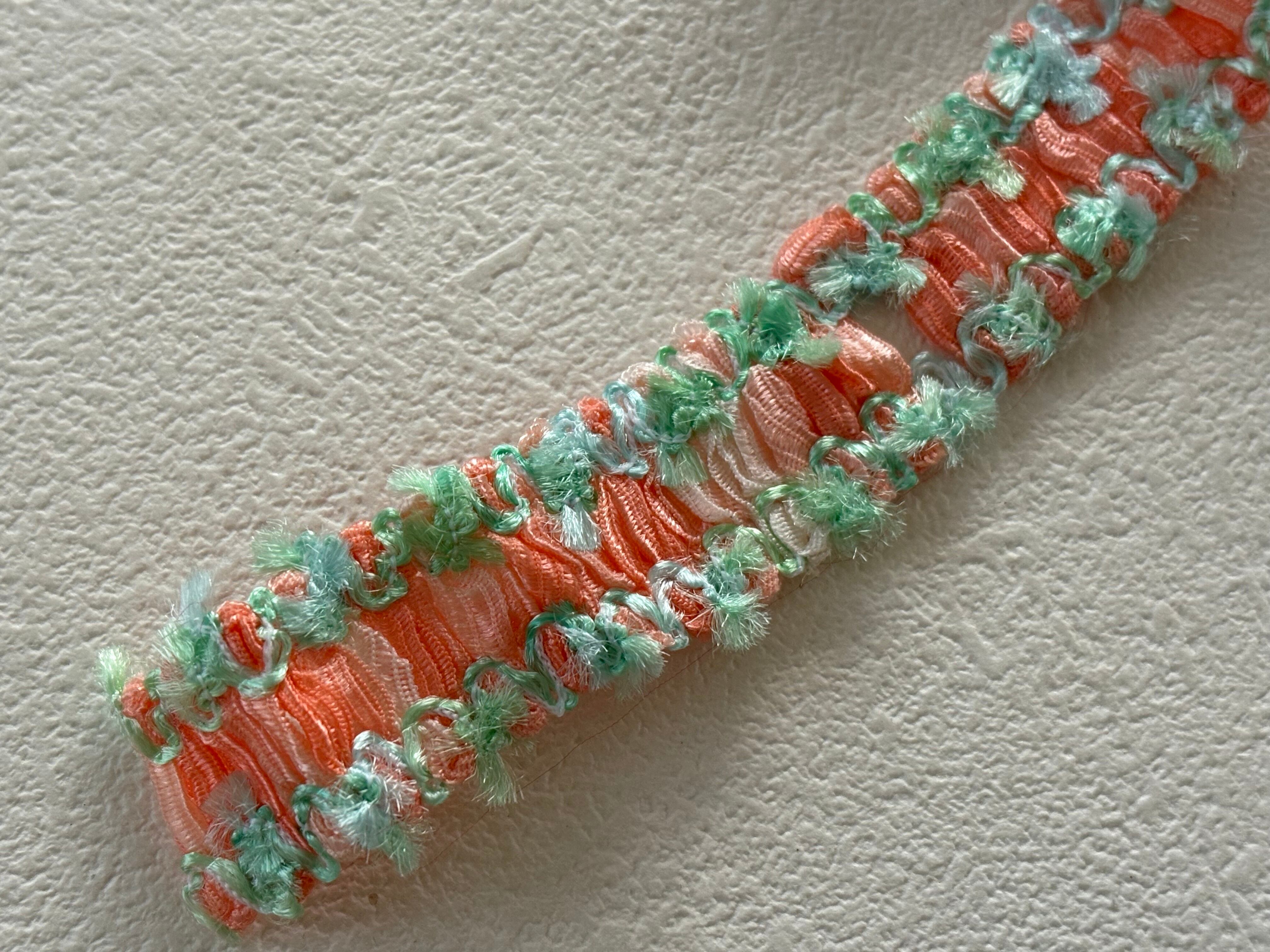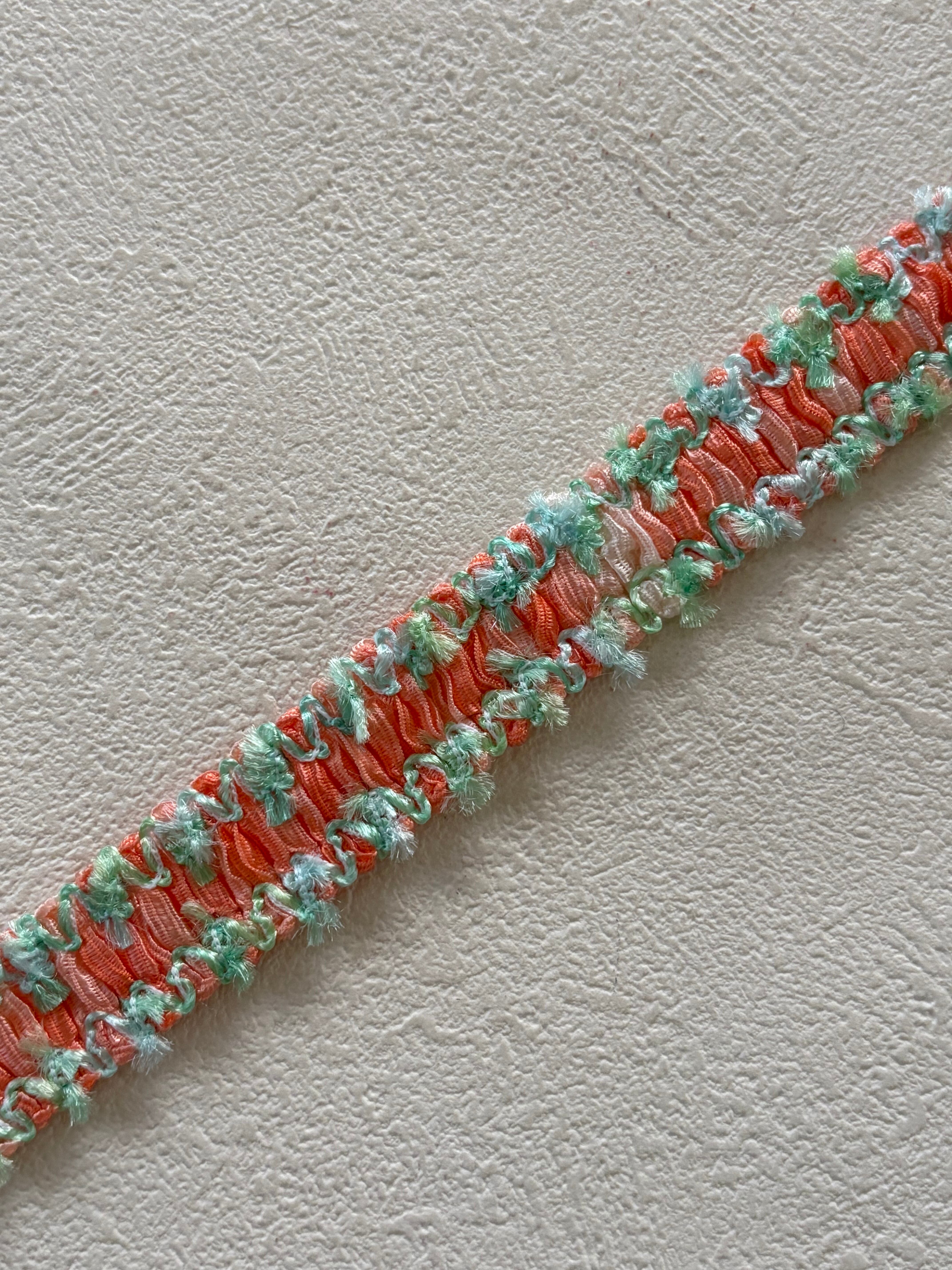 フランスVintage カットブレード 70cm オレンジピンク×グリーン ポップ 17mm カルトナージュ スツール デコレーション材 ヴィンテージブレード