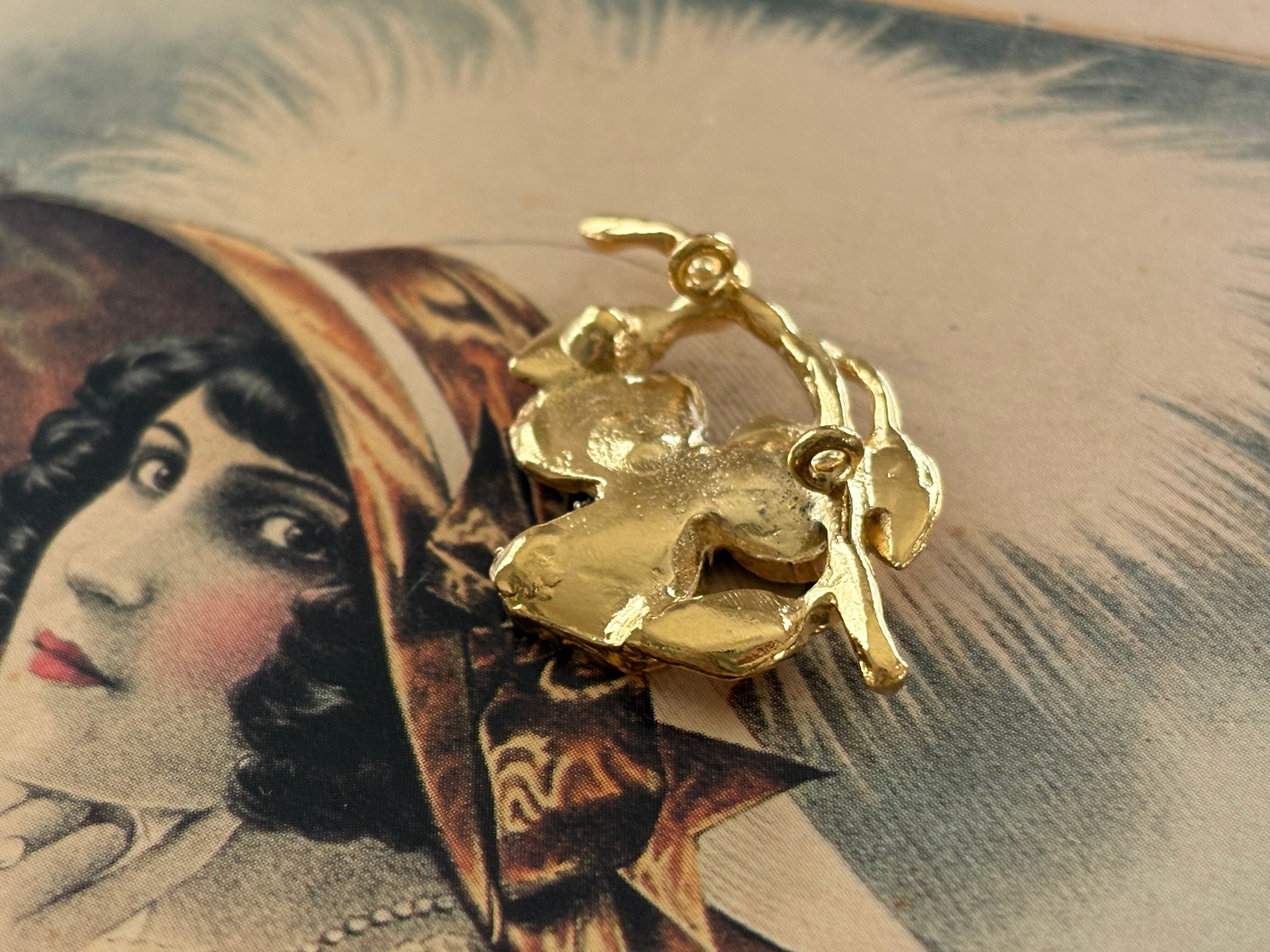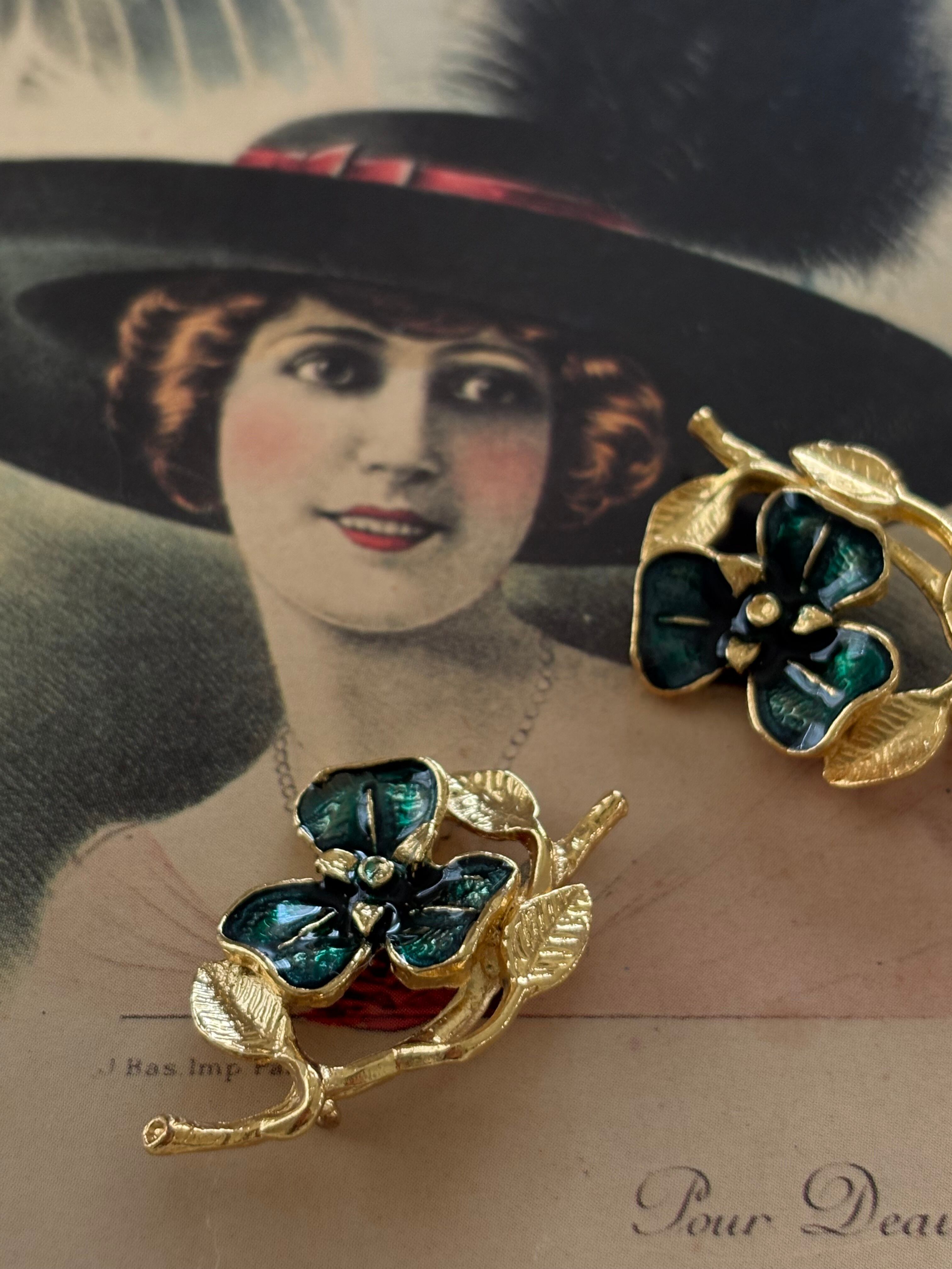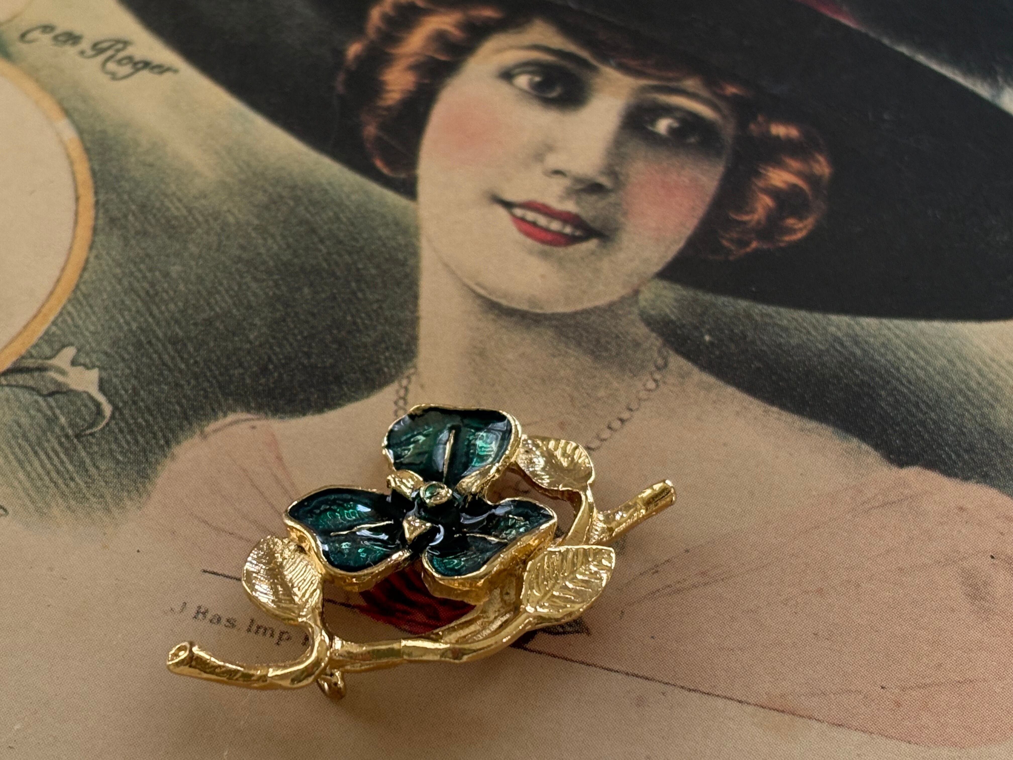 ゴールドの枝とリーフにグリーンのエナメル加工が施されたフラワー。