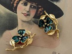 ドイツ ヴィンテージパーツ フラワー グリーン×ゴールド 22mm×36mm アクセサリーパーツ デコレーション材