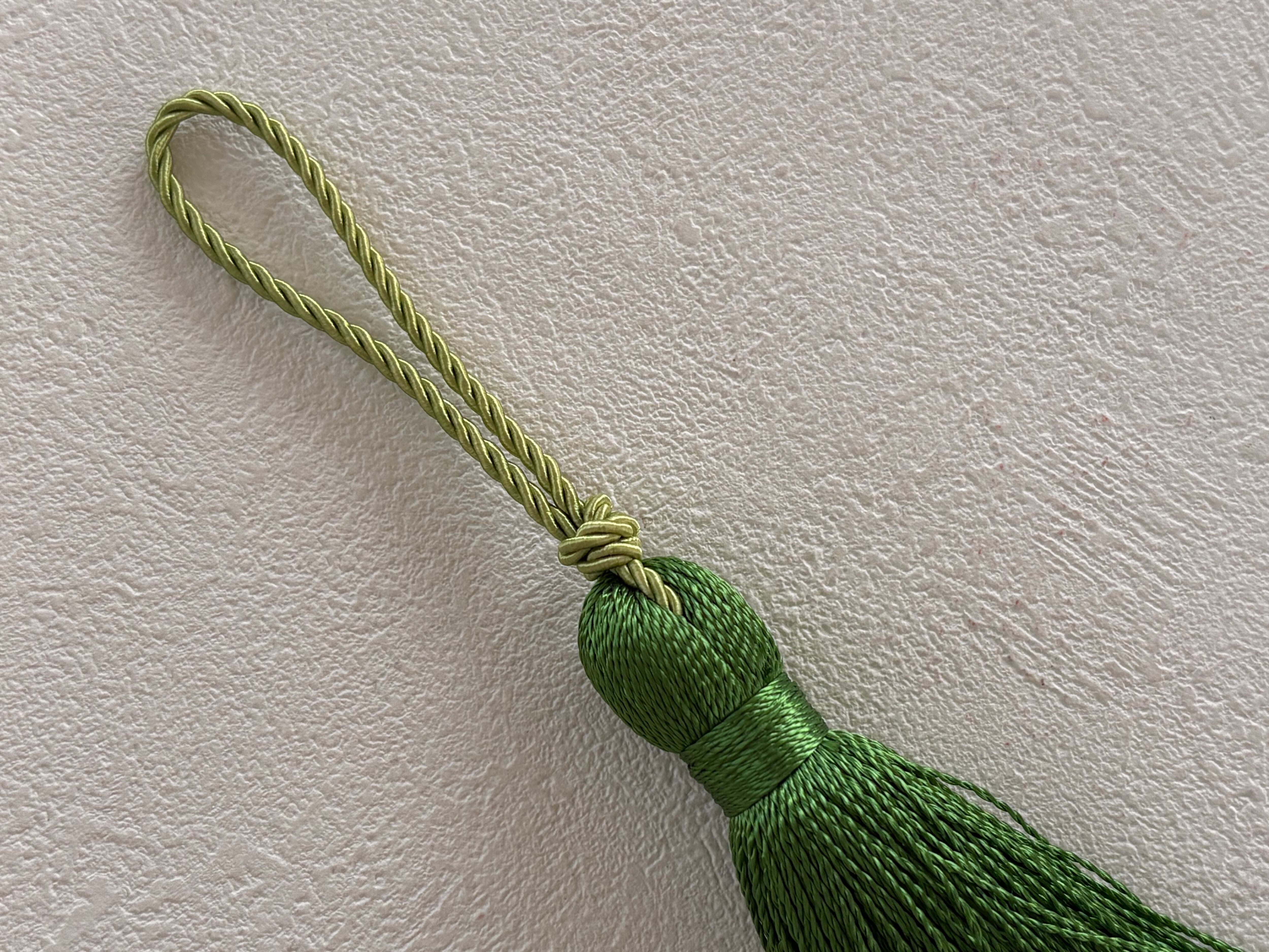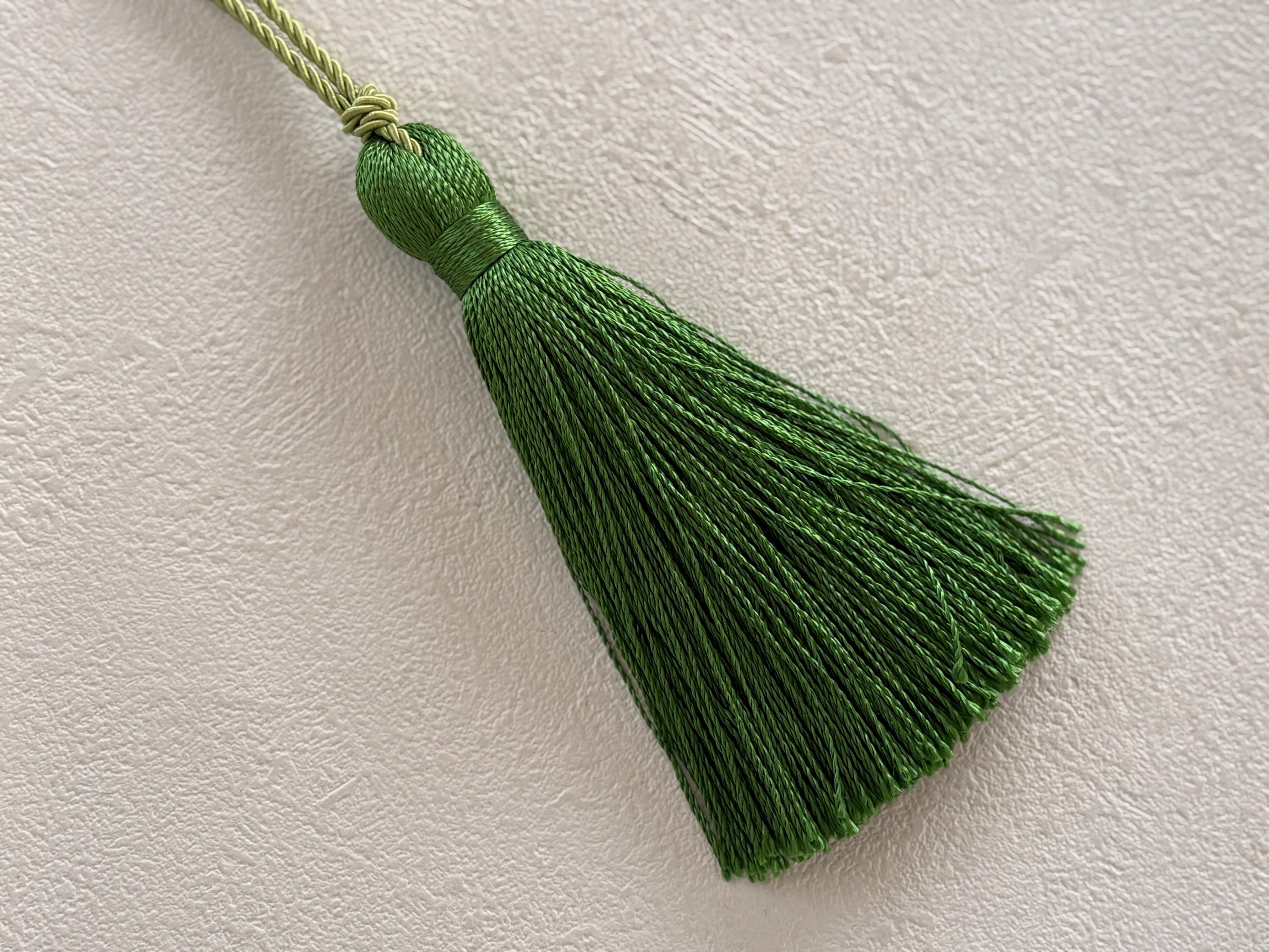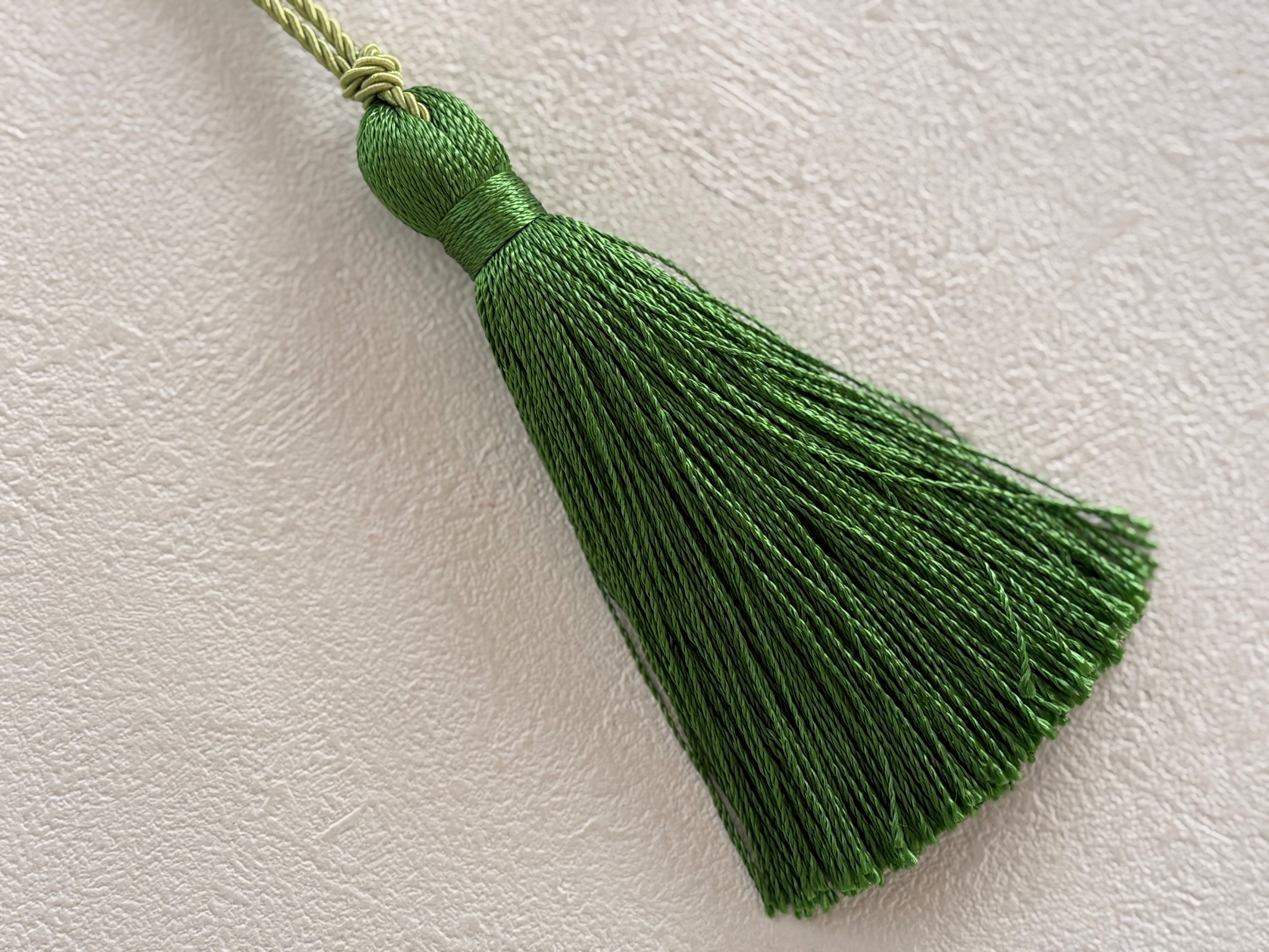 鮮やかなイエローグリーンのシンプルタッセルです。