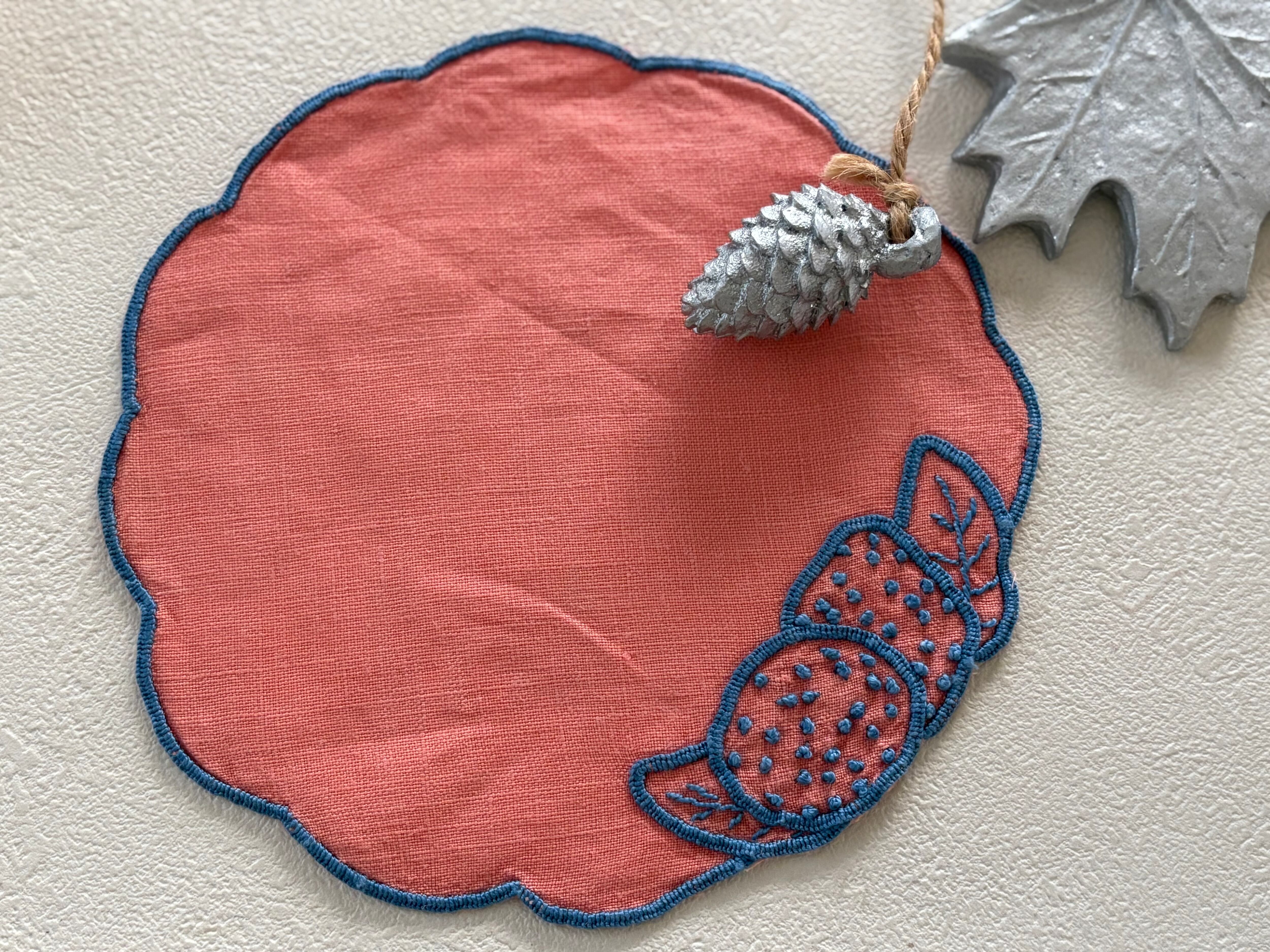 手仕事のドイリーになります。フルーツとリーフのデザイン。
