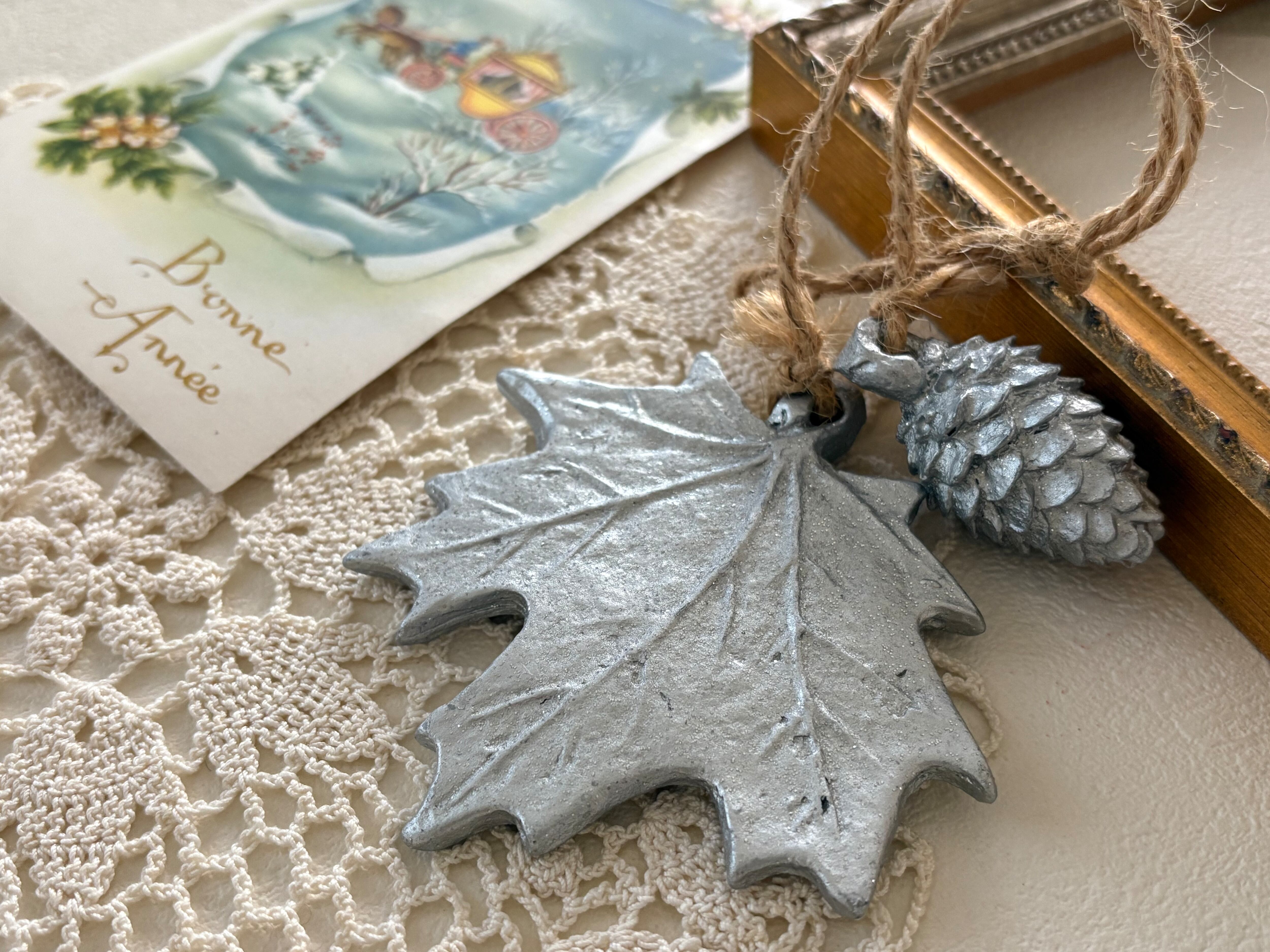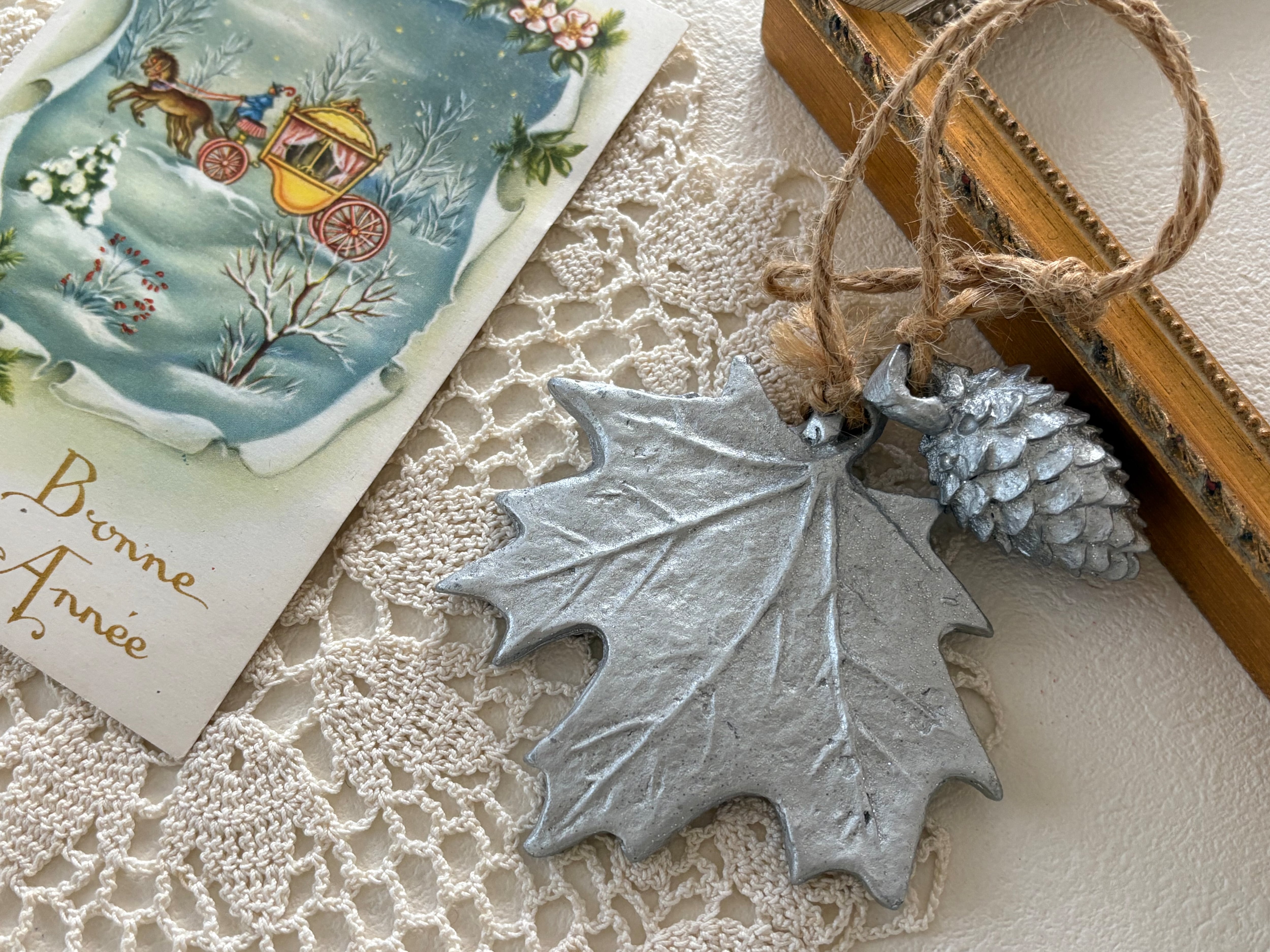 フランス 輸入雑貨 リーフと松ぼっくりのオーナメント シルバー インテリア小物 撮影小物 Noel クリスマスオーナメント
