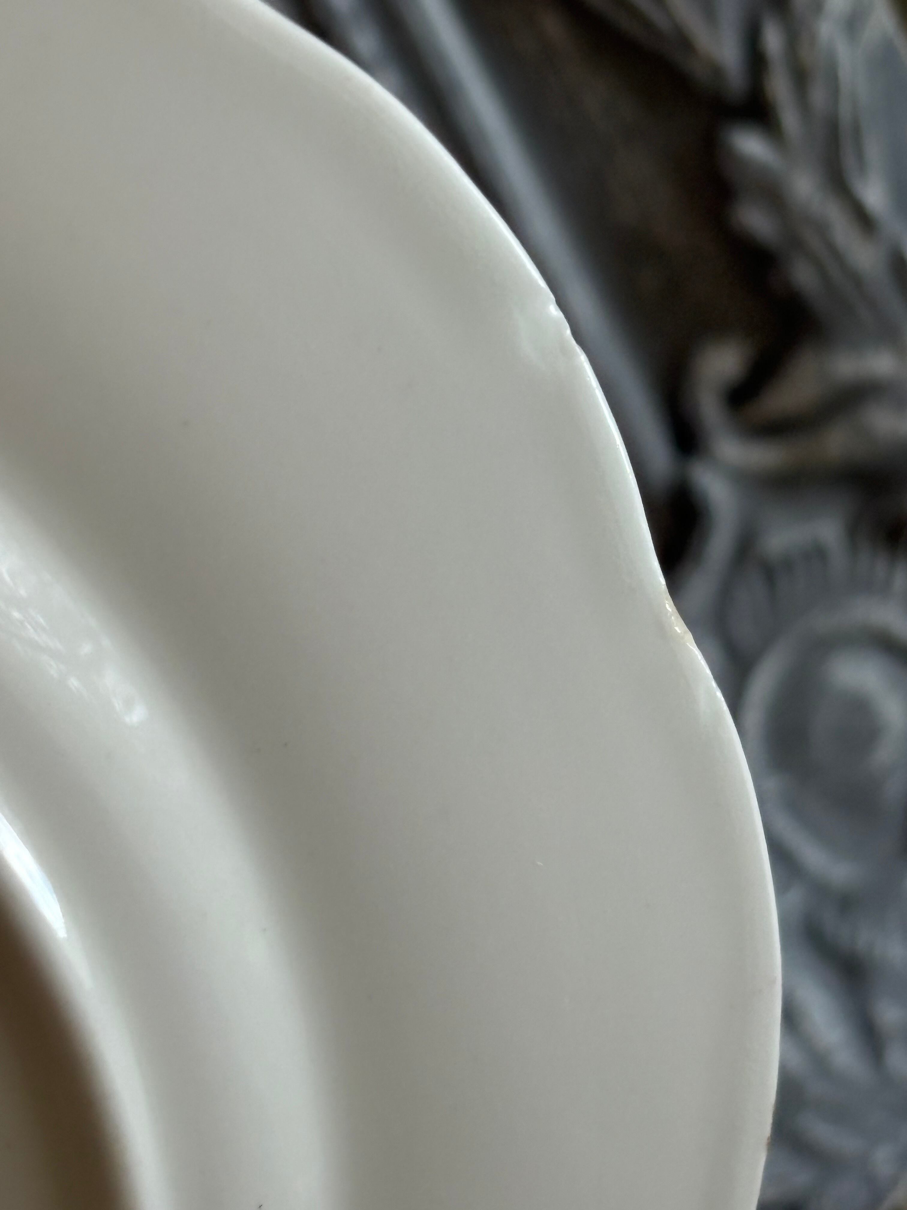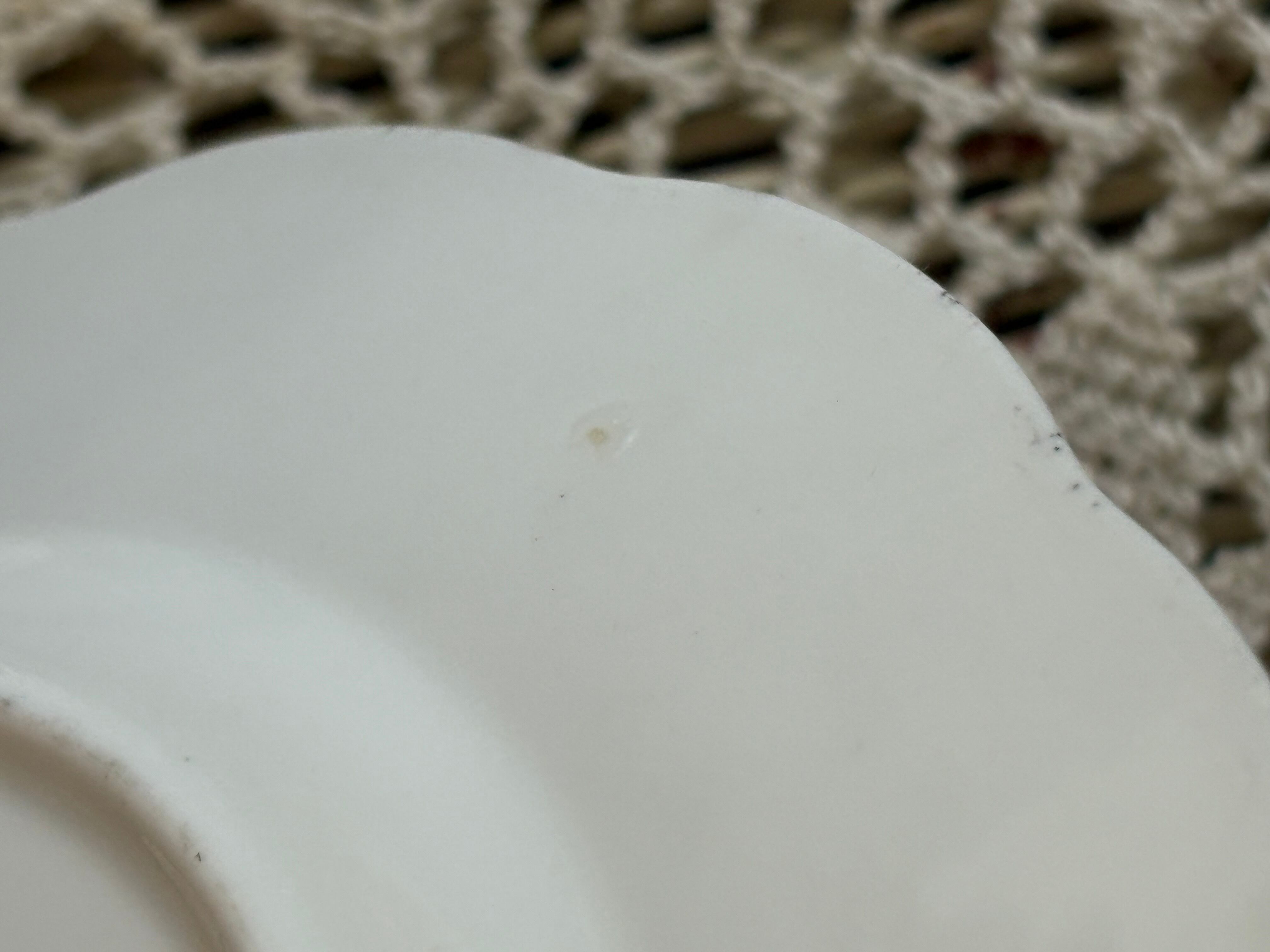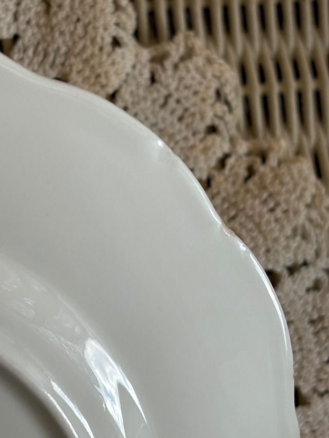 縁裏に画像の様な表面の削れ、小さな欠けが見られます。裏面にひびいているものはございません。また、鋭利な傷ではございません。
