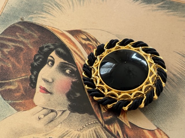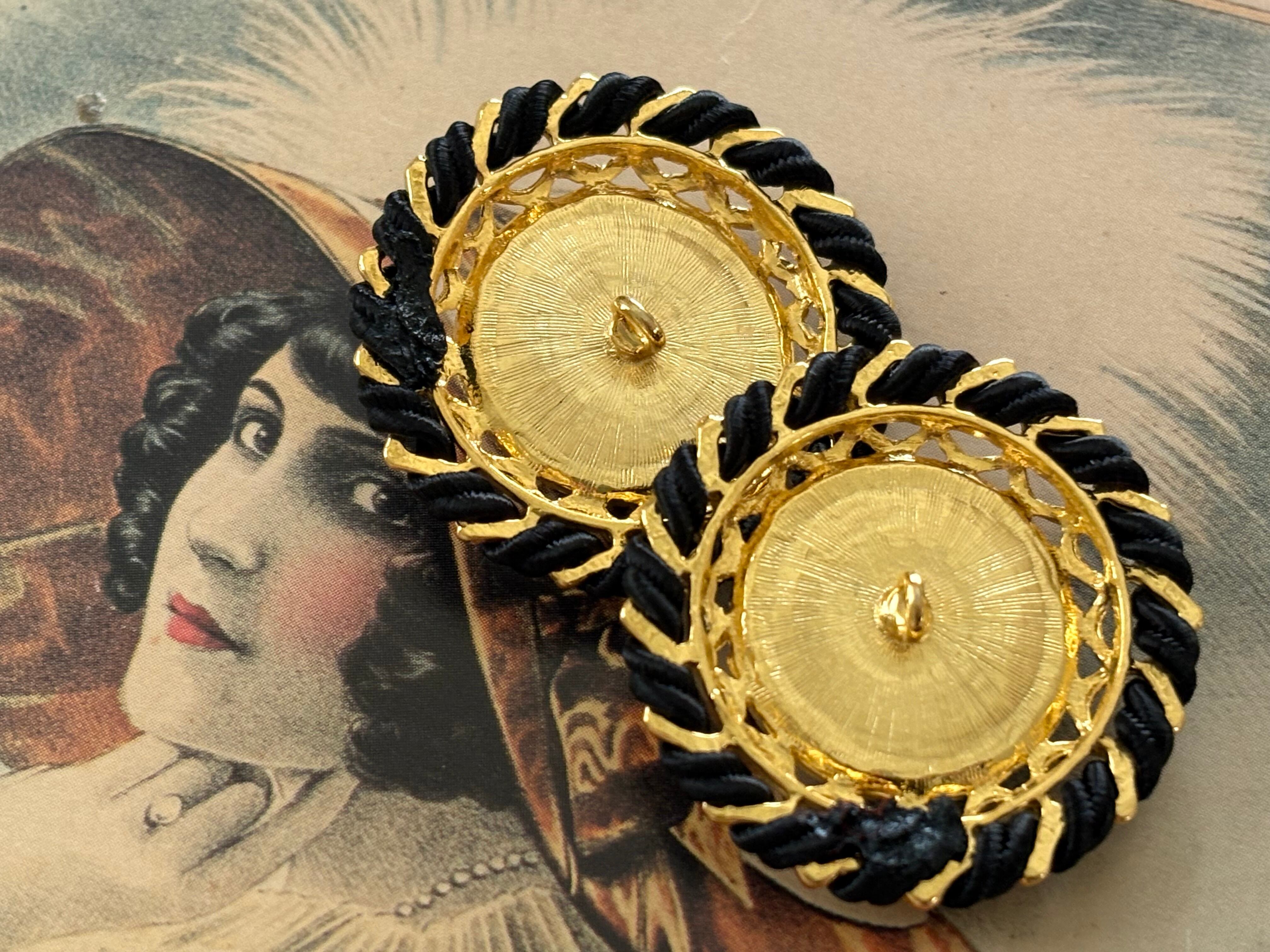 Japanese Vintageボタン レトロボタン 30mm ブラック×ゴールド メタルボタン コード カボション アクセサリーパーツ デコレーション材